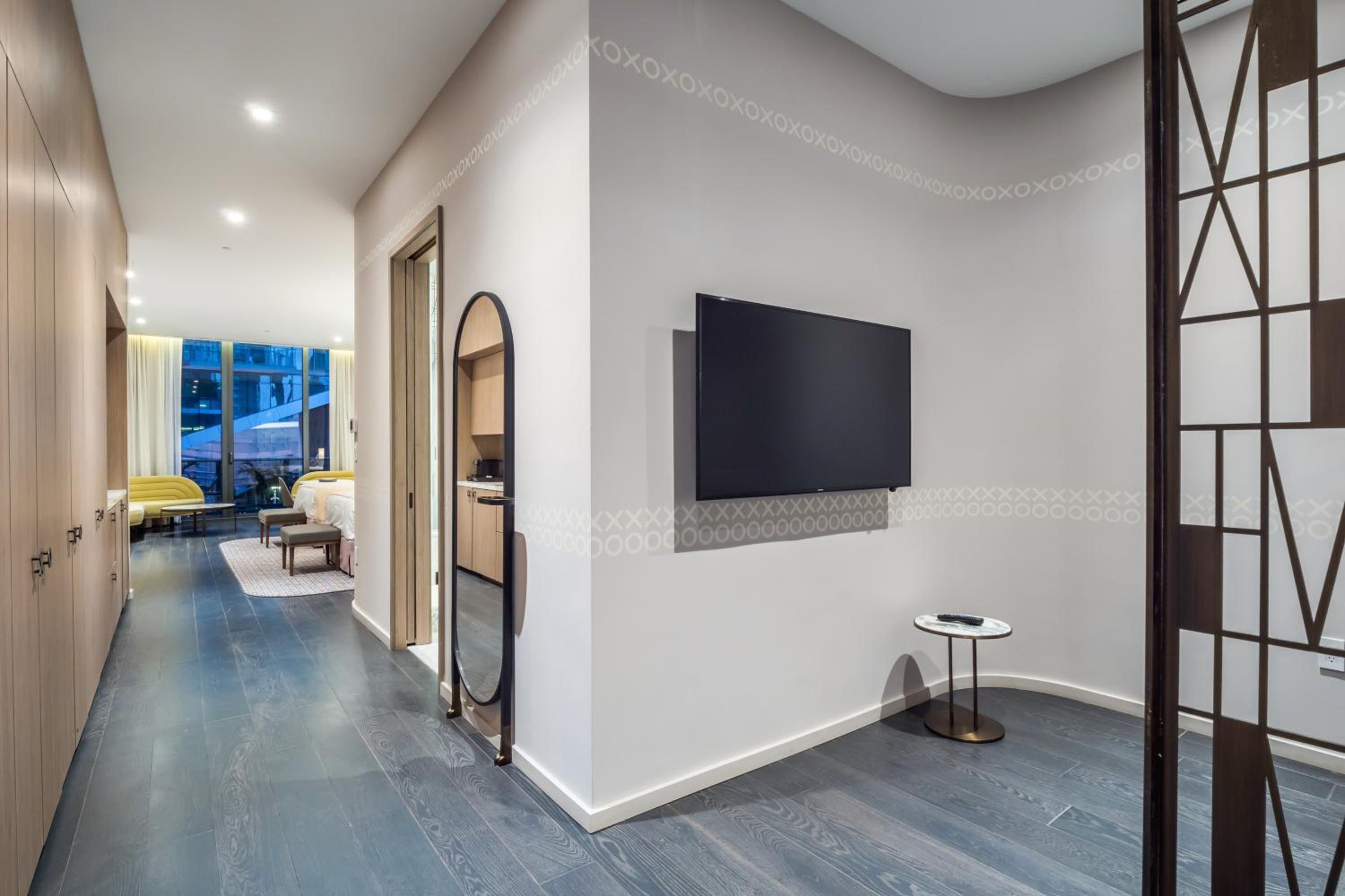 David, the property manager was fantastic. He helped coordinate an early check in since I have 2 young children. Room was fantastic. Spacious, clean, and nicely designed. High ceilings, recess lighting. Nice bathroom. Pool area was luxurious with a cool DJ. Would definitely come back