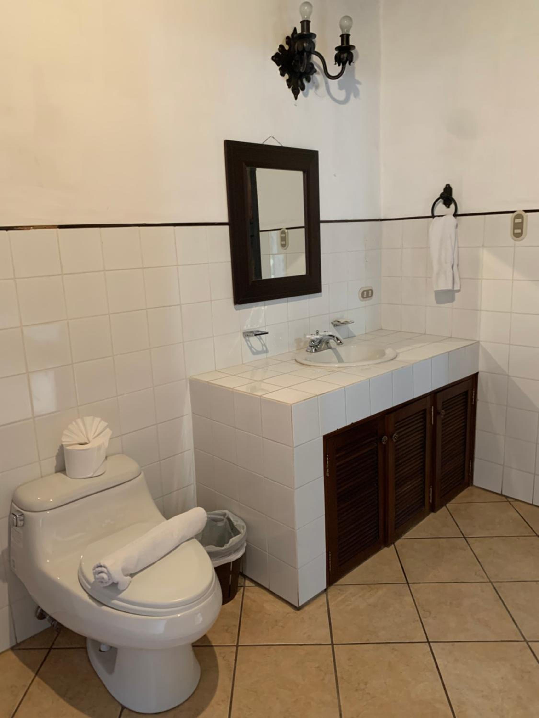 Salle de bain un brin désuète mais comme souvent au Guatemala