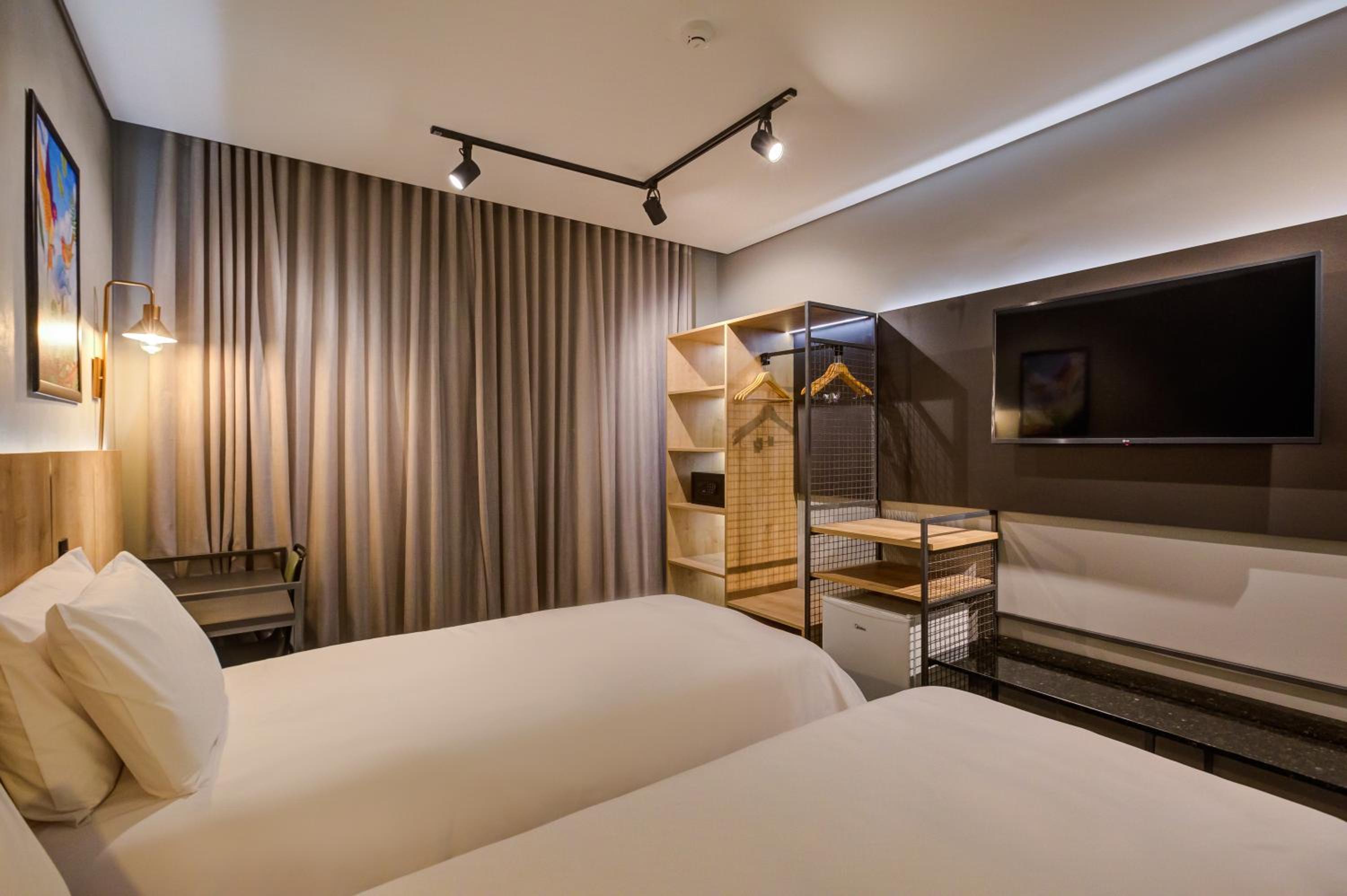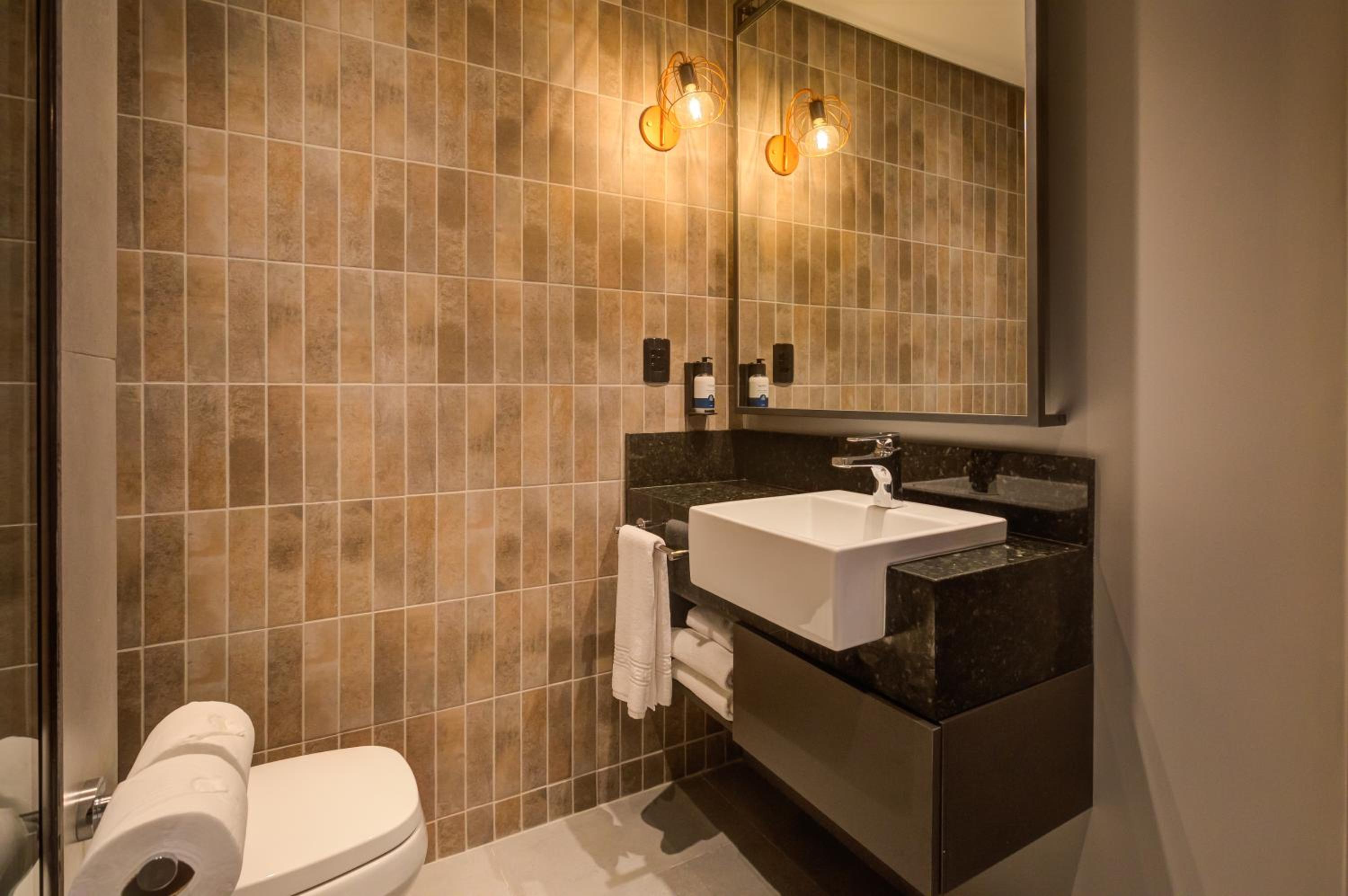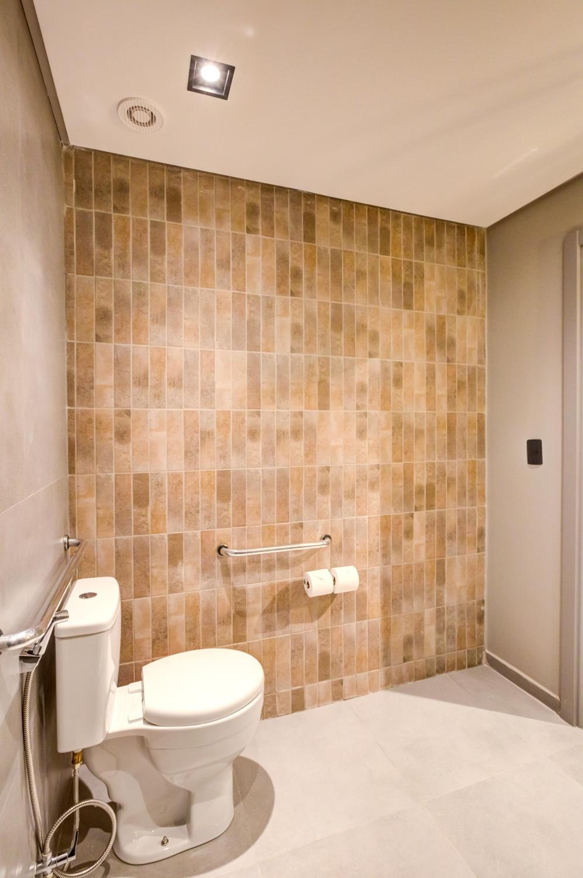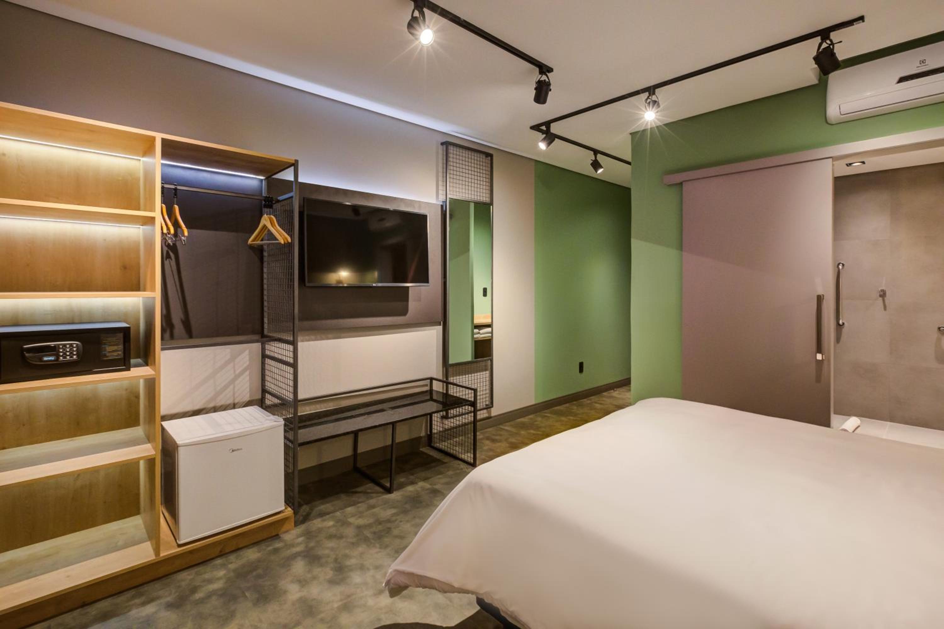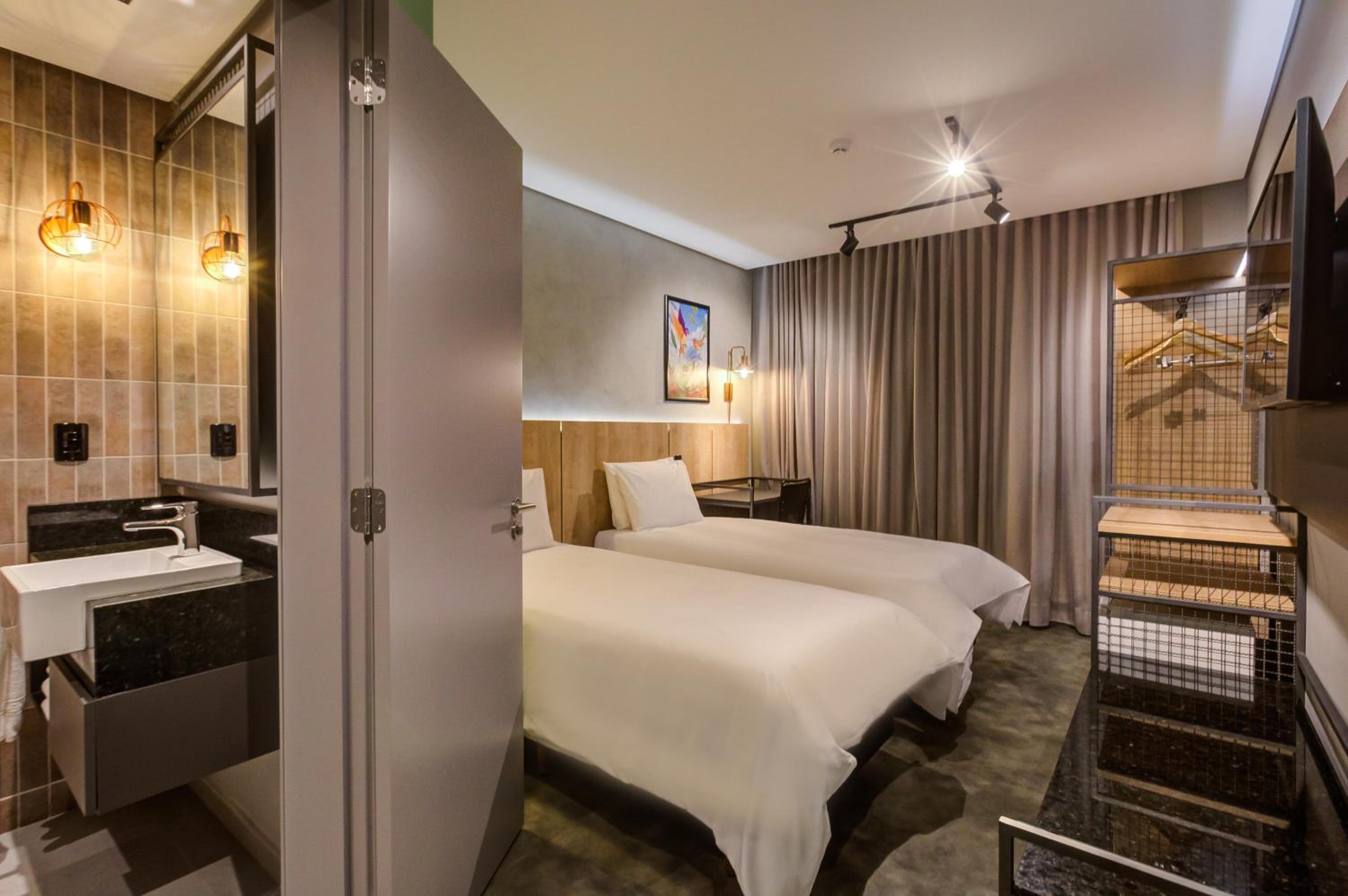 Hotel de construção nova, quarto e banheiro com tamanho adequado