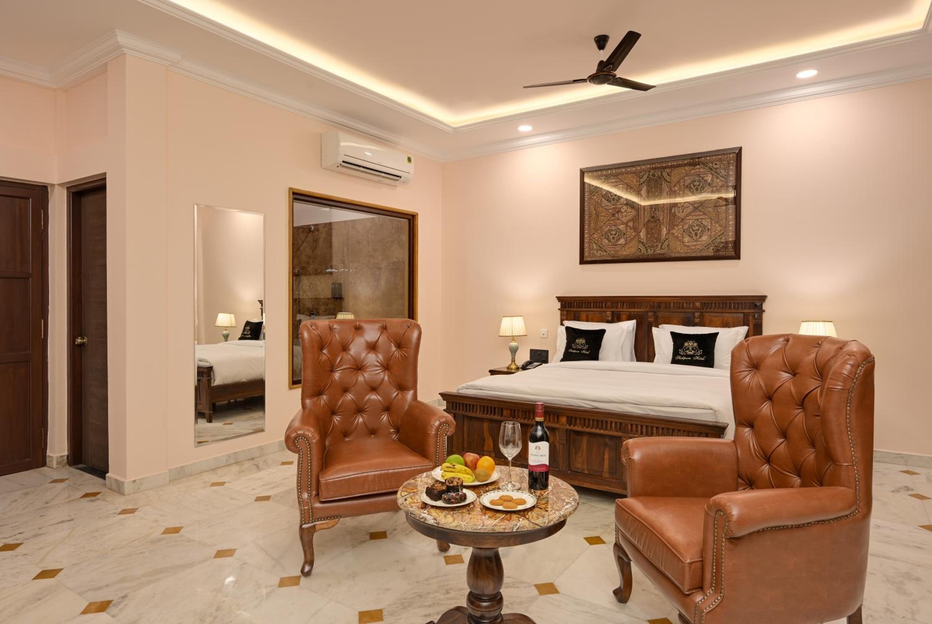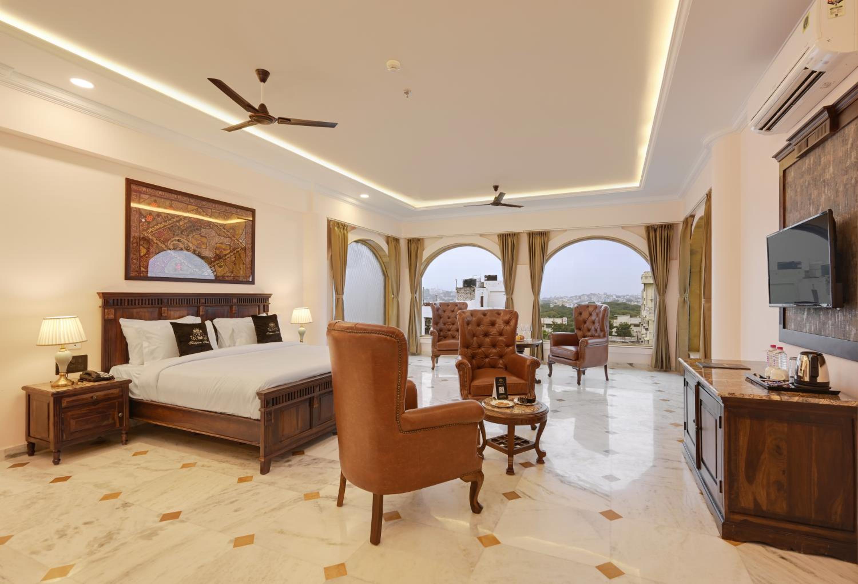 Experience 4-star comfort at Shahpura Barliyas House, offering elegant rooms with modern amenities including flat-screen TVs and private bathrooms.