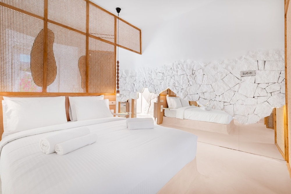 Loved the gorgeous design of Faos Suites. It doesn’t have a pool, but there’s a short path to the beautiful beach clubs of Ornos (our favourite was Kuzina). Location was so convenient, staff were friendly and the room was very unique and well styled.