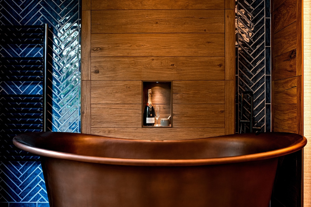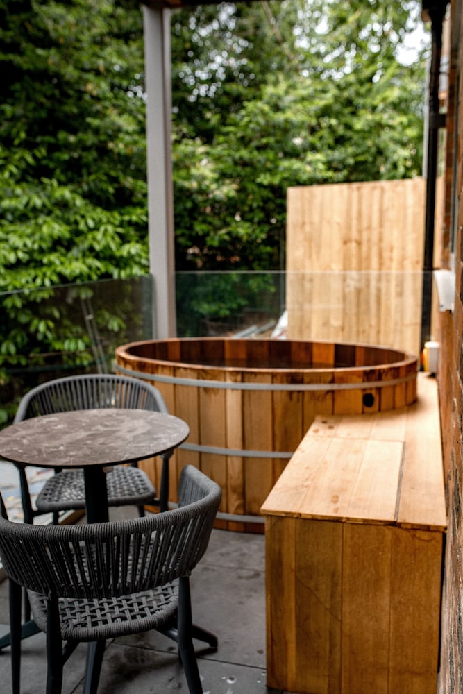 Location was a little tricky to find (it was a very wet and blustery night) but on entering the room, it was a great hidden gem!: Very private and comfortable - lovely huge bed, and a great bathroom - The soak in the balcony hot tub a massively welcome relax after the long drive we had from the South West. And thanking the staff for the room service food and drinks.