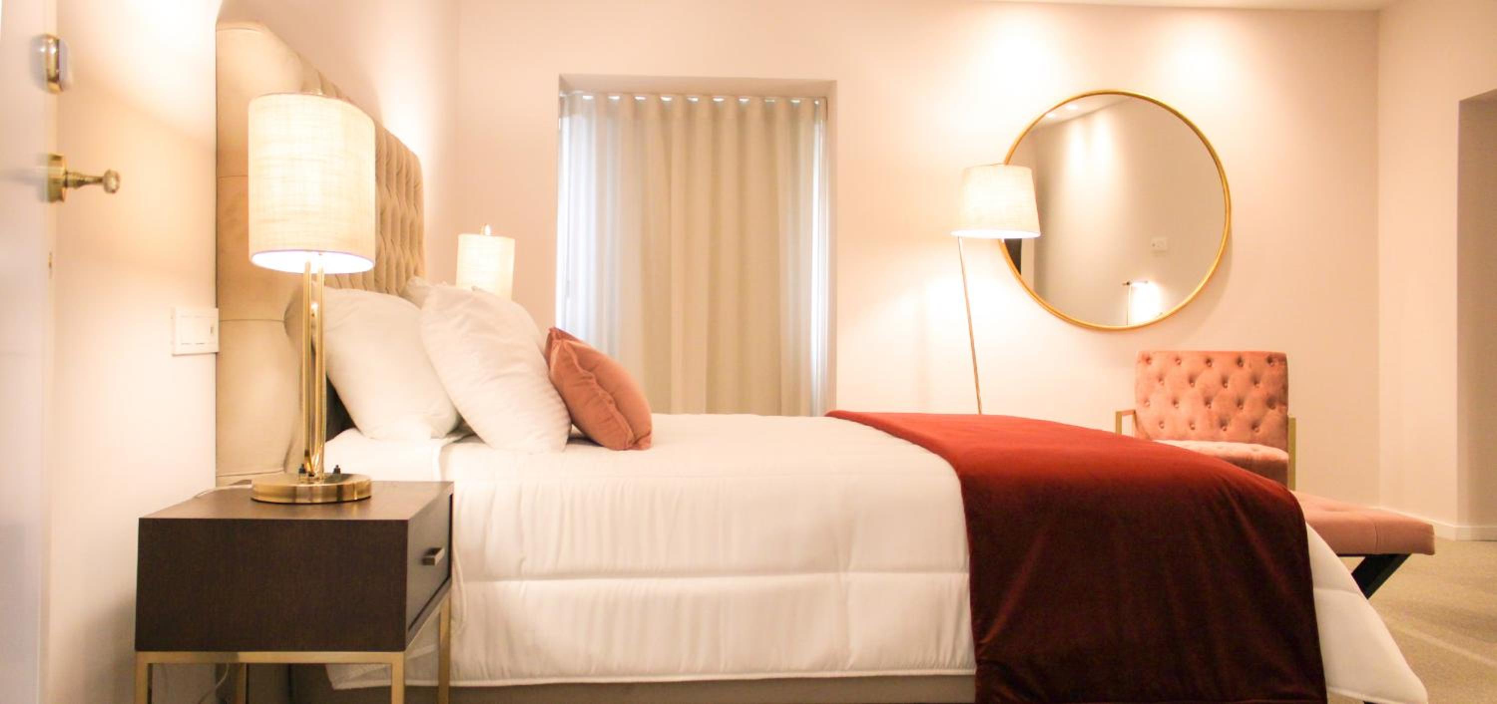 Comfortable room , beautiful gardens , stylish decor .