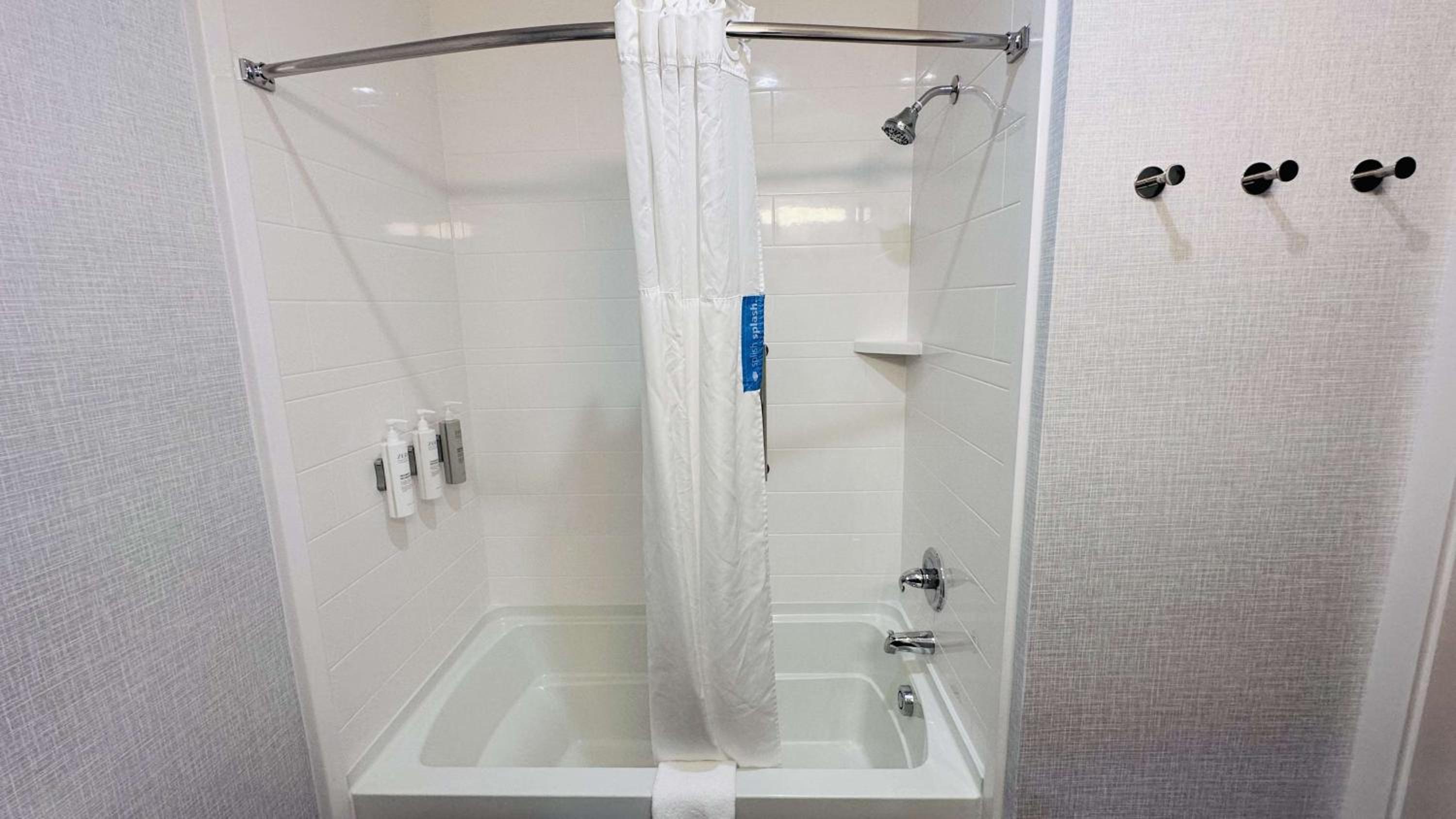 Location. 2 Free water bottles , shower pressure , microwave and refrigerator in room. Staff gave us plates and forks . Were provided a good amount of cups in room