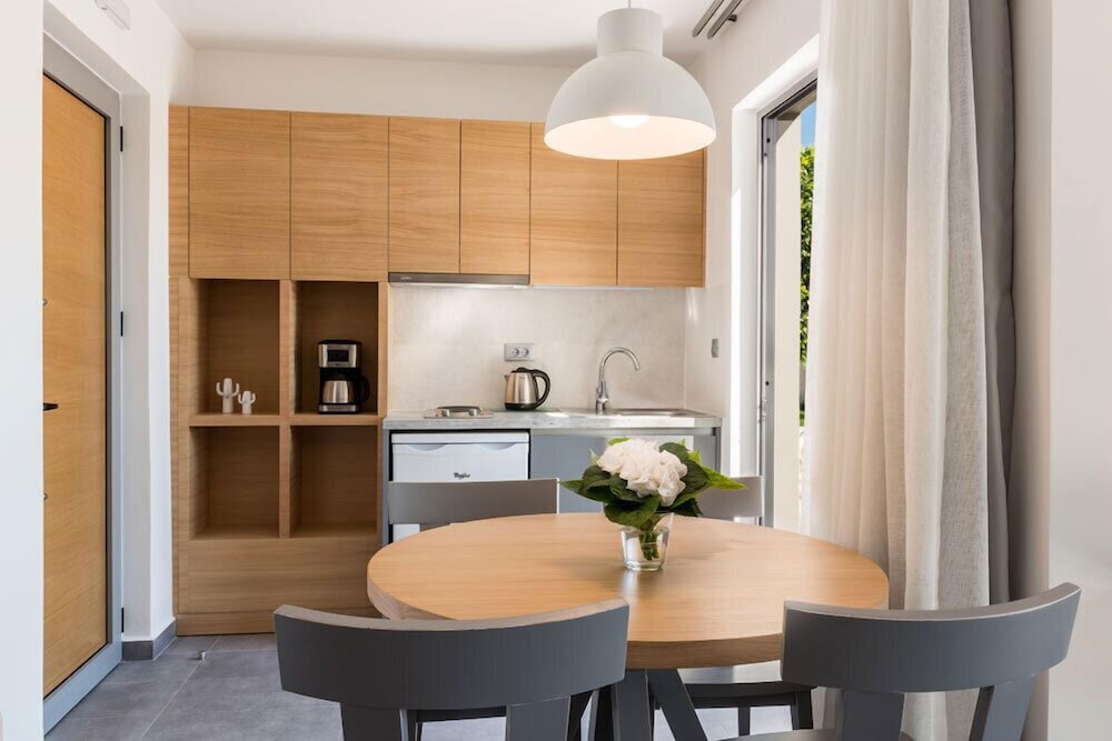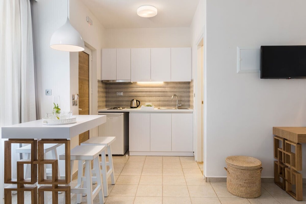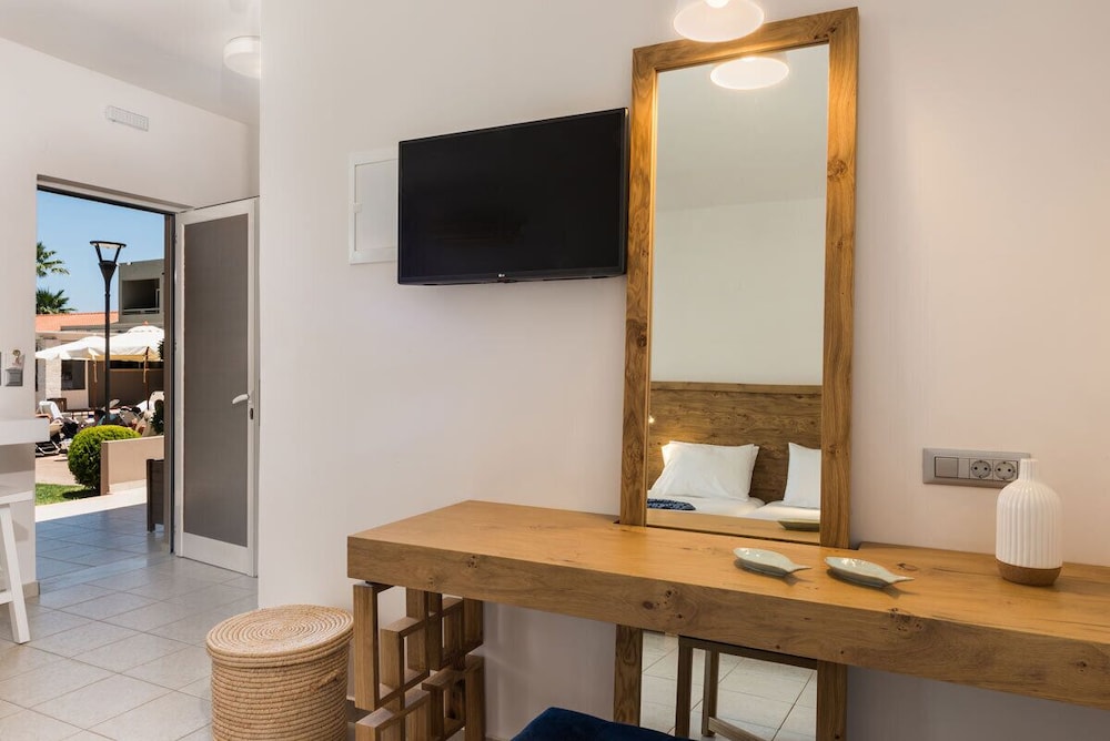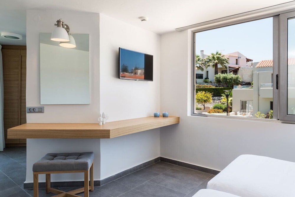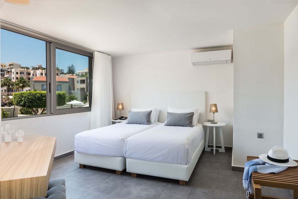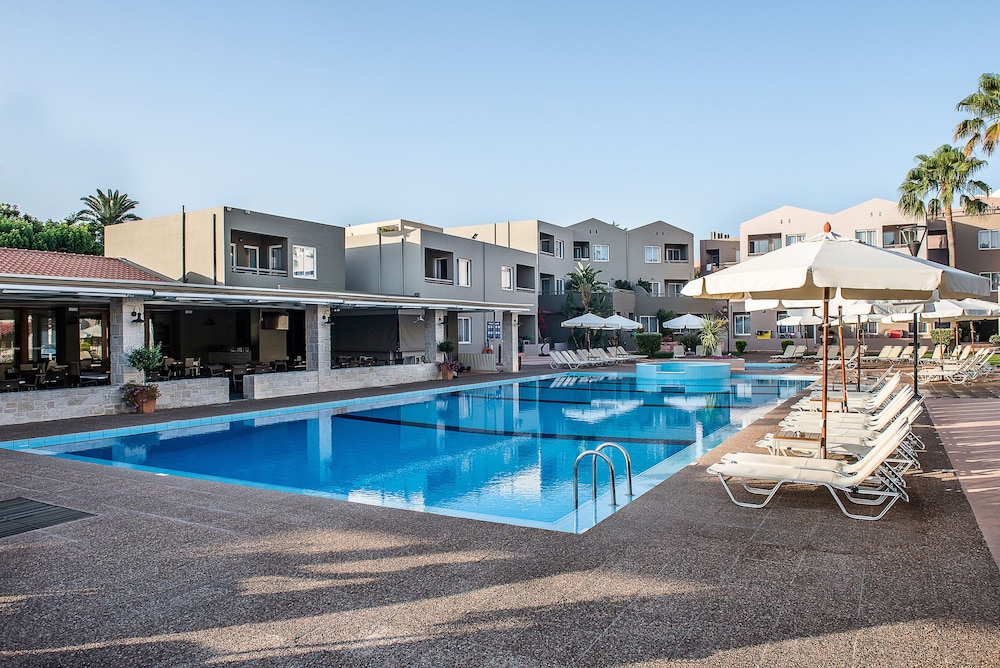 Fint hotell rett ved noen kjempefine og koselige strender og viker. Rett ved en fin park, fint å jogge her. Fint bassengområde, god frokost, stort utvalg av mat. Kaffetrakter og kjeler, bestikk osv. i leiligheten. God air condition. Det er mulig å spasere inn til Chania sentrum. Det er også enkelt å ta 21 bussen rett utenfor og inn til Chania sentrum, tar kun 15 min.