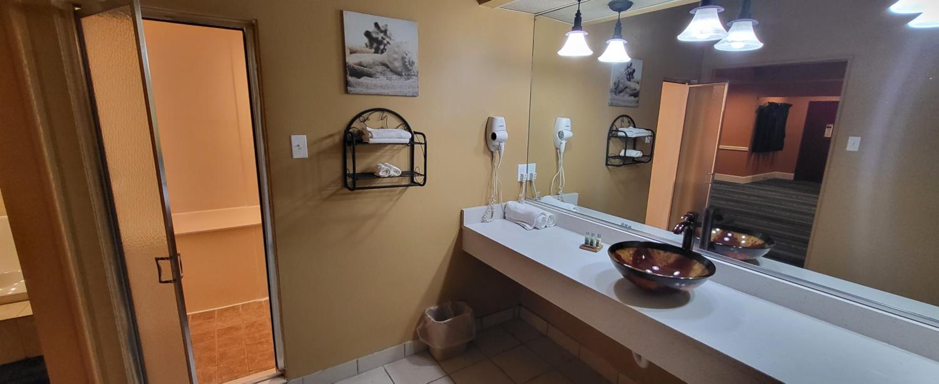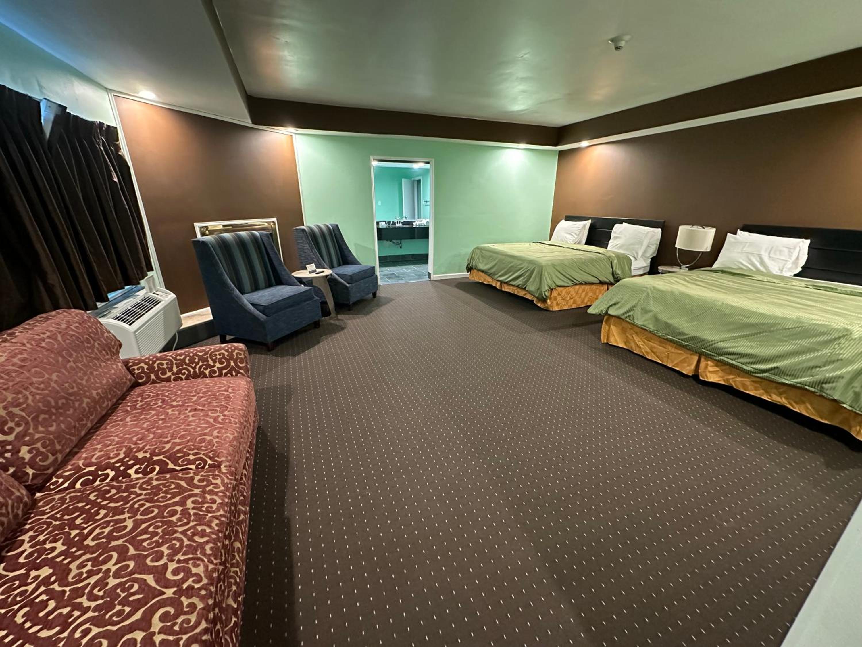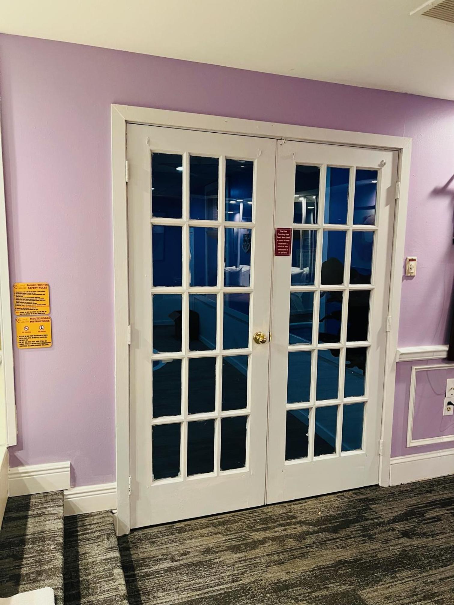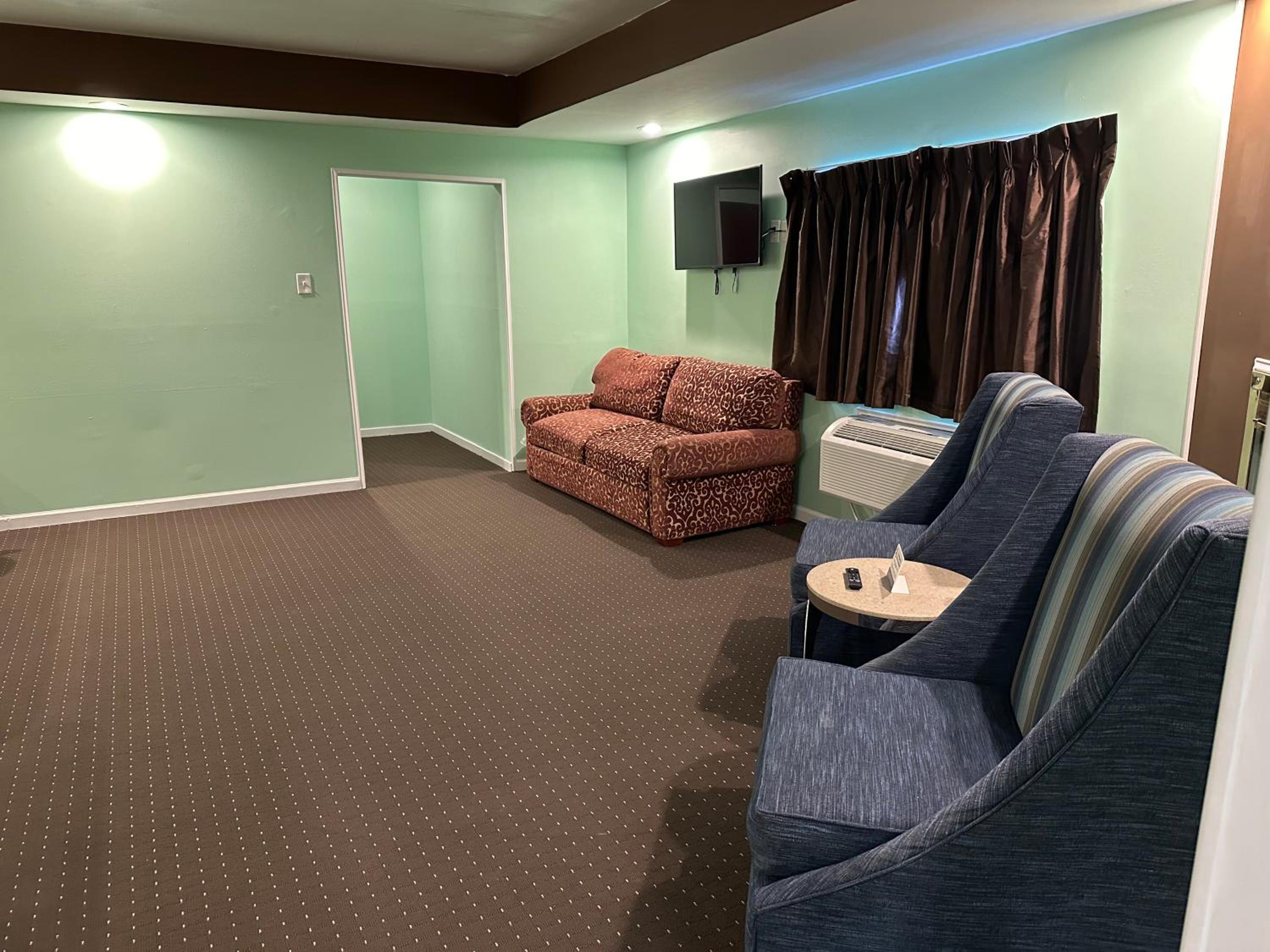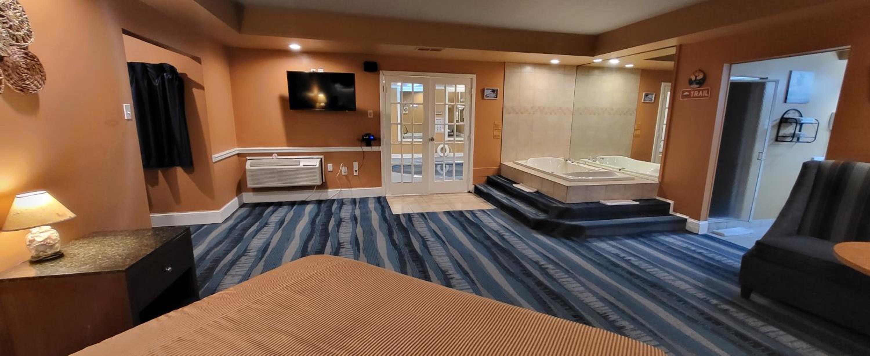 Jacuzzi tub was broken and dated. Room was huge and clean but we had a very tiny tv in a very awkward spot in the room. Door frame was obviously busted down and broken into before and window screens were ripped.