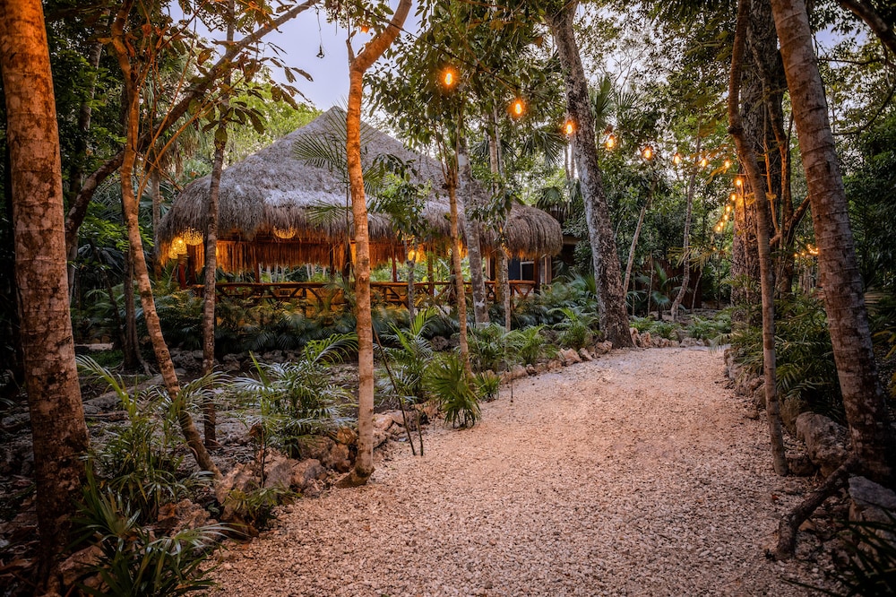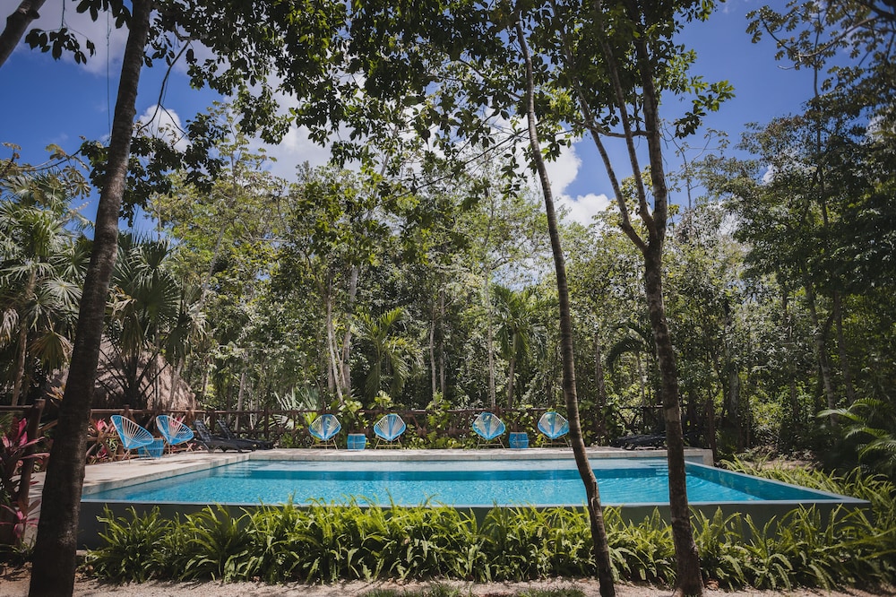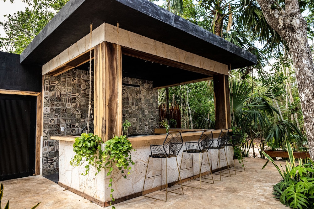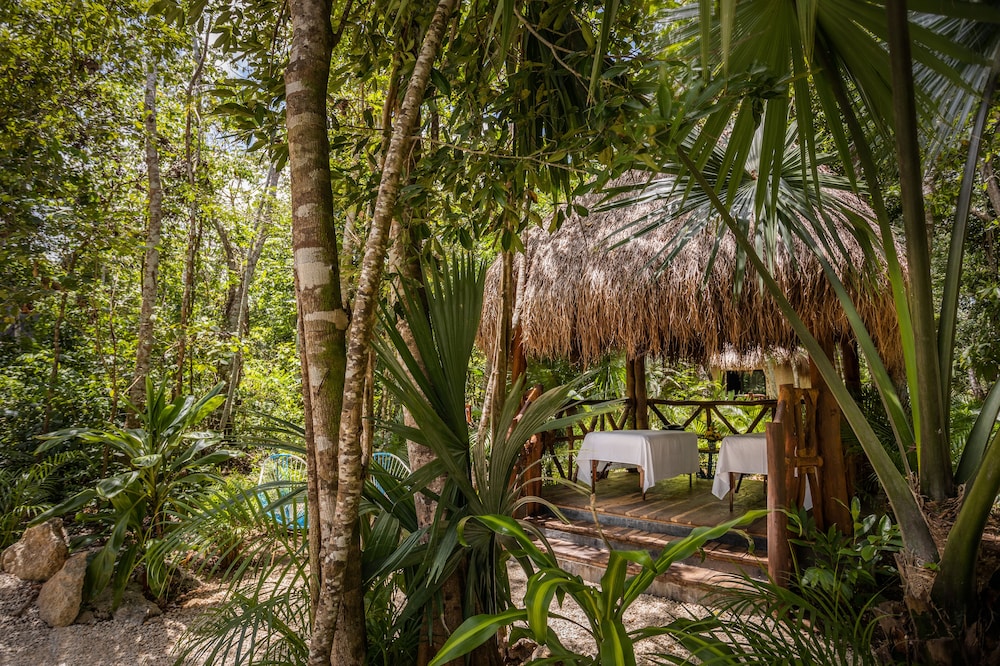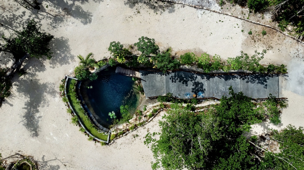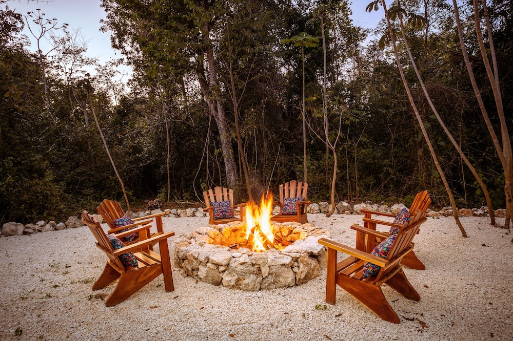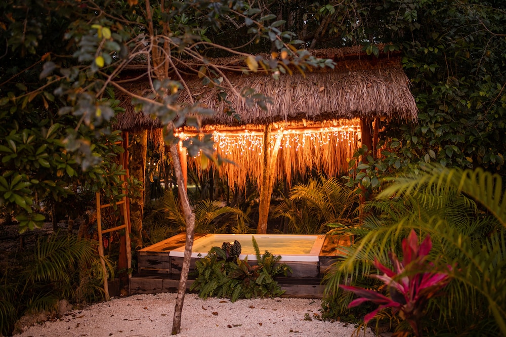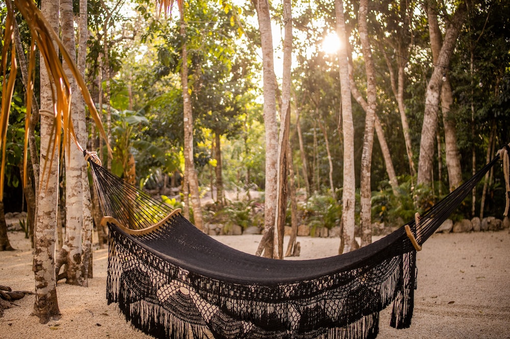 Beautiful jungle setting. Around 20 minutes away from beach portion of Puerto Morelos. But, within 5 minutes of numerous amazing cenotes.