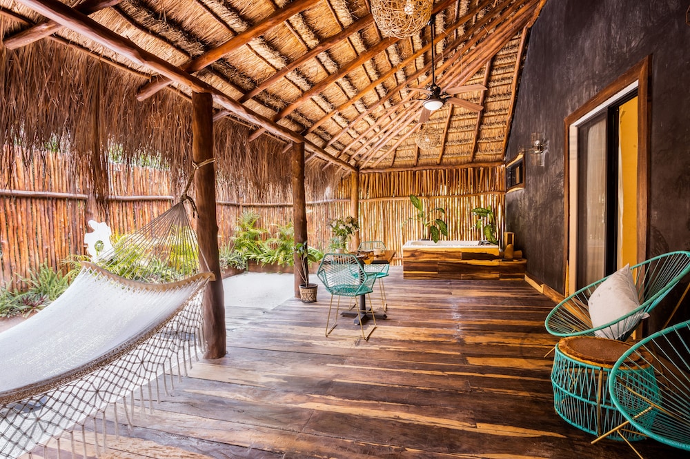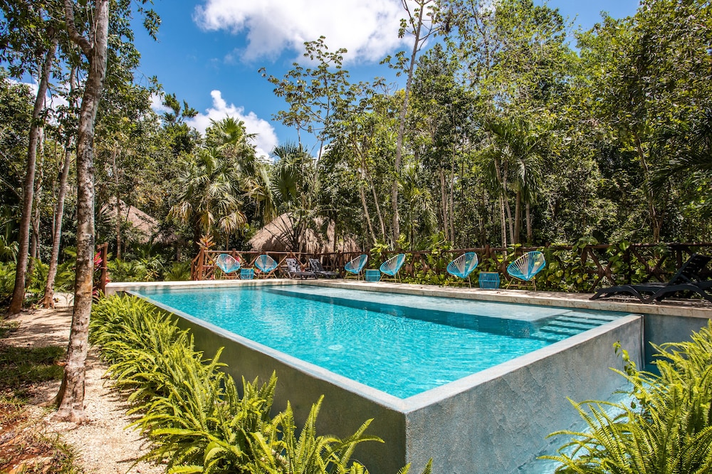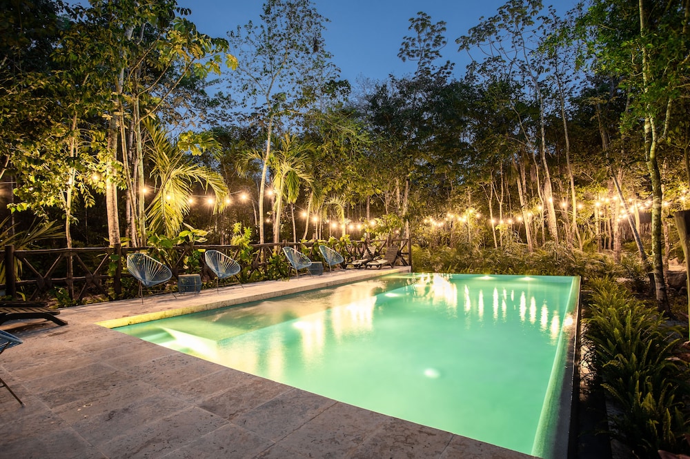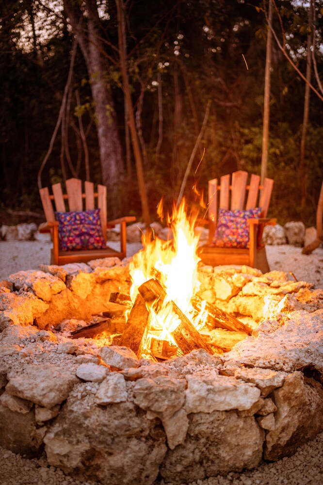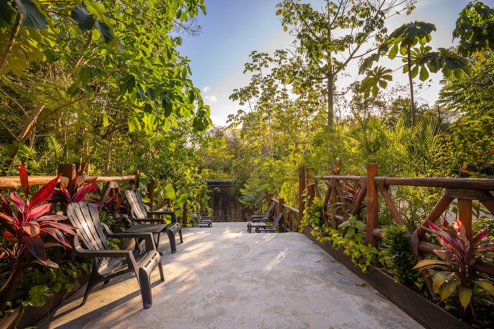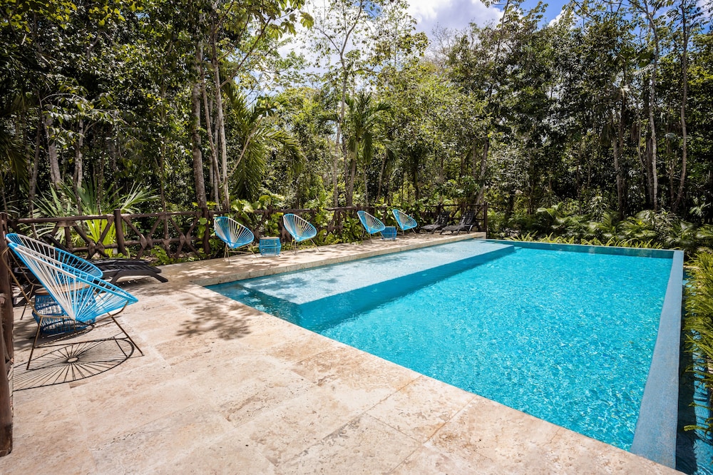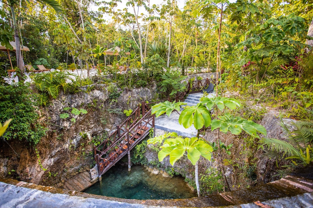 Beautiful jungle setting. Around 20 minutes away from beach portion of Puerto Morelos. But, within 5 minutes of numerous amazing cenotes.
