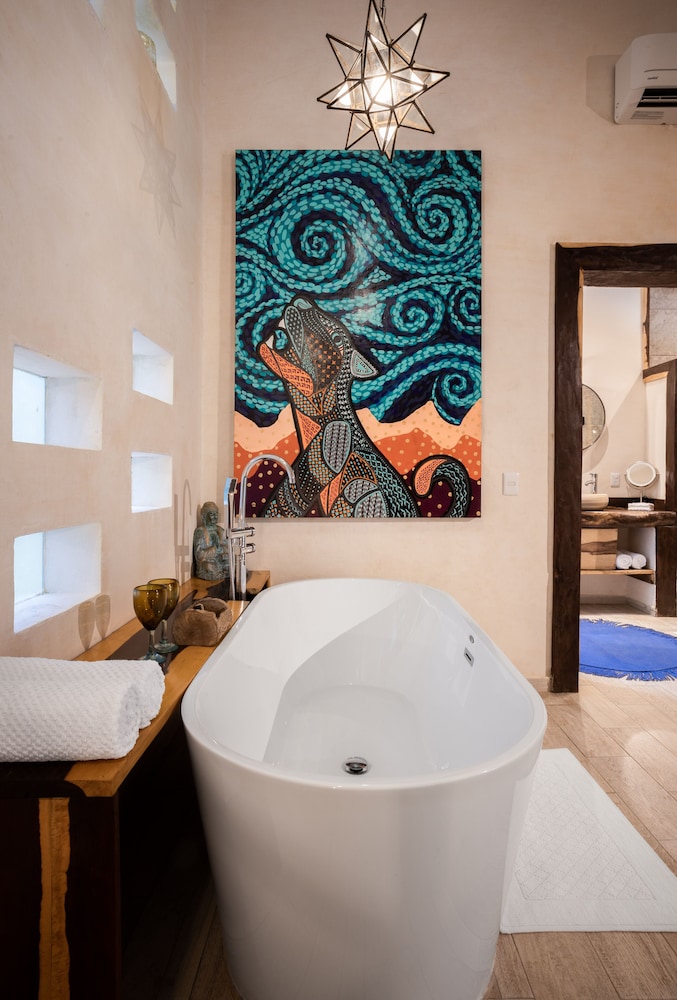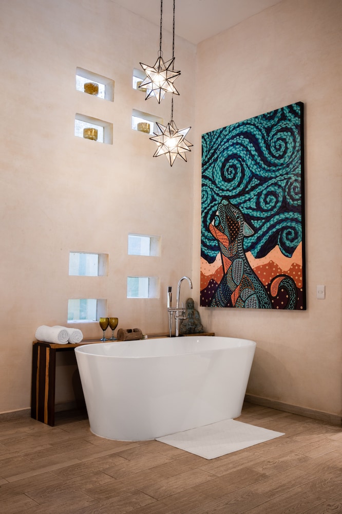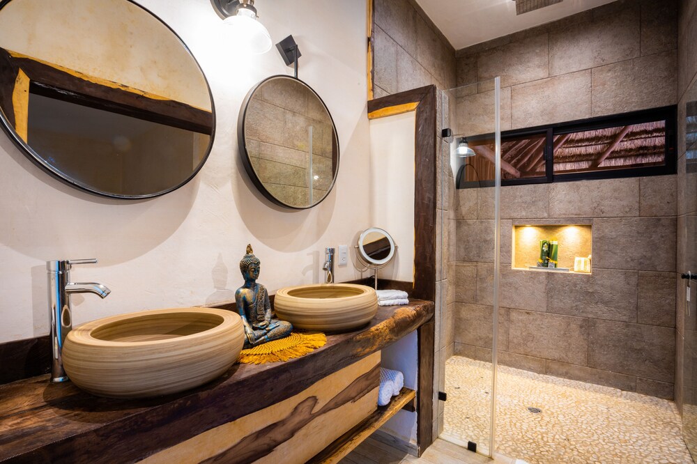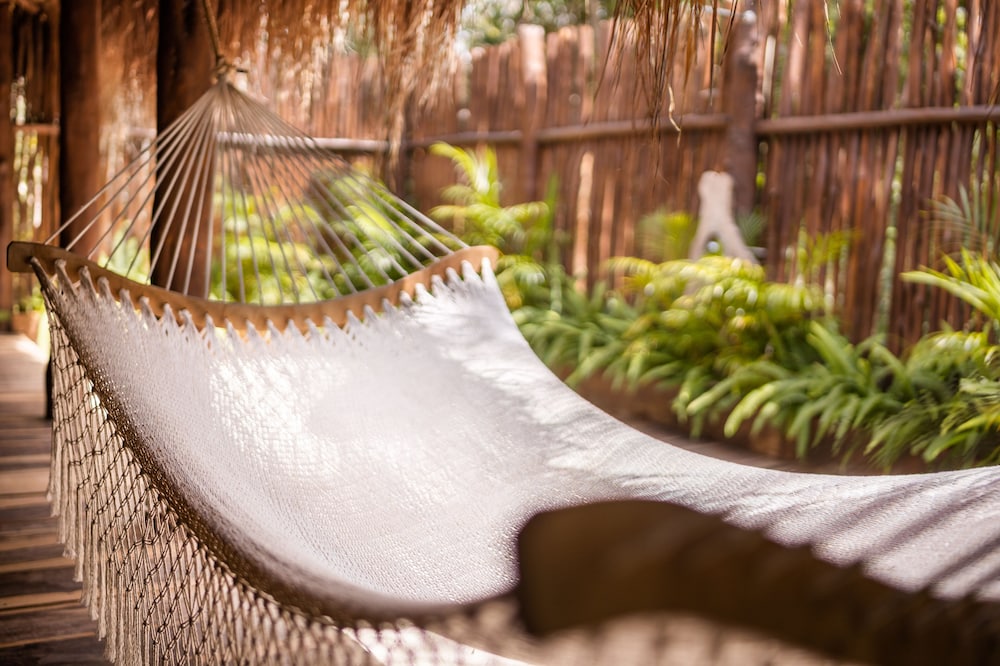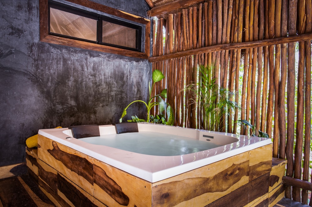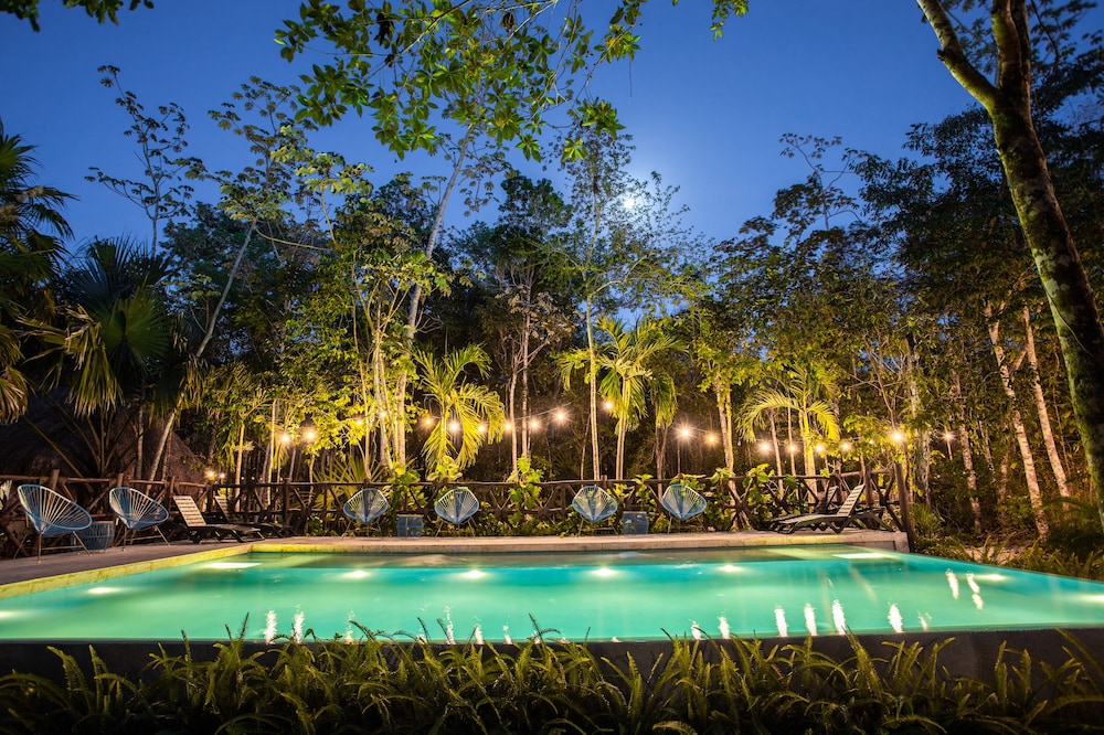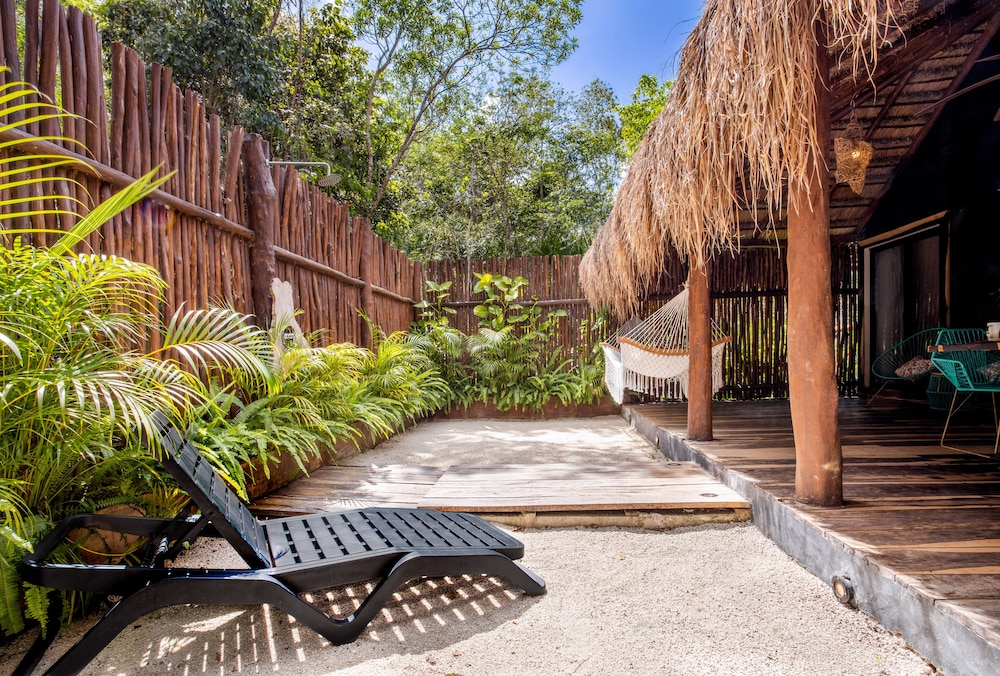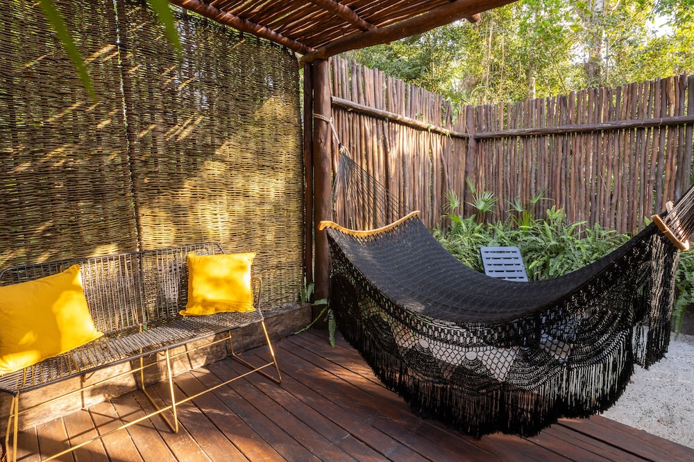Beautiful jungle setting. Around 20 minutes away from beach portion of Puerto Morelos. But, within 5 minutes of numerous amazing cenotes.