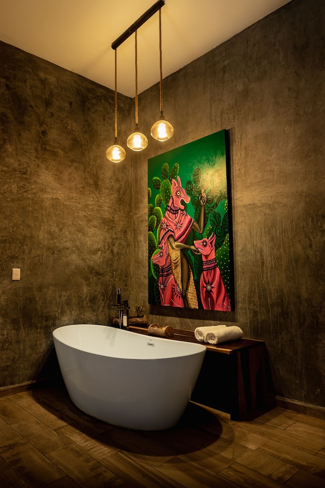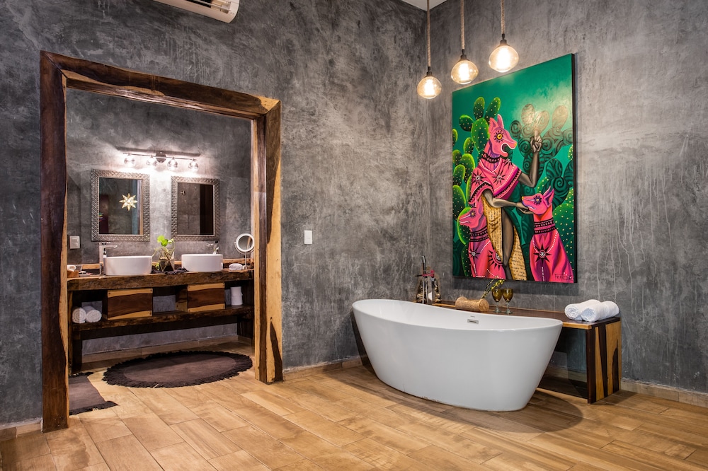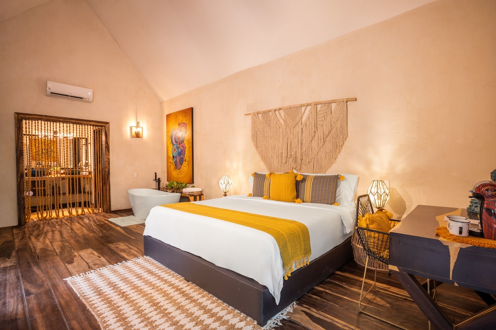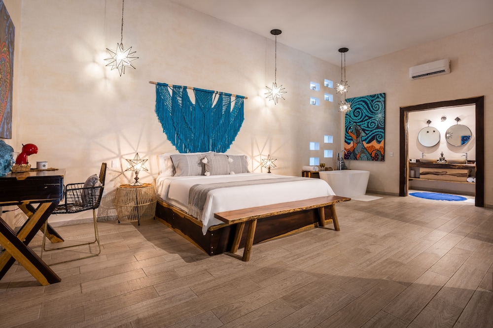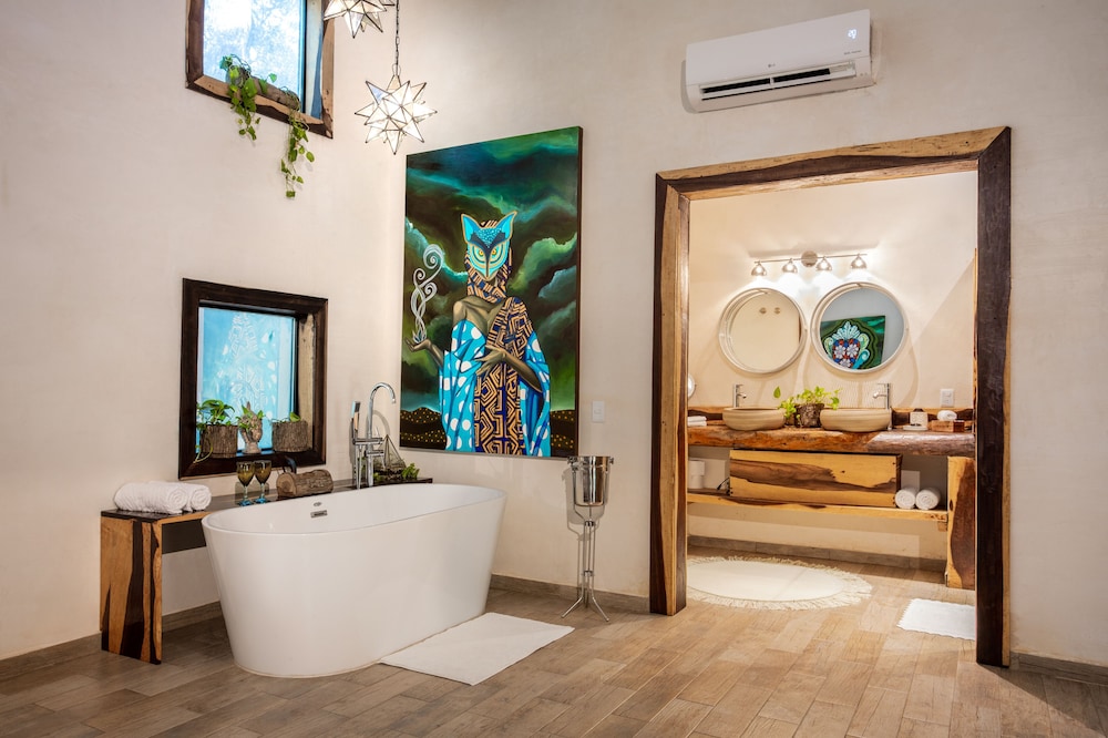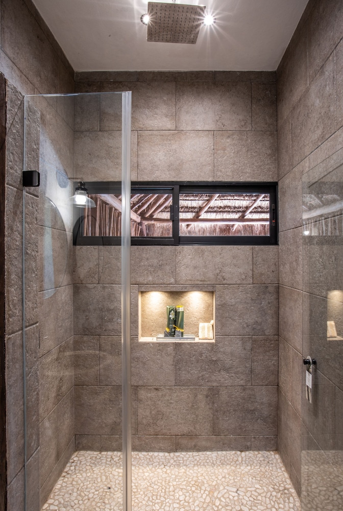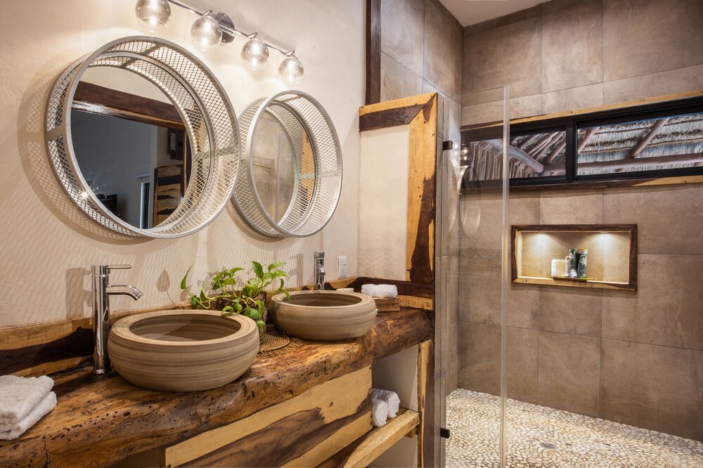 Beautiful jungle setting. Around 20 minutes away from beach portion of Puerto Morelos. But, within 5 minutes of numerous amazing cenotes.