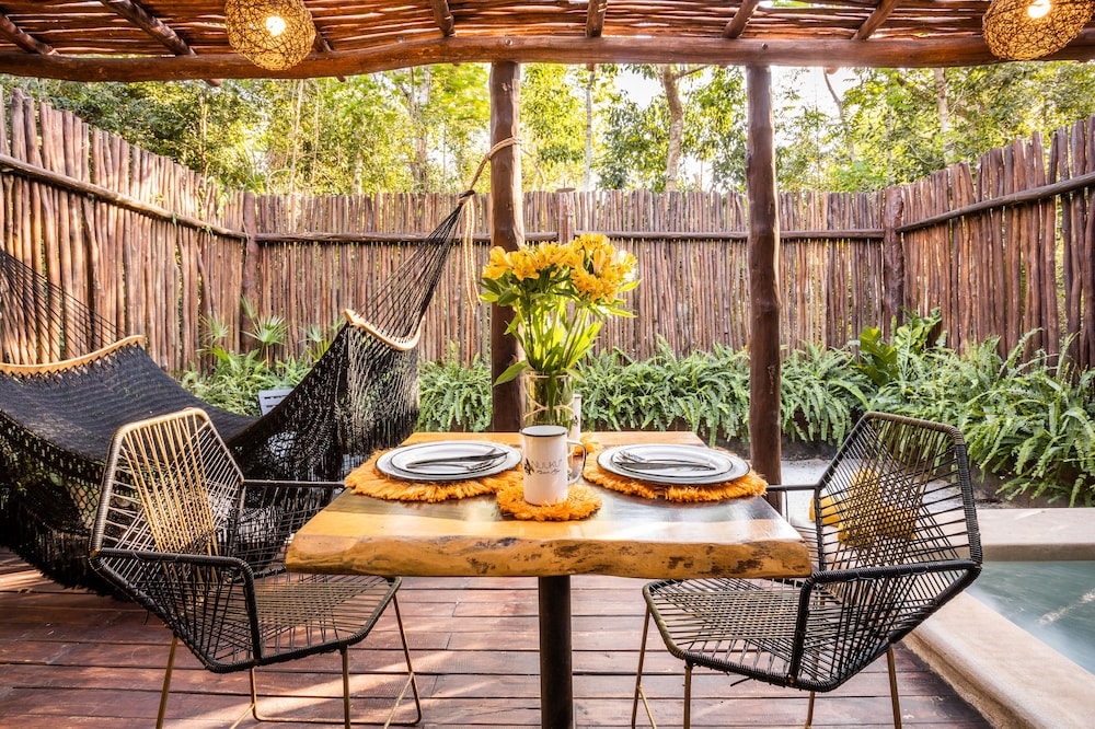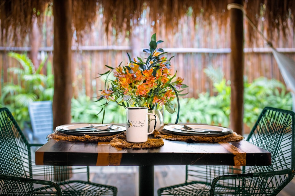 I booked Nuuku for a solo getaway and cannot wait to come back! I was able to book a ride to and from the Cancun airport and the staff was hospitable and kind, going the extra mile to make me feel safe and special. The food was amazing!!! Highly recommend investing in the 5-course dinner at the Cenote. It is a beautiful property, tucked away from the street, with jungle vibes, a beautiful pool, and truly your own Cenote. The deep tissue massage was also amazing! One of the best I've ever had. 5 stars to this tranquil getaway!