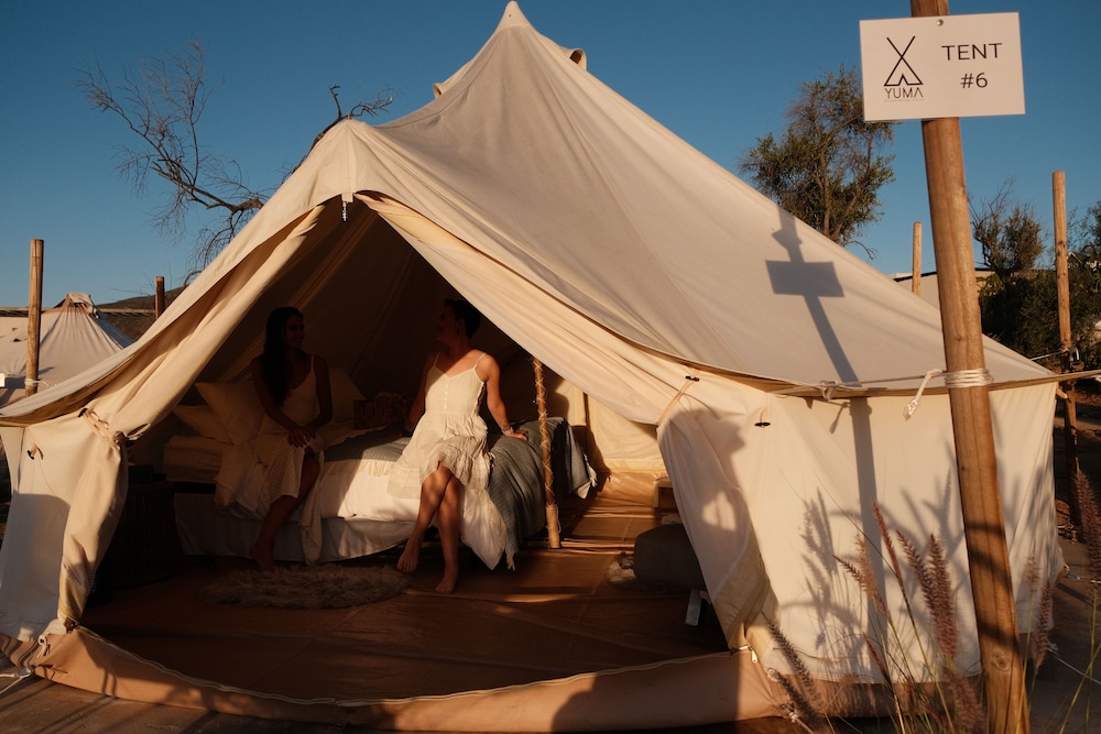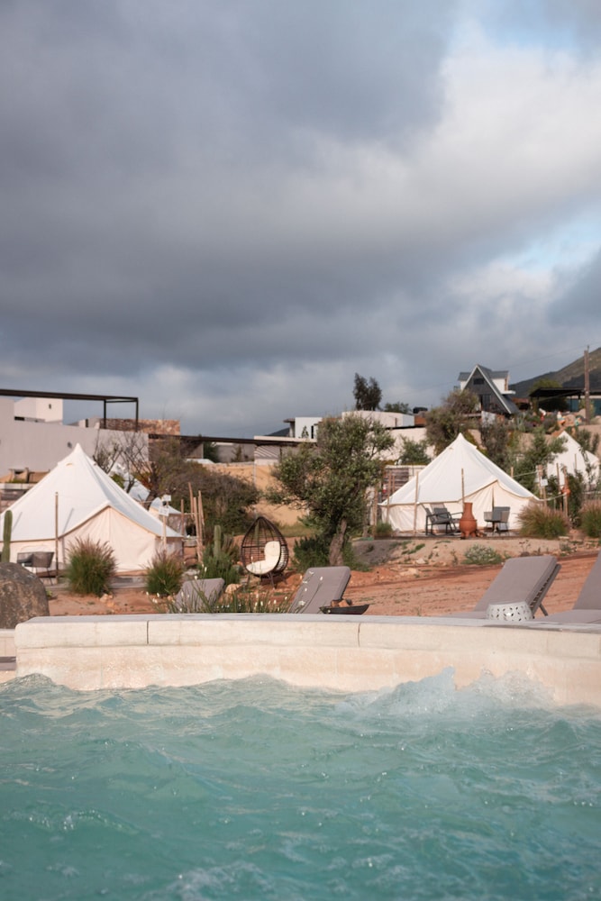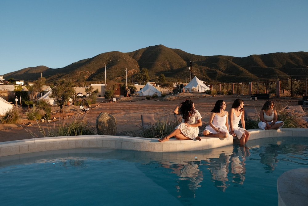Indulge in the scenic beauty of Valle de Guadalupe at Glamping Valle de Guadalupe with private bathroom by Yuma Resort. Unwind by the seasonal outdoor pool and immerse yourself in the tranquil mountain surroundings.