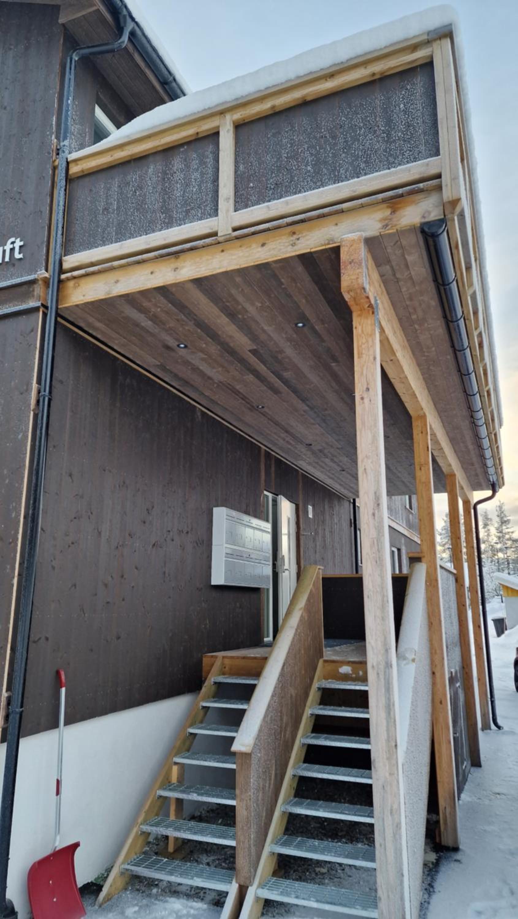 Schody metalowe, dziurawe, nie dla psów (trzeba wnosić).