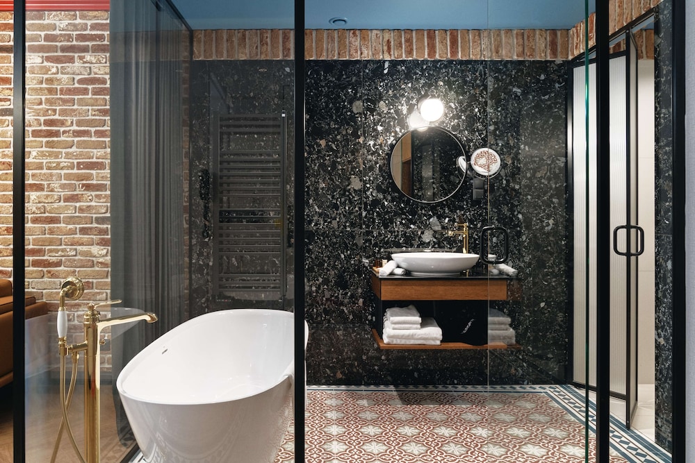 Veldig fint rom. Stort. Genialt med hems til kidsa. Stort bad.Vi var 2 voksne og 2 barn. Litt hard seng. Badet var veldig fint og stort. Men badekar, ble veldig vått på golvet. Minus for ikke frokost og ikke basseng. Veldig sentralt. Perfekt beliggenhet.
