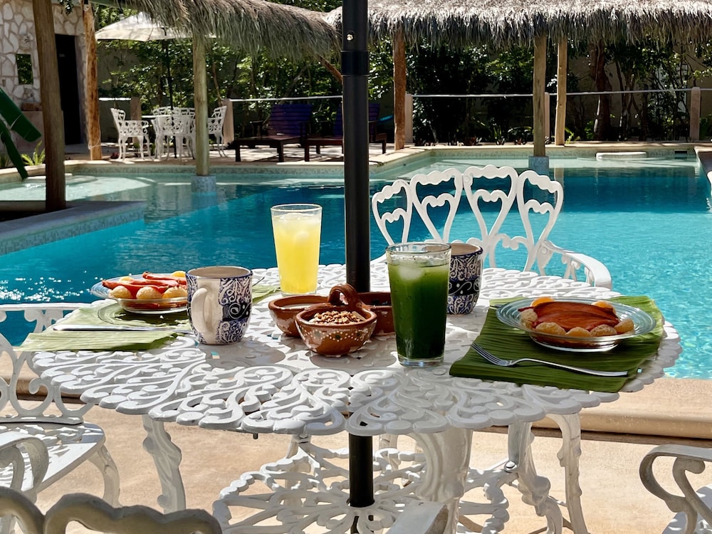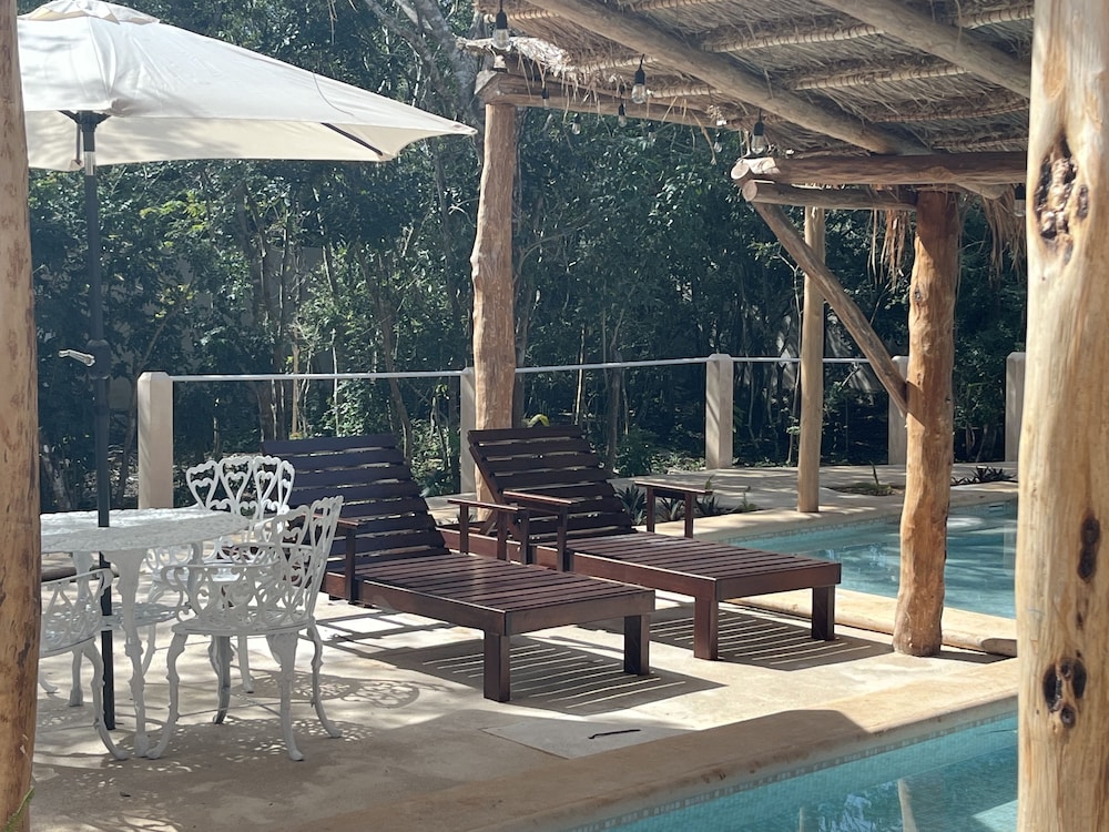 Take advantage of the outdoor pool, terrace, and garden at Villas Tikuch for a relaxing escape surrounded by nature.