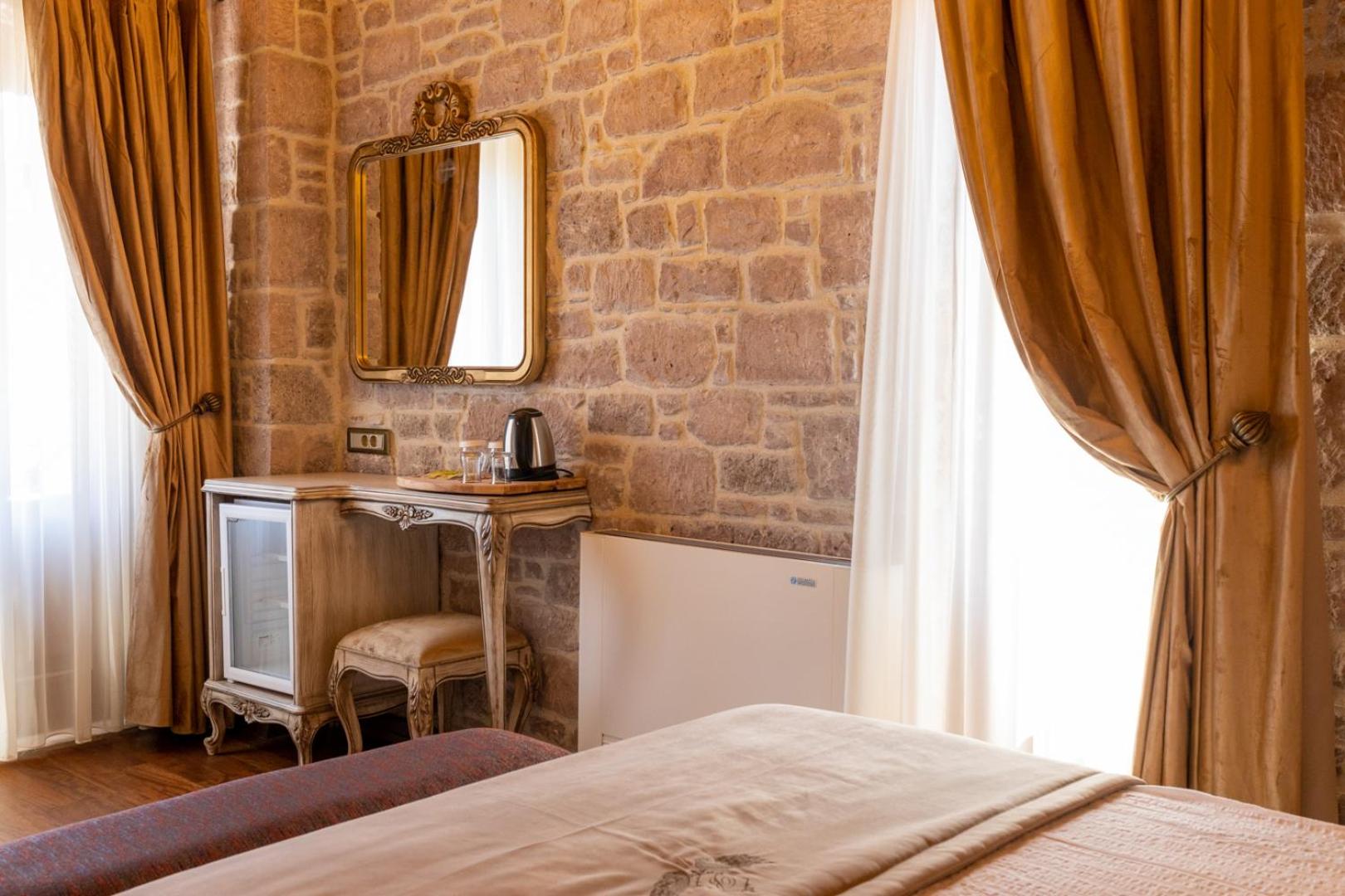 Went here for my honeymoon and it is one, if not the nicest hotels I ever stayed at. Very clean and modern room with a few water bottles in the fridge. The walk to our room was stunning with a very nice view of the surrounding area, the pool and the landscape/architecture of the complex. The owner also gave us a very nice bottle of wine for free when he learned about our honeymoon (he is really friendly and can be seen greeting/talking to people during breakfast). The breakfast is a great traditional turkish breakfast spread with high quality food.