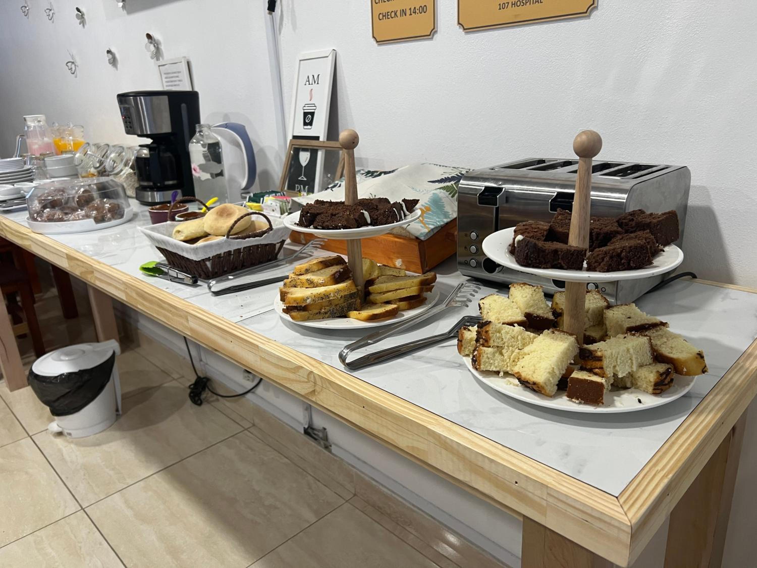 El desayuno era bufet, pero con opciones no tan buenas (galletitas, vainillas, muffins y bizcochos todos de paquete), estuvimos 7 días y solo 2 hubo medialunas, otro budín. Tenía café, leche y otras infusiones, yogur de frutilla y cereales, unas pocas rodajas finitas de manzana y naranja, Te daban una feta de jamón y otra de queso por persona. Pan blanco, manteca, mermelada y dulce de leche.