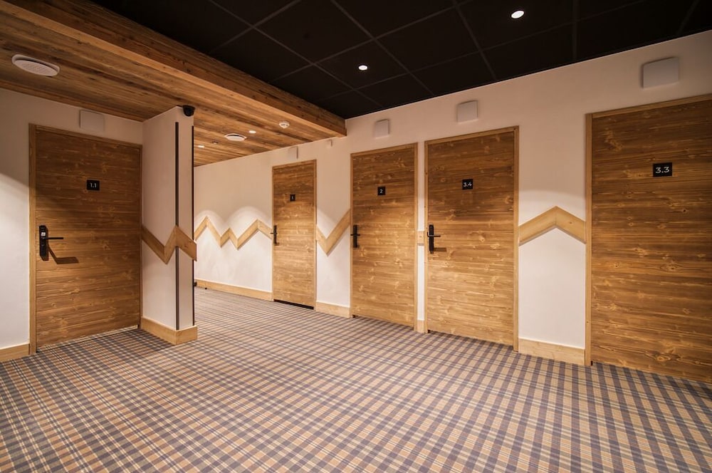 Apartments very modern and well equipped. Lovely individual heated ski rooms for each apartment. Nice wellness area too.