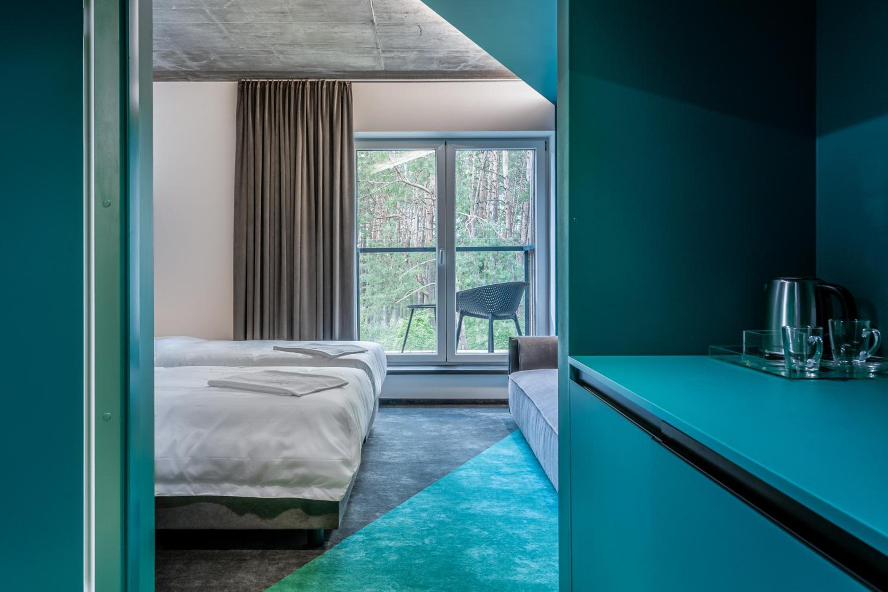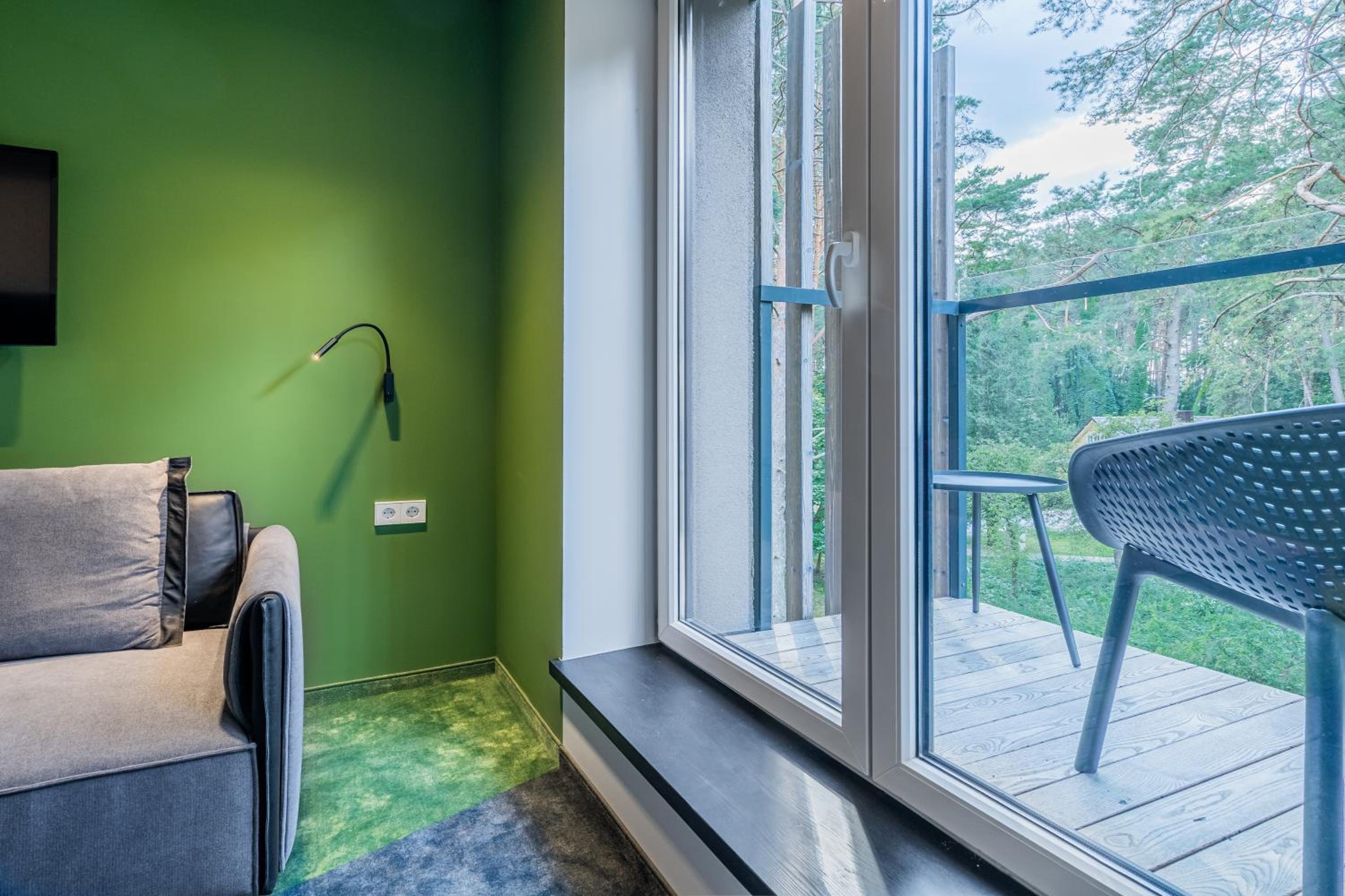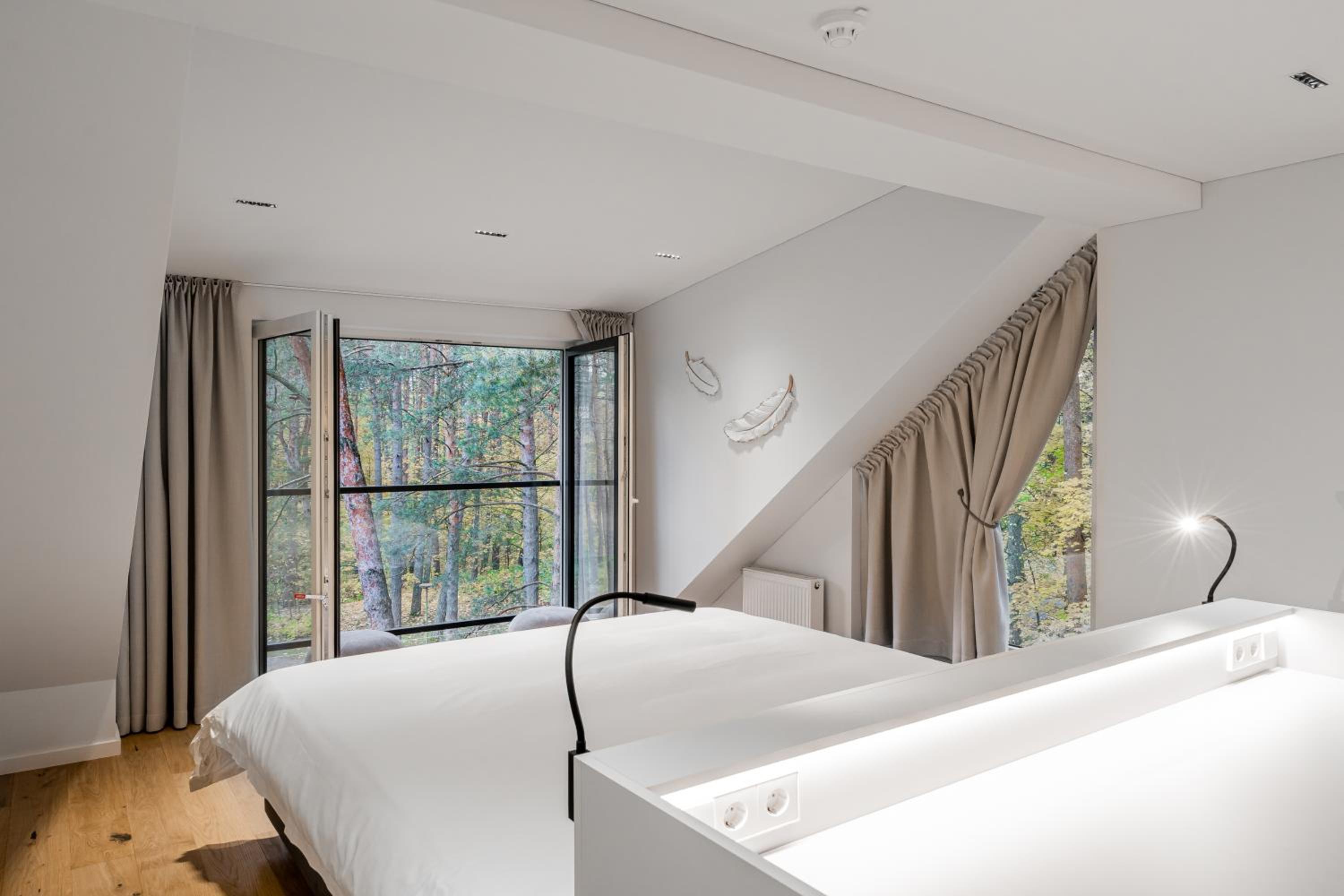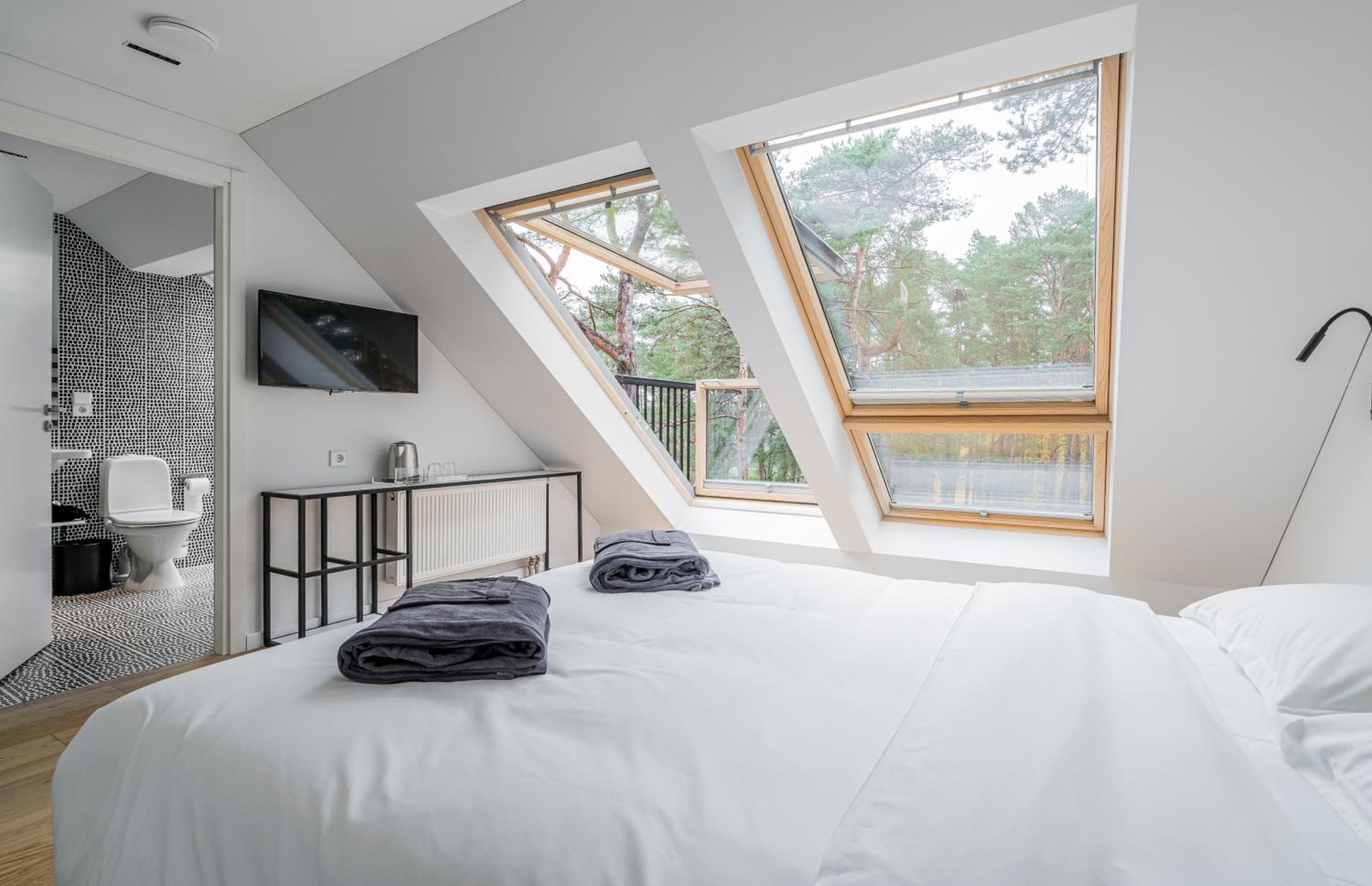 Gražioje vietoje miško apsupty, modernūs ir labai švarūs kambariai, skanūs pusryčiai.