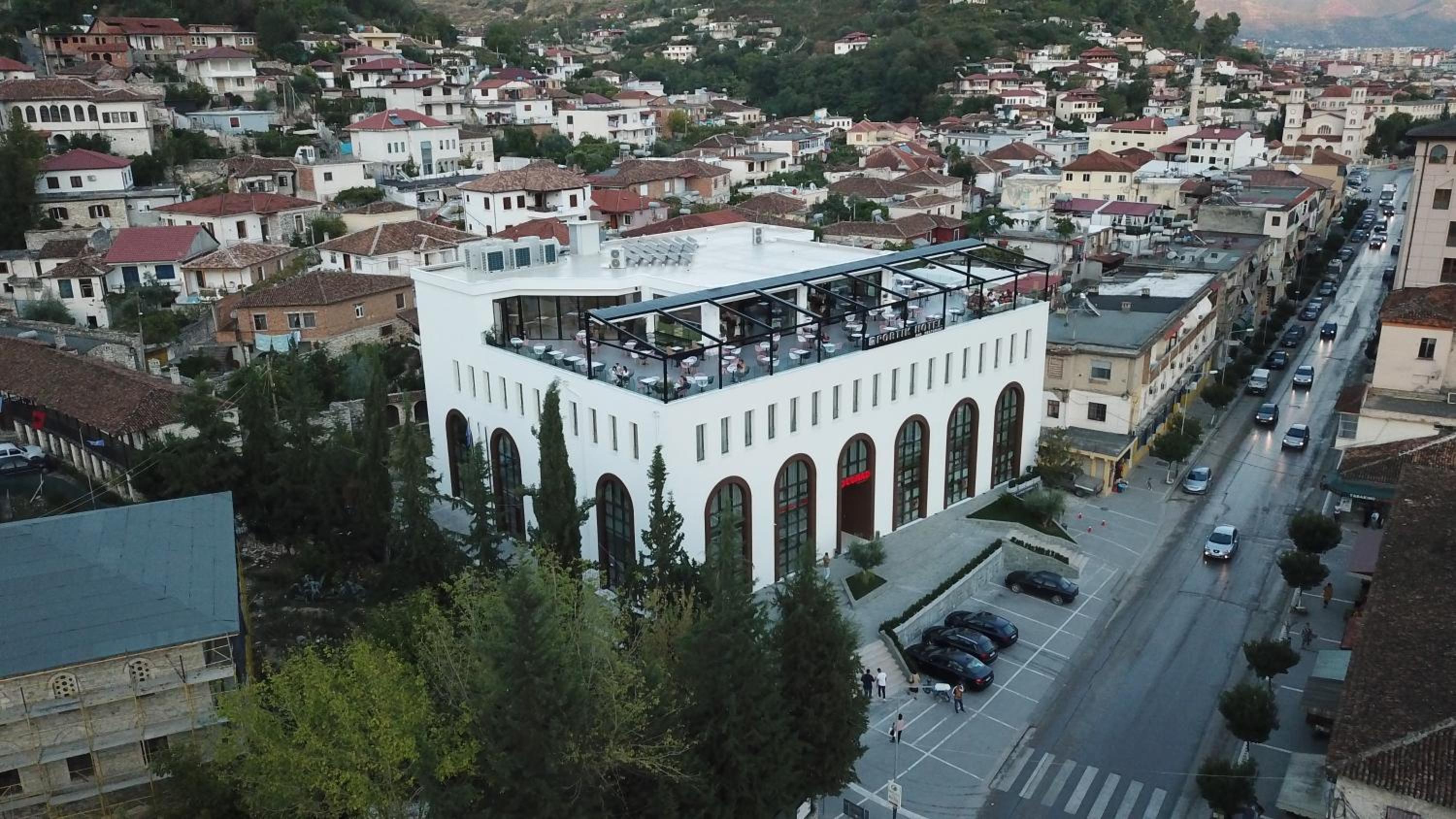 Struttura bellissima in ottima posizione con perfetto parcheggio e staff gentilissimo e preparatissimo. Impagabile la colazione sulla terrazza in cima all'albergo con vista sulla città la valle di Berat.