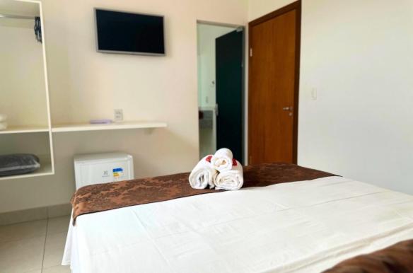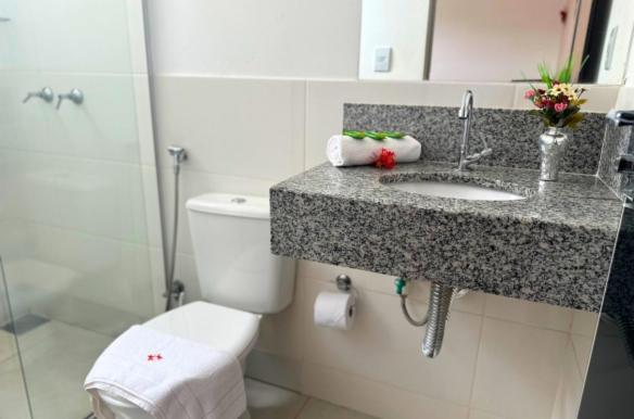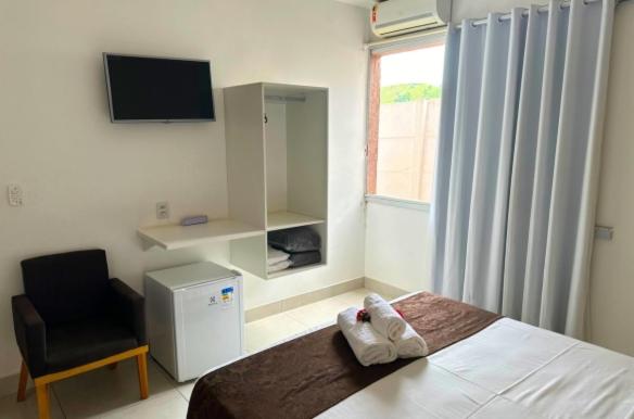 Each room is equipped with a flat-screen TV and satellite channels for entertainment. Enjoy a comfortable stay with air conditioning and a private bathroom in every room at Shalom Pousada Capitólio.