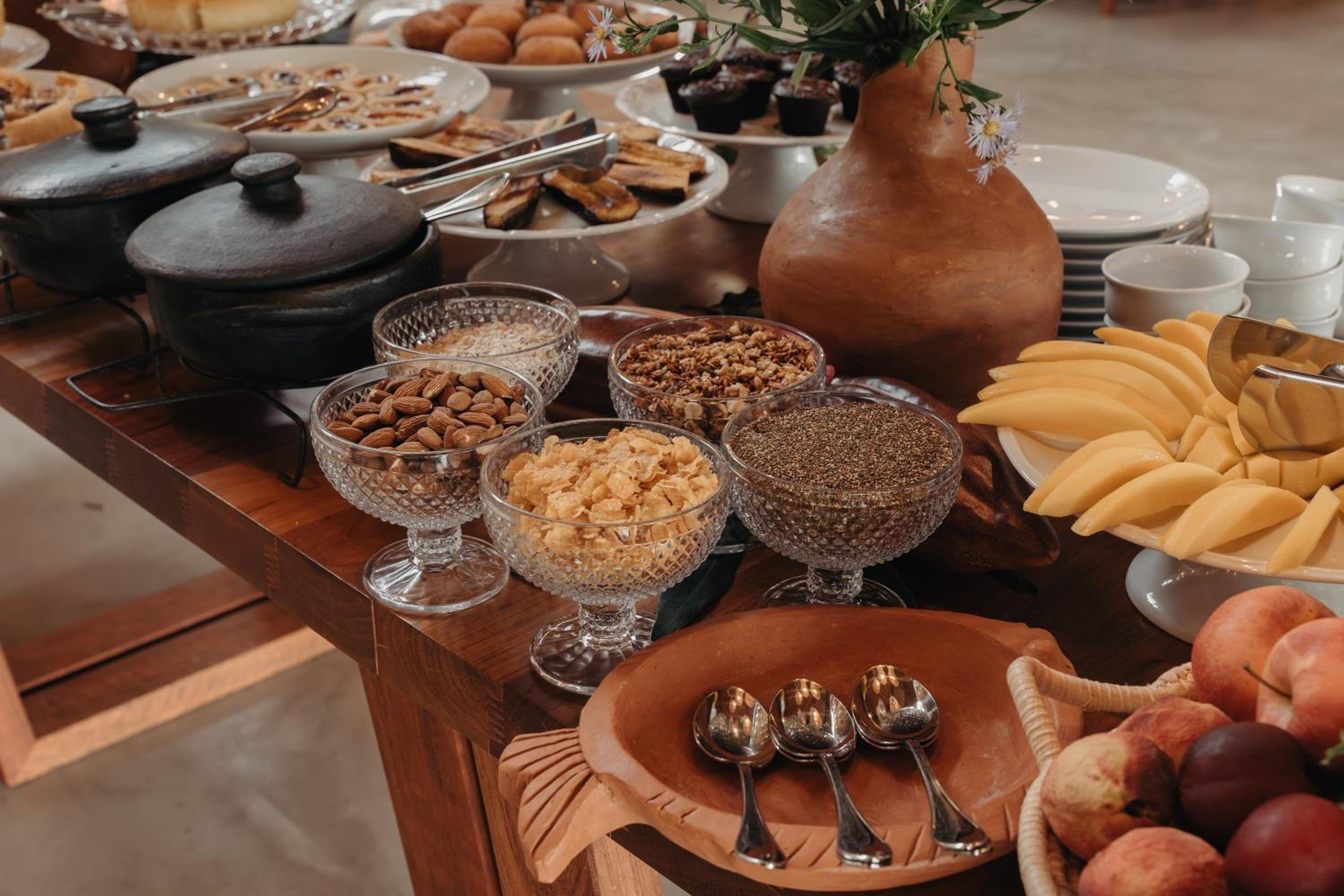 Unwind by the outdoor swimming pool or take a leisurely stroll through the lush garden and terrace. Indulge in delicious Brazilian cuisine at the on-site restaurant or sip on refreshing drinks at the bar. The perfect combination of relaxation and gastronomic delights awaits you at Aysú Trancoso Hotel.