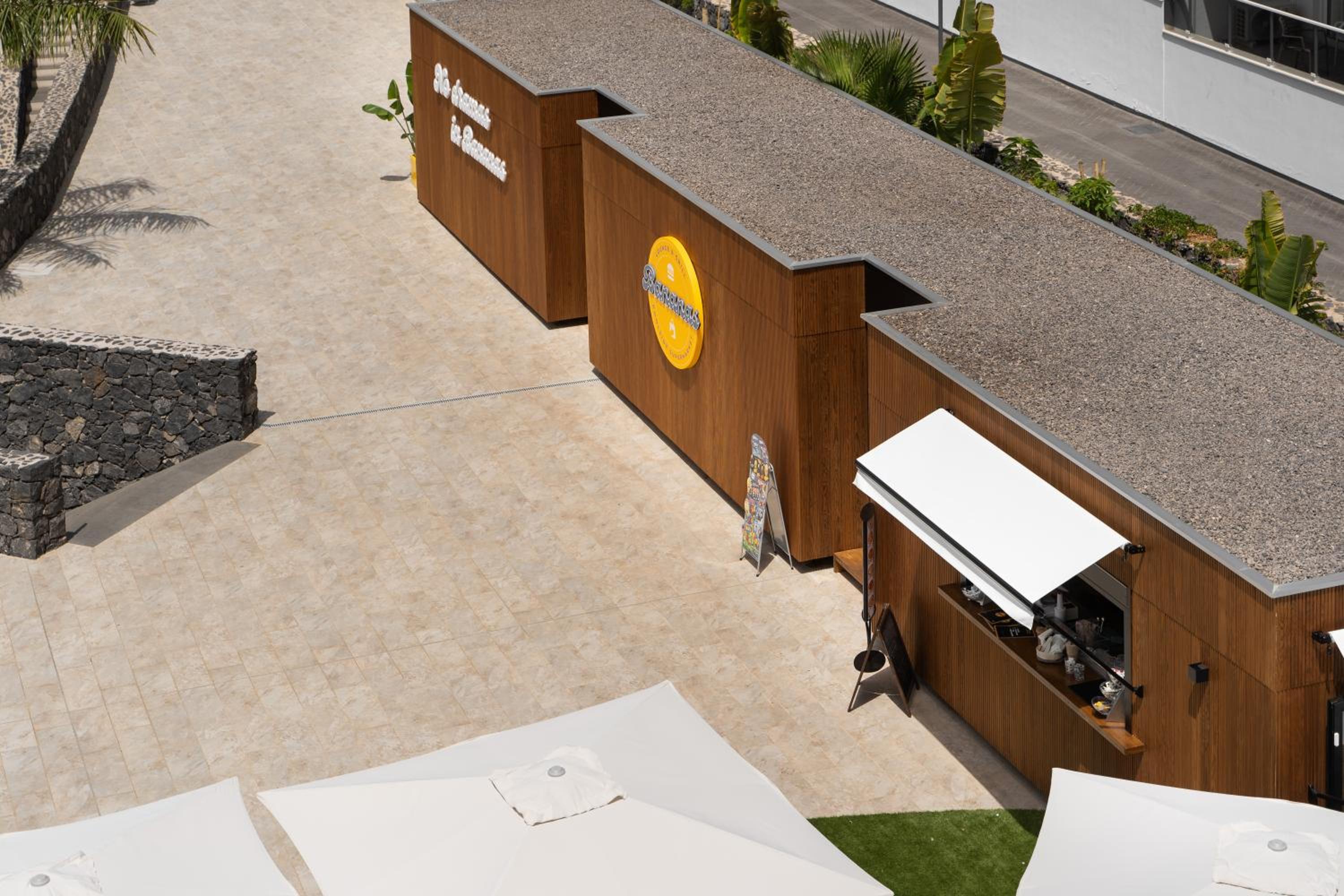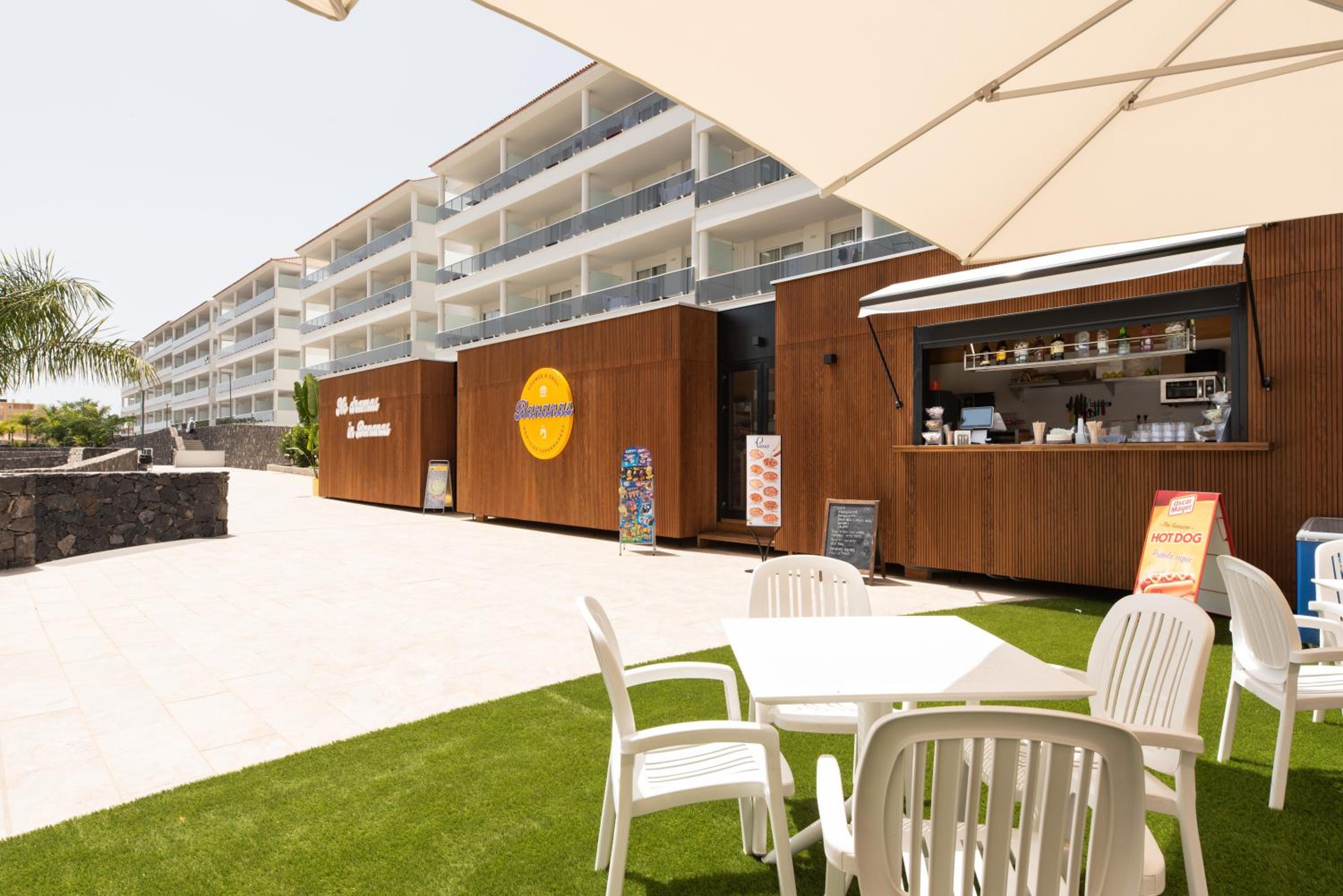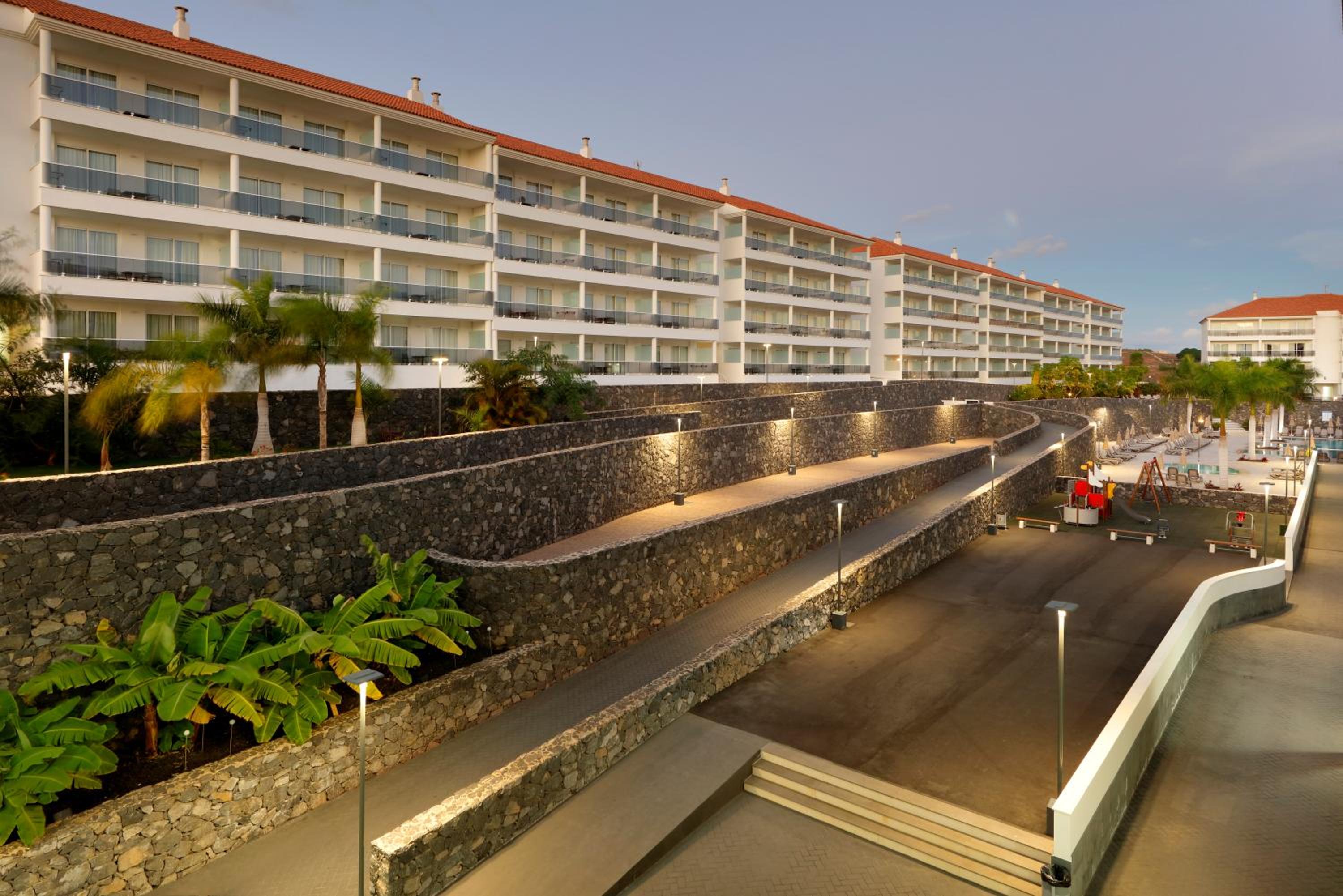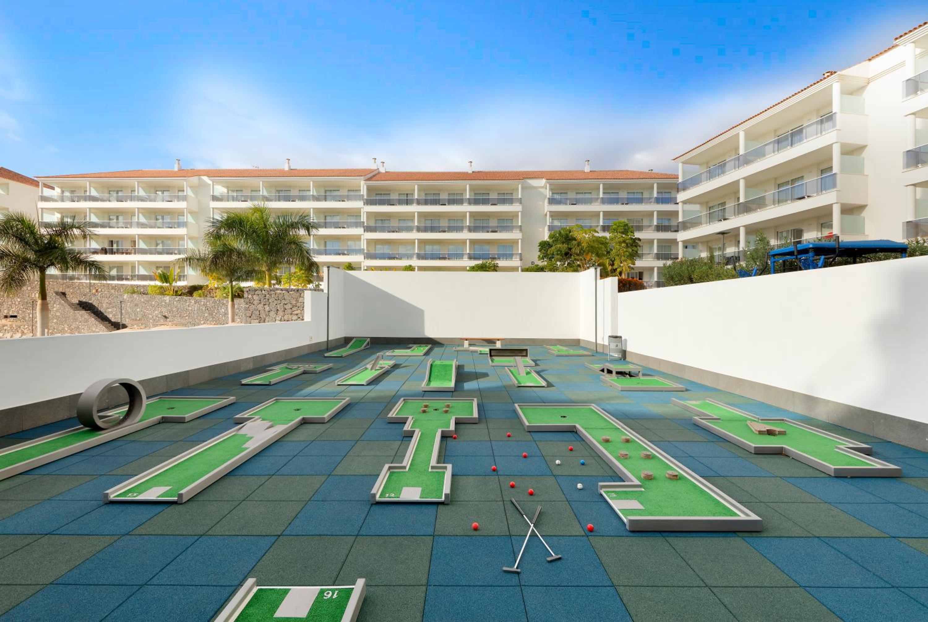 Die serpentinenartigen Zugänge zu den Apartments sind optisch nicht so schön und beschwerlich mit Gepäck. Eine Grünfläche im Hof mit Palmen und Garten würde sicherlich der Akustik gut tun. Wenn nachts im Hof gesprochen wird , ist es immens laut, bei offenem Fenster.