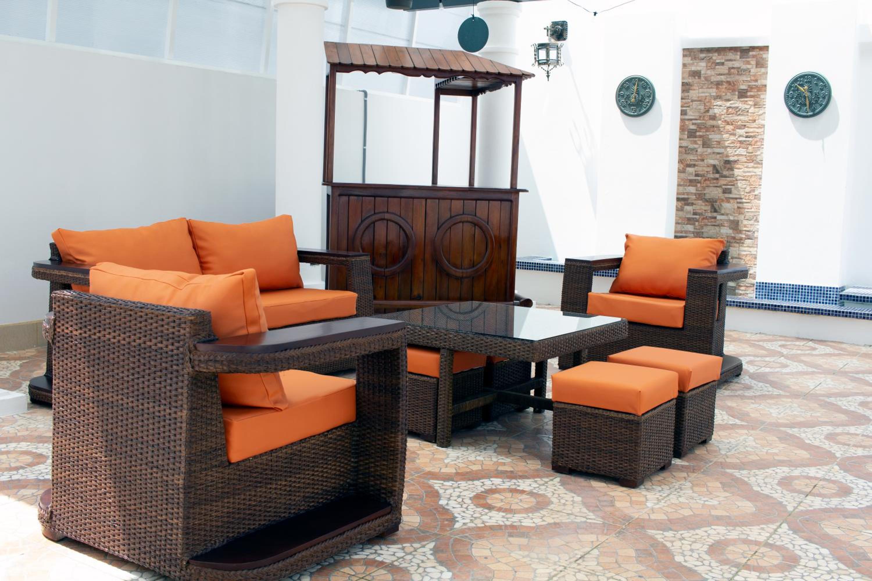 Unwind by the outdoor swimming pool or take a leisurely stroll in the garden and terrace area. Enjoy a refreshing drink at the bar or savor delectable international cuisine at the on-site restaurant.