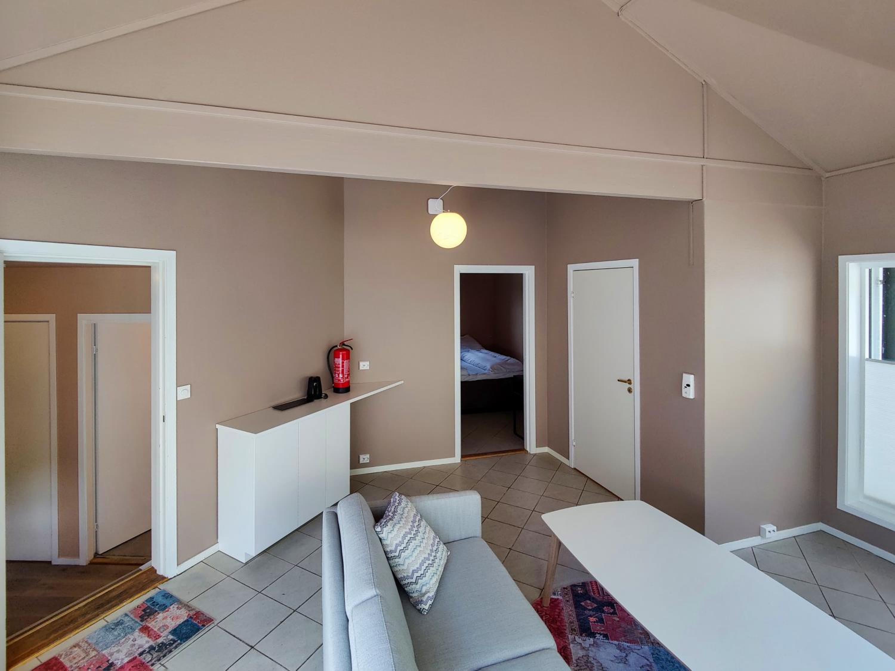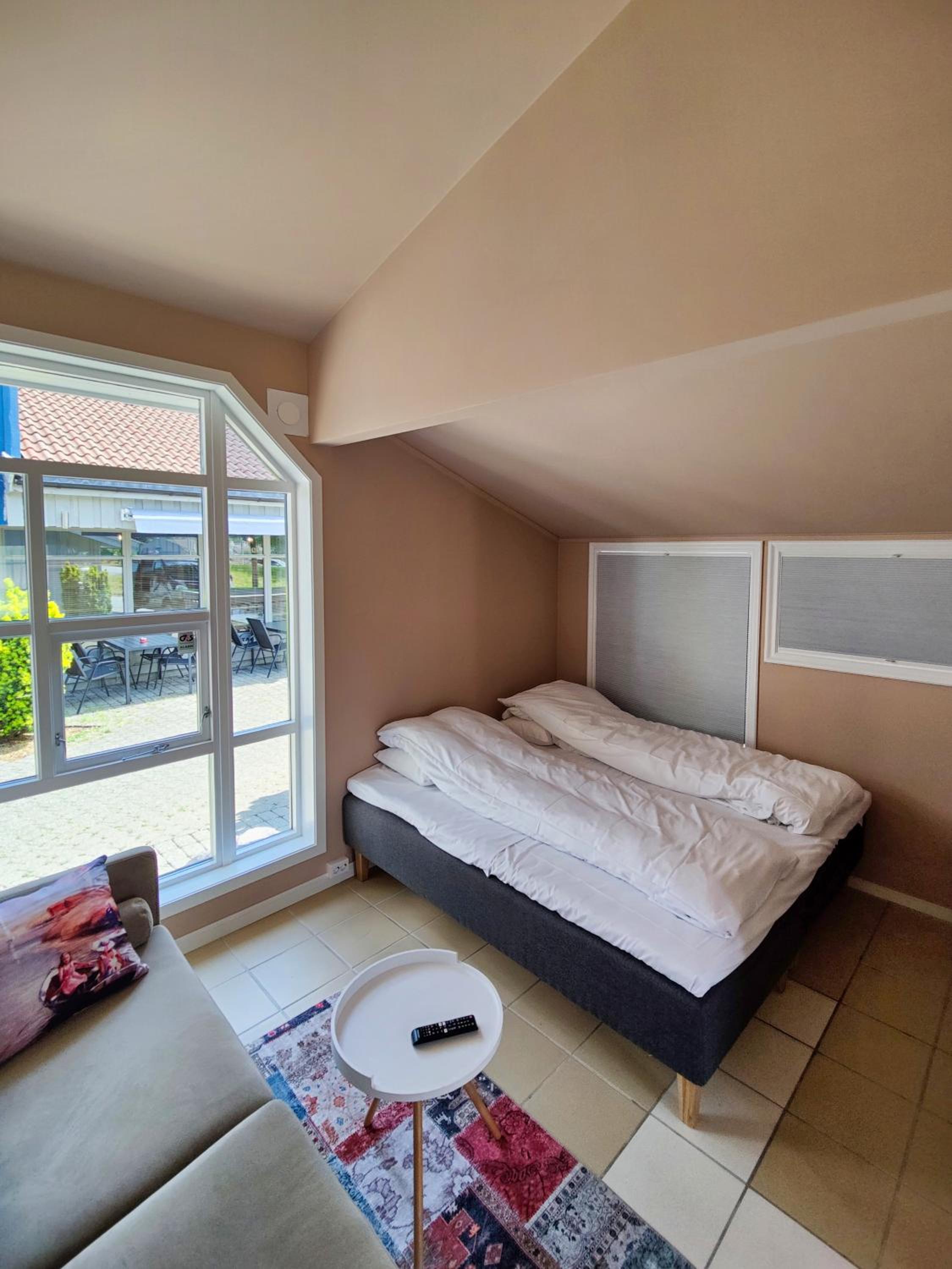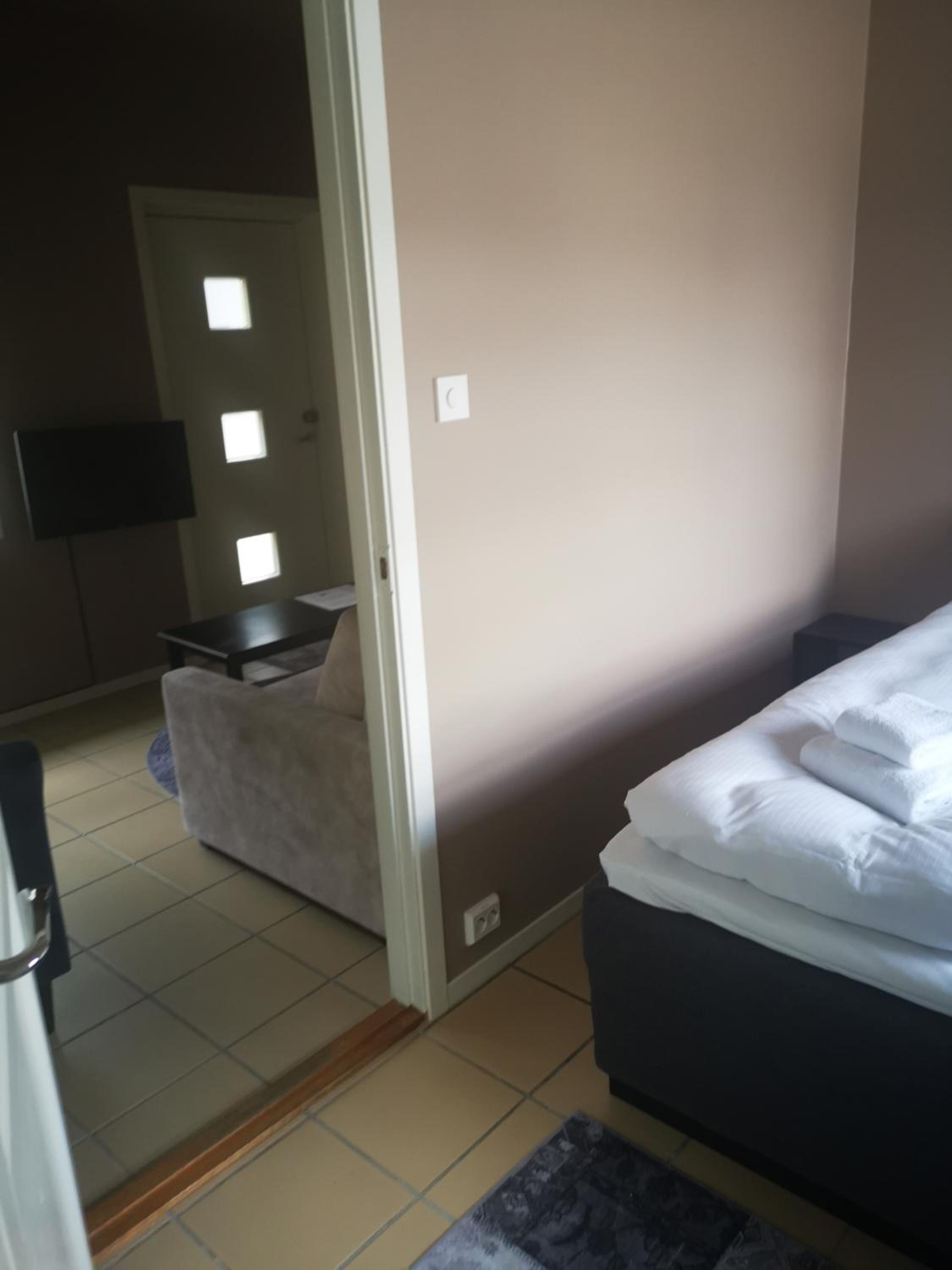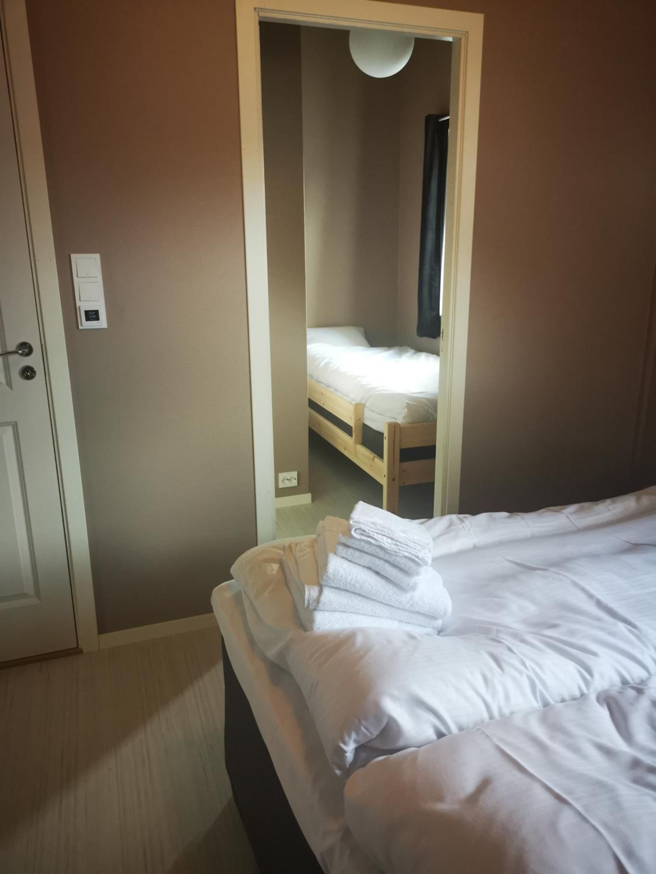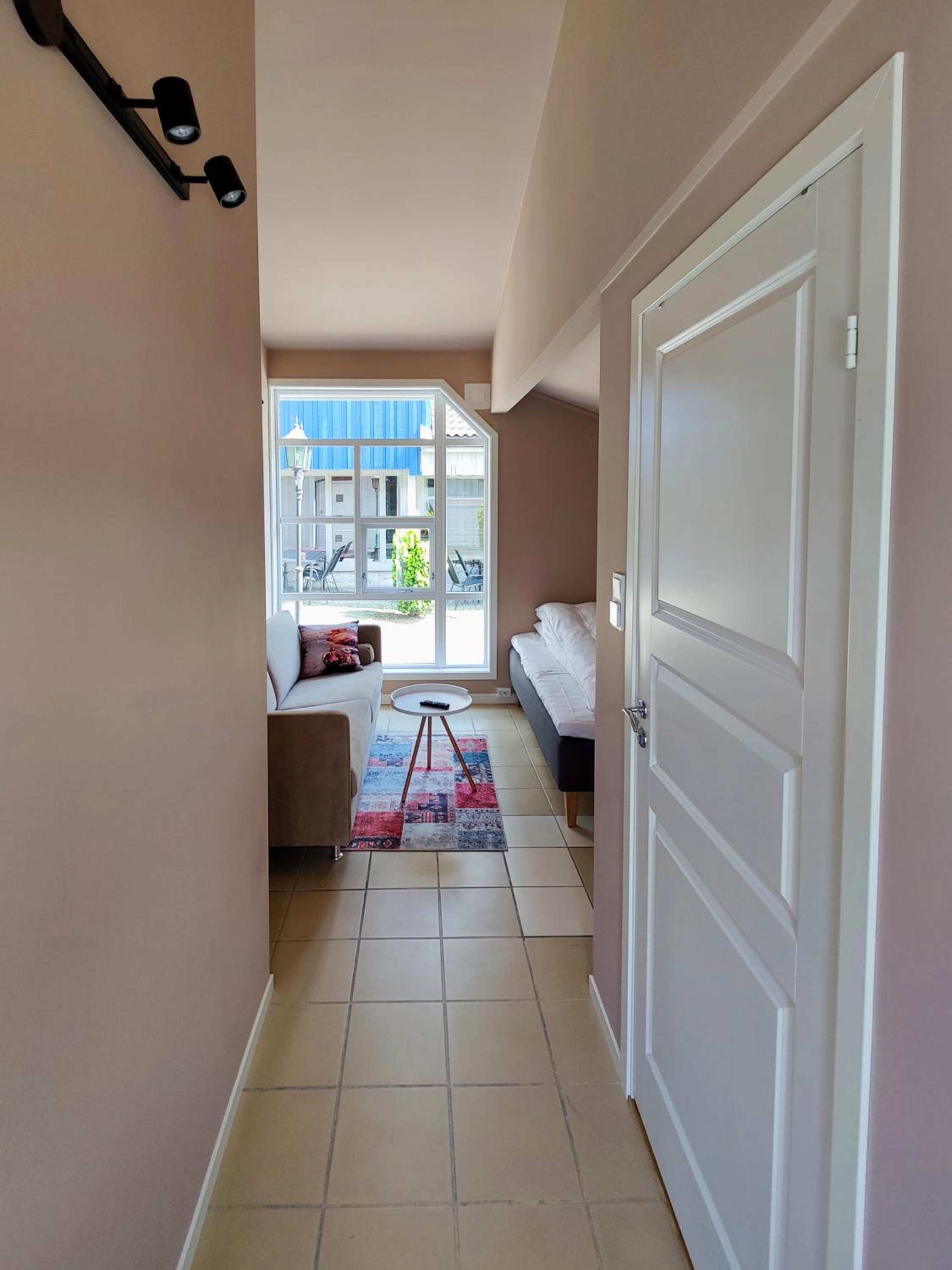 Veldig rent og pent. Vi hadde liten to-sengs leilighet. God standard, kvalitet og ivaretatt. Kjempebra ved besøk i Kongeparken. Ligger rett ved innkjørselen til parken, så veldig kort gangavstand dit. Ett par gode spisesteder rett utenfor døren. Rolig område uten støy. Godt og kaldt lite kjøleskap. TV, vannkoker. Stort og godt bad. Herlige senger. Håndklær og sengetøy inkludert. Kommer tilbake ved neste besøk til Kongeparken.