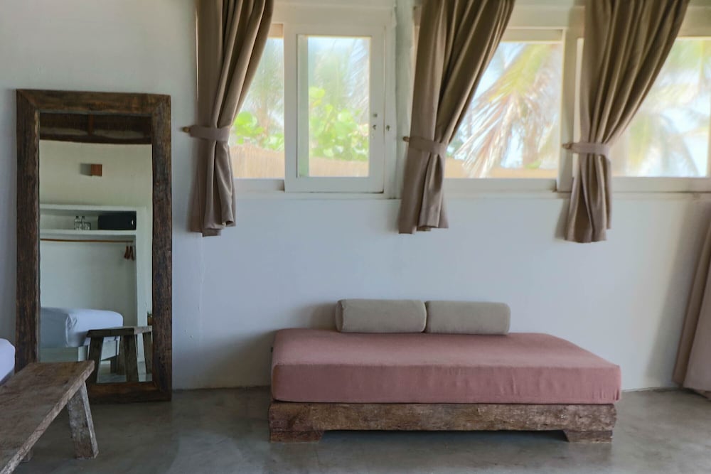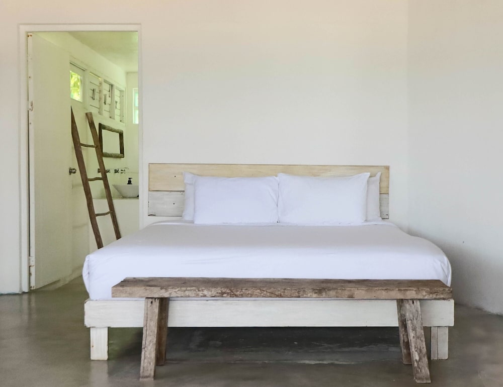We stayed here 5 days. Other members in our party had rooms for 4 nights and 2 nights as well. It is more rustic than neighboring properties other wedding guests stayed in but appropriately priced for that. Location right on the beach was wonderful. Air conditioning worked well and staff was there to greet us on arrival to check in. The front desk is otherwise unmanned but you can go to a neighboring property for assistance and will also need to go there to check out. They were helpful in setting up airport transportation. Their transportation was not the cheapest option in the area but if you don't want the hassle of finding something yourself it is worth the convenience. They use WhatsApp for communication because text, calls and other messages are slow. They were consistent in responding to any inquiries. The plumbing was not terrific and we had a clog while we were there. Apparently we were not supposed to dispose of toilet paper in the toilet. We, nor other members of our party renting rooms, were not told that. The other water issue we had was when it rained, water come in the room under the door getting our things wet on two different occasions. They did clean it up but it was a bit of a hassle. It you know it is going to rain at night, put a towel down in front of your door or you may step into a puddle on your way to the bathroom in the morning. The linens and bedding were clean and daily room service was provided.