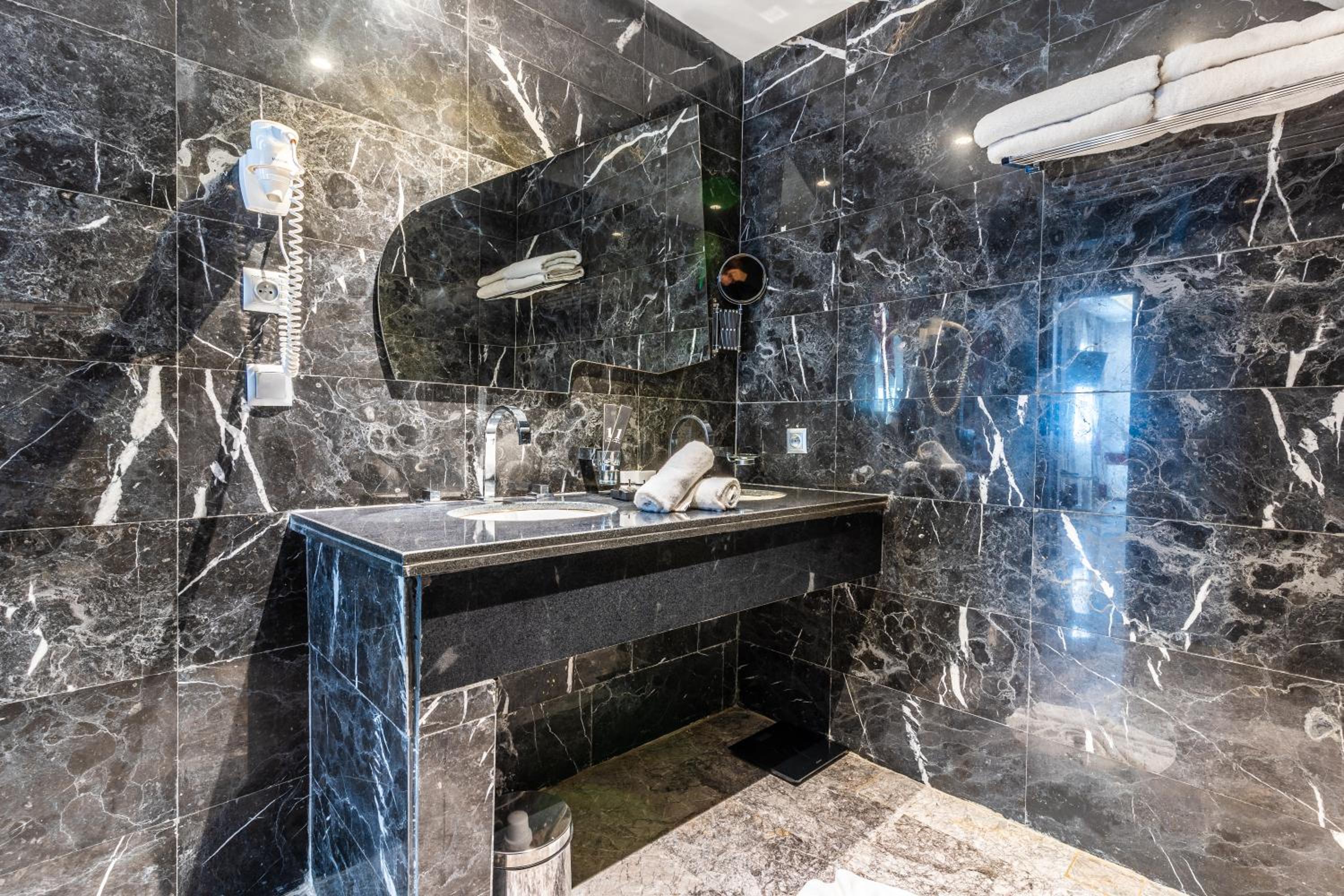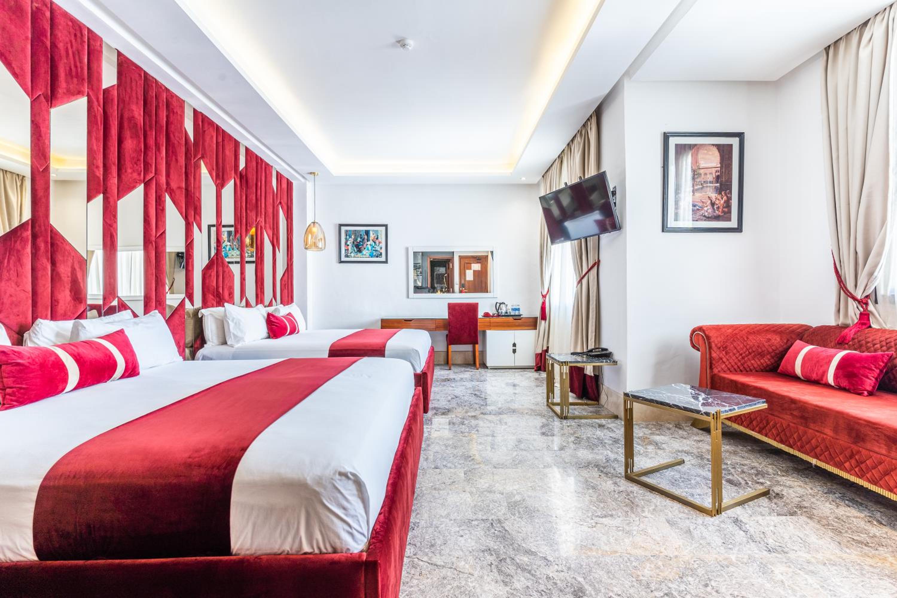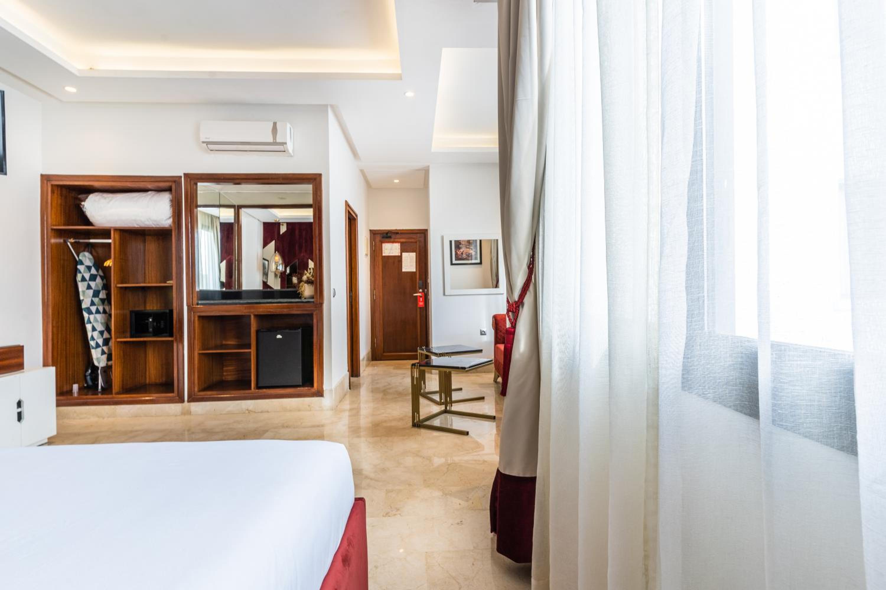 One Hotel Casablanca offers 5-star air-conditioned rooms with modern amenities like a coffee machine, flat-screen TV, and private bathrooms, ensuring a comfortable stay for guests.