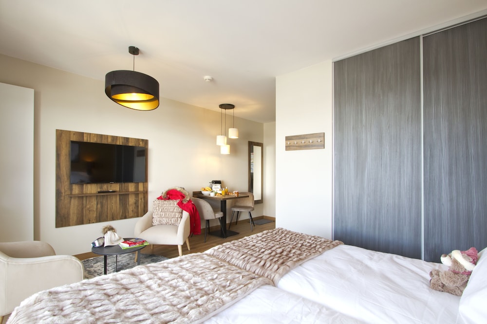 ottimo appartamento, a pochi metri dalle piste e dal centro del paese, ristrutturato da poco. Buono il servizio piscina e spa, a cui ci è stato dato accesso anche nel pomeriggio dopo aver lasciato la stanza. Non abbiamo provato la colazione ma forse prezzo troppo alto per quello che offre dopo aver visto il bancone
