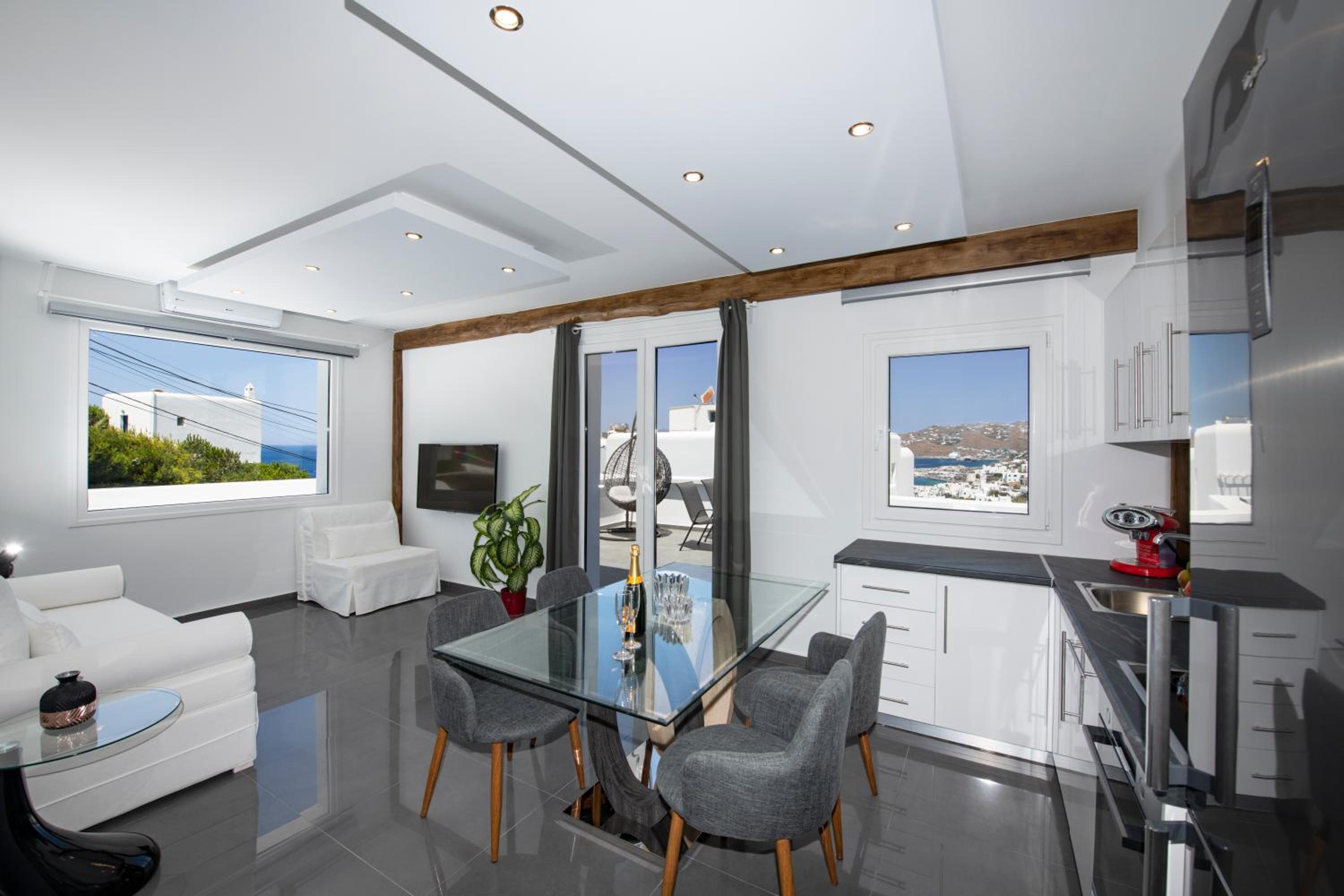 Idéalement situé a 10 minutes a pied du centre de Mykonos et 5 minutes en voiture de l'aéroport.