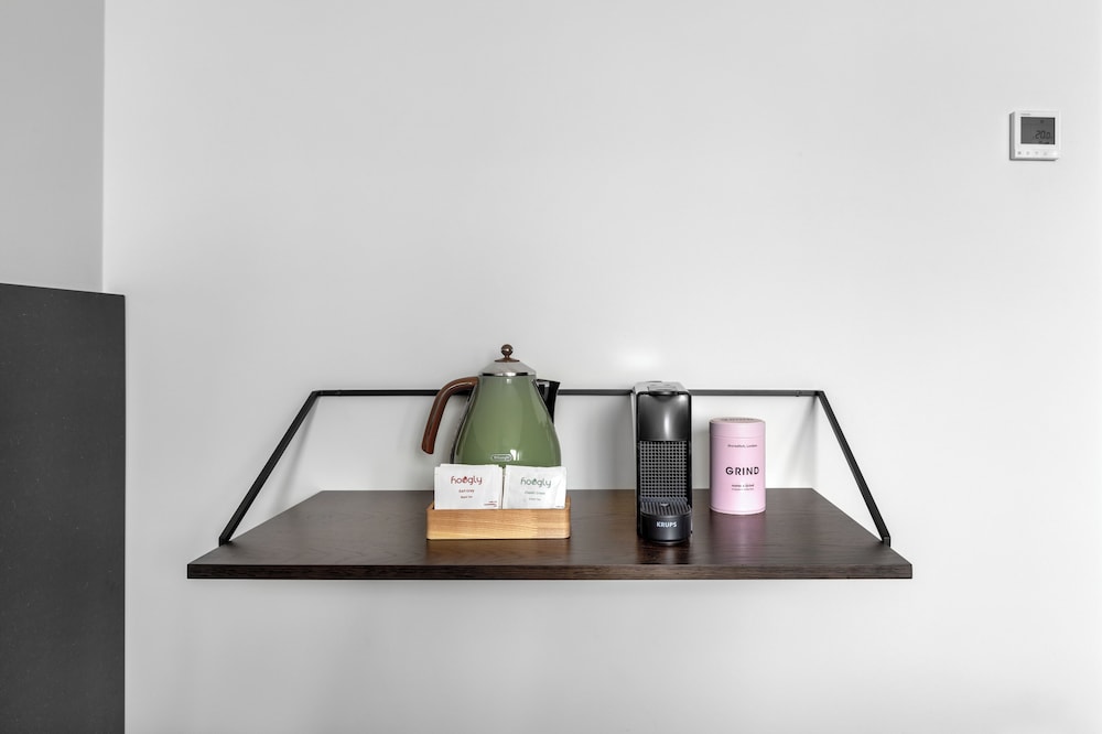 Es gibt ein Wasserkocher mit Tee 🍵 und eine Nespresso Maschine mit Kapseln.