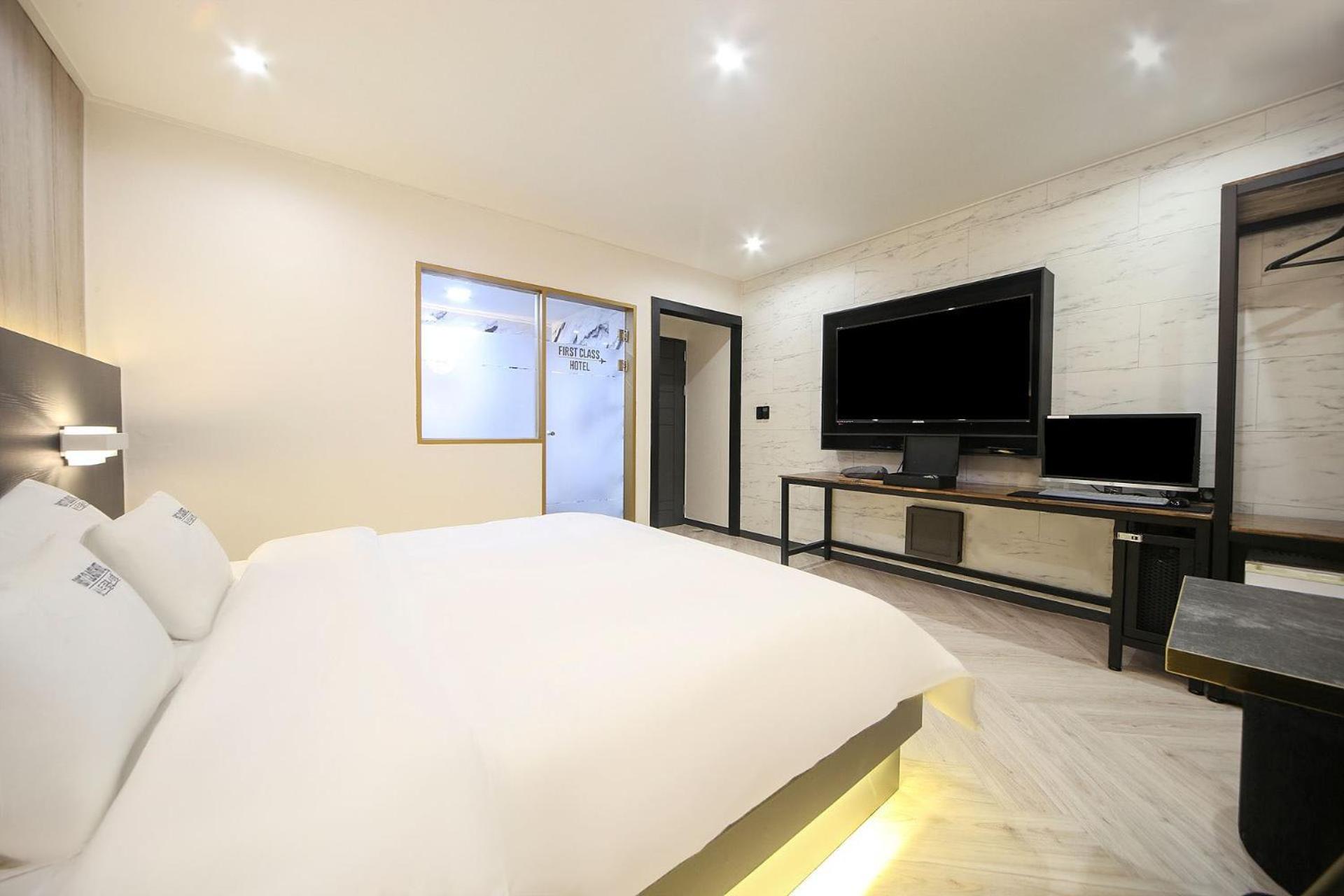 Masan First Class Hotel in Changwon offers air-conditioned rooms with elegant interiors and modern amenities. Each room is equipped with a desk, a flat-screen TV, a private bathroom, and comfortable bed linens and towels. Guests can also enjoy the convenience of a fridge in their room for added comfort.