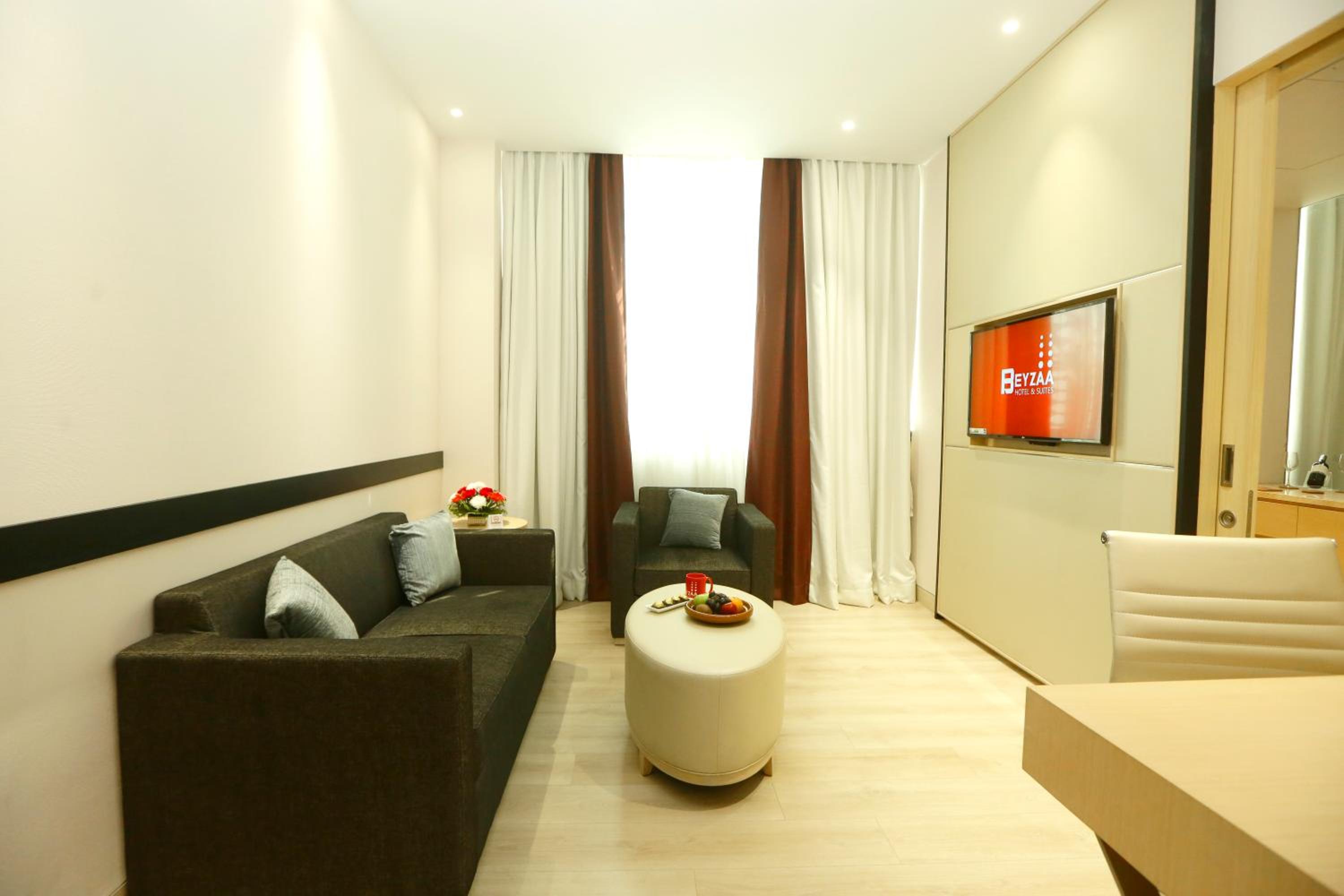 BEYZAA HOTEL AND SUITES in Kolkata offers a lavish stay with modern amenities. Each room features air conditioning, a safety deposit box, and a flat-screen TV. Some units even boast a charming terrace for guests to unwind.