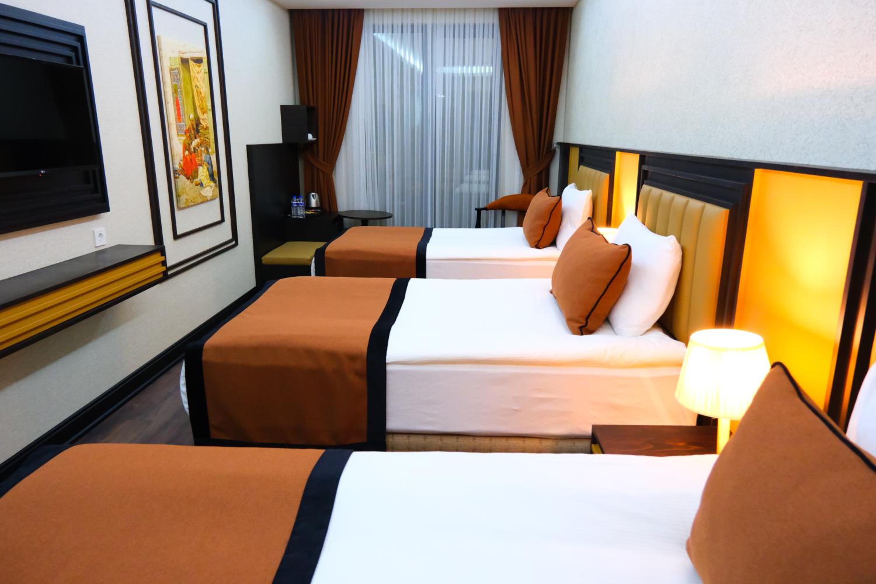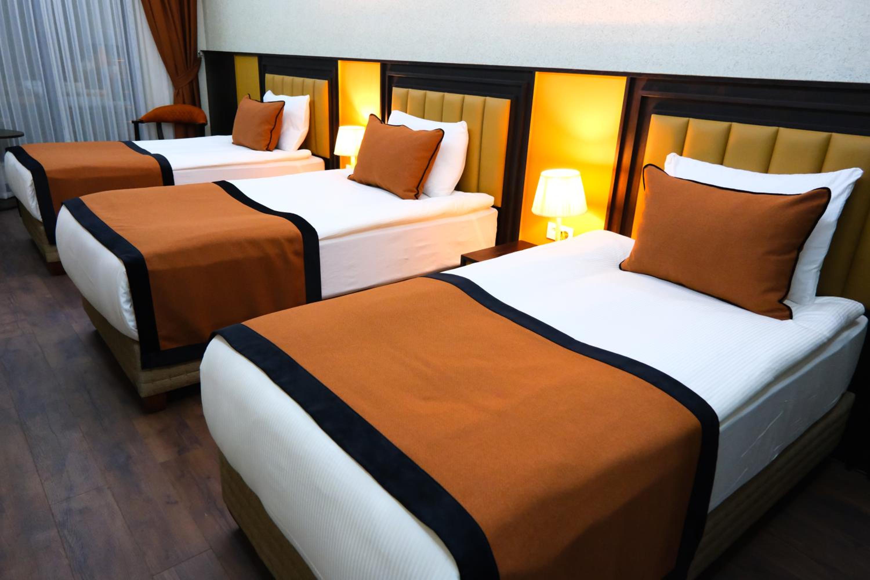 Yataklar çok rahattı. Kahvaltı harika, otoparkı var, şehir merkezinde. Çok memnun kaldık.