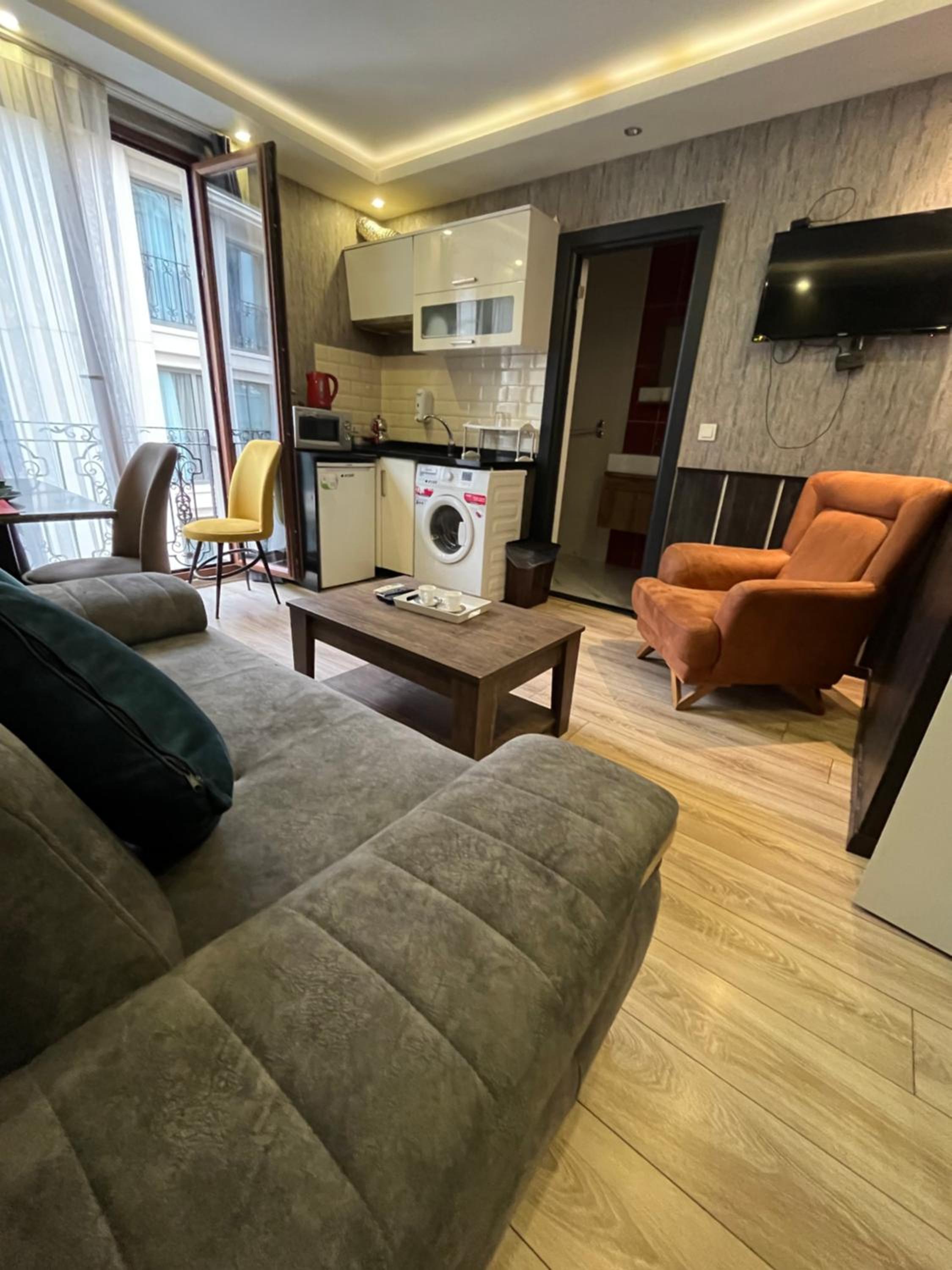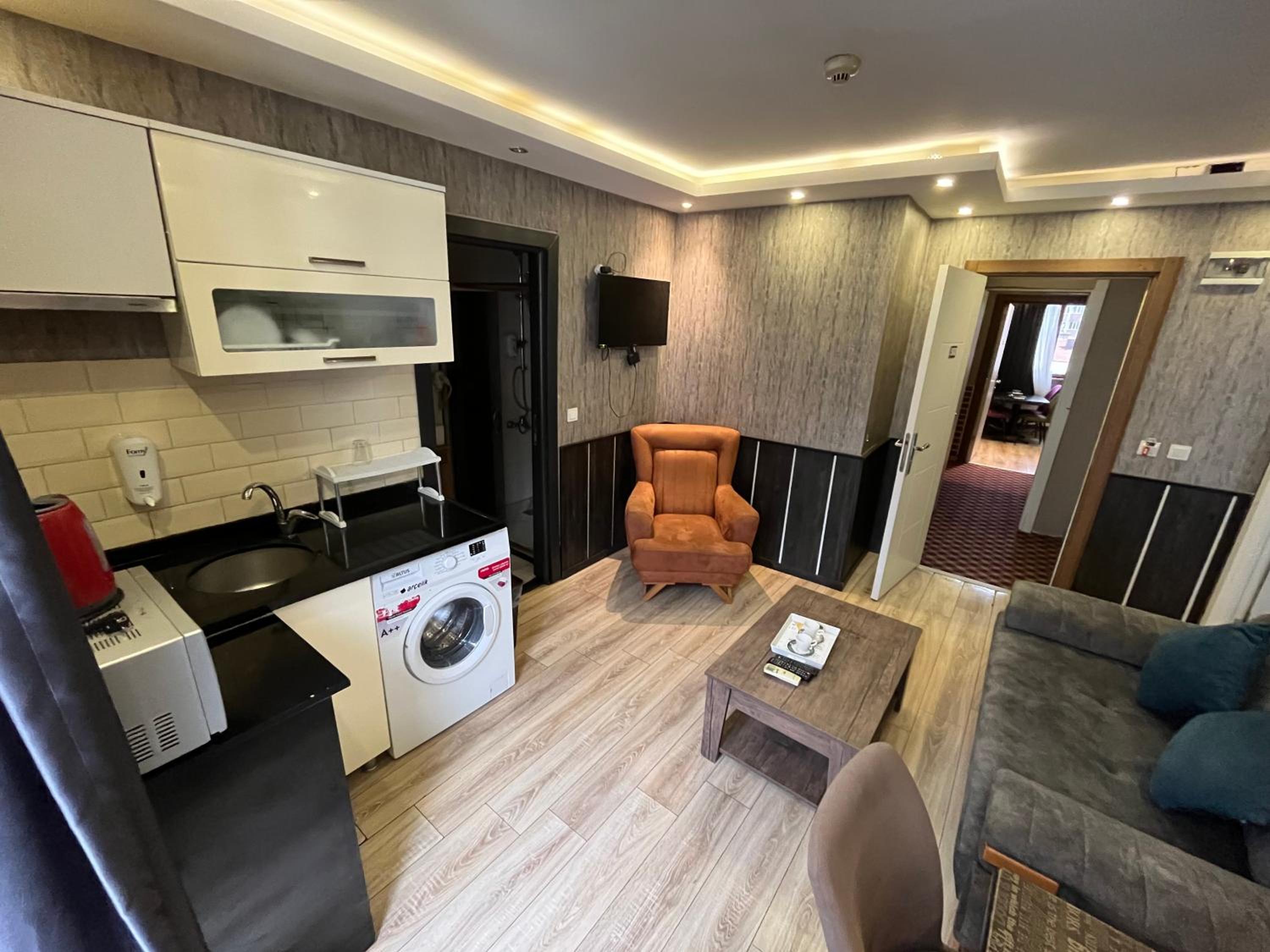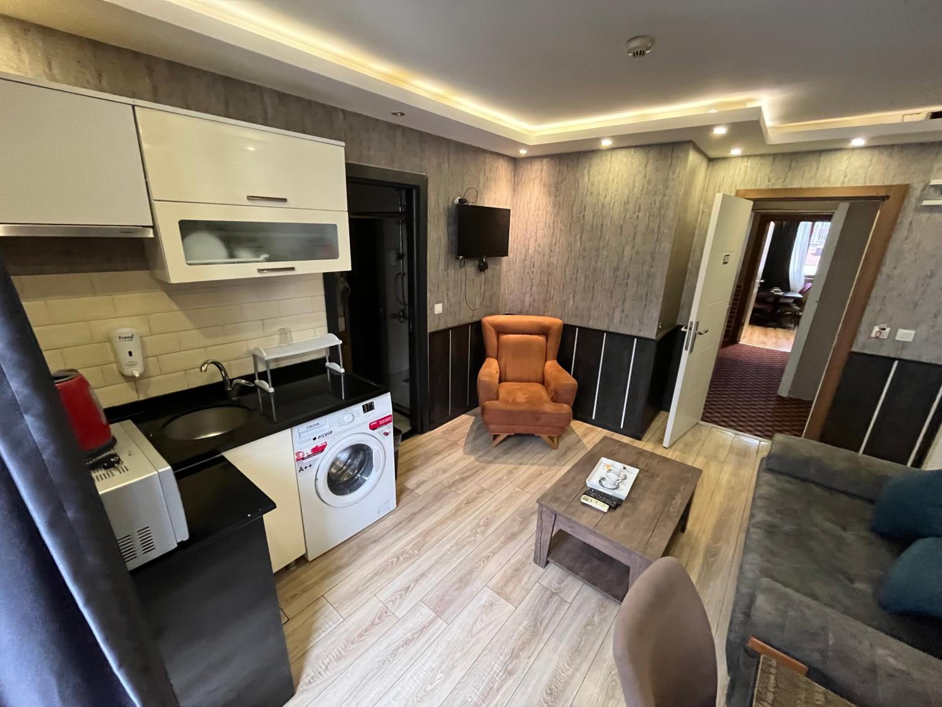 Modern Amenities: Enjoy a comfortable stay with air conditioning, flat-screen TV, and free WiFi. Some rooms even feature a fully equipped kitchen for added convenience.