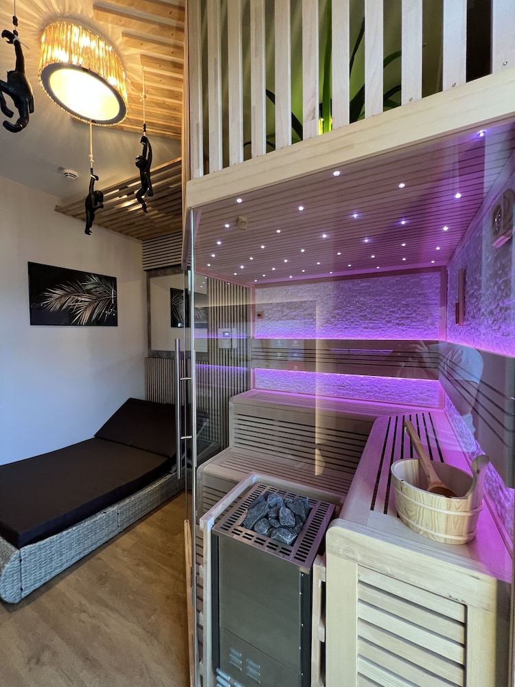 Dusch Verglasung ungünstig, Sauna auf Bestellung 2 Std. 85;-€, Restaurant so la la.