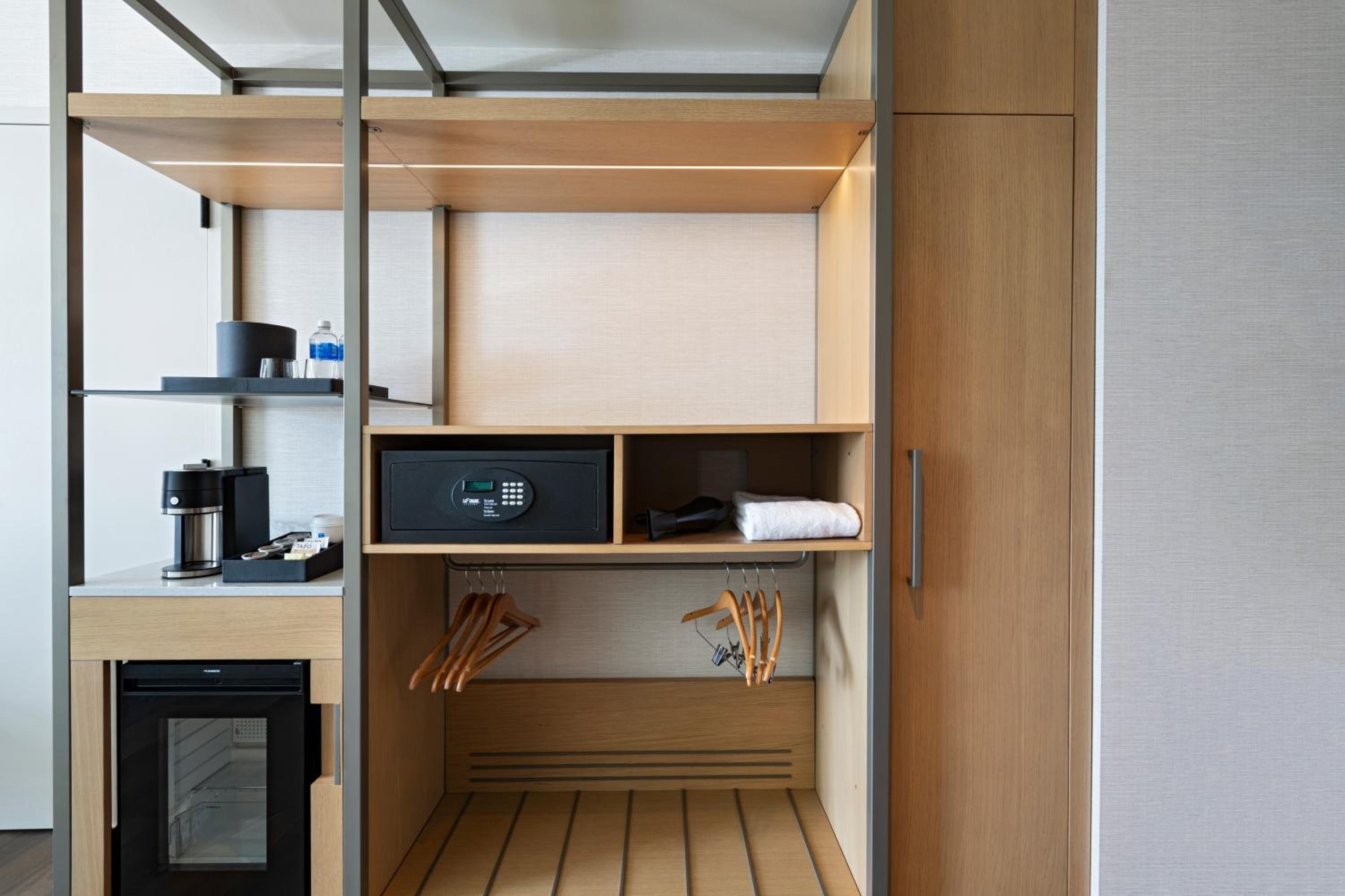 Experience comfort in the well-appointed guest rooms featuring modern amenities such as a flat-screen TV, safety deposit box, and private bathroom. Enjoy the convenience of room service and a 24-hour front desk.