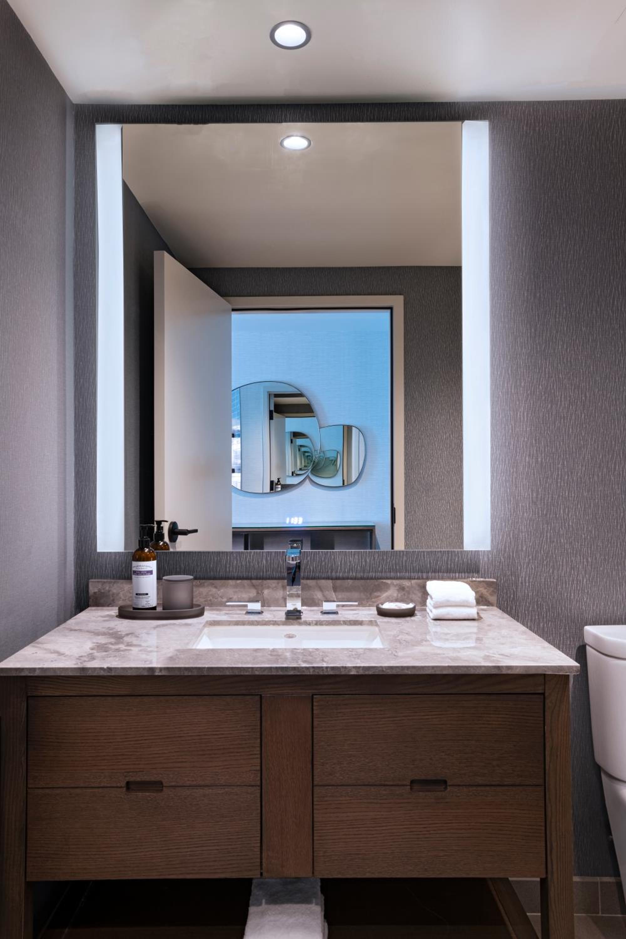 Staying with my toddler and baby was an actual nightmare because of the stupid motion sensor lights under the bed. We could not get a light in the bathroom to stay on as a nightlight for our toddler but oh well. But what was just ridiculous and frankly unacceptable were the lights that turned on under the bed every time anyone shifted enough or god forbid got up. The lights woke the baby up ALL NIGHT and I had to take him out of his cot to not get lights blasted in his face. The desk staff said there was a way to turn them off at checkout but we sure couldn't find it in the middle of the night or knew we needed to before bed. The over engineering just sucked.