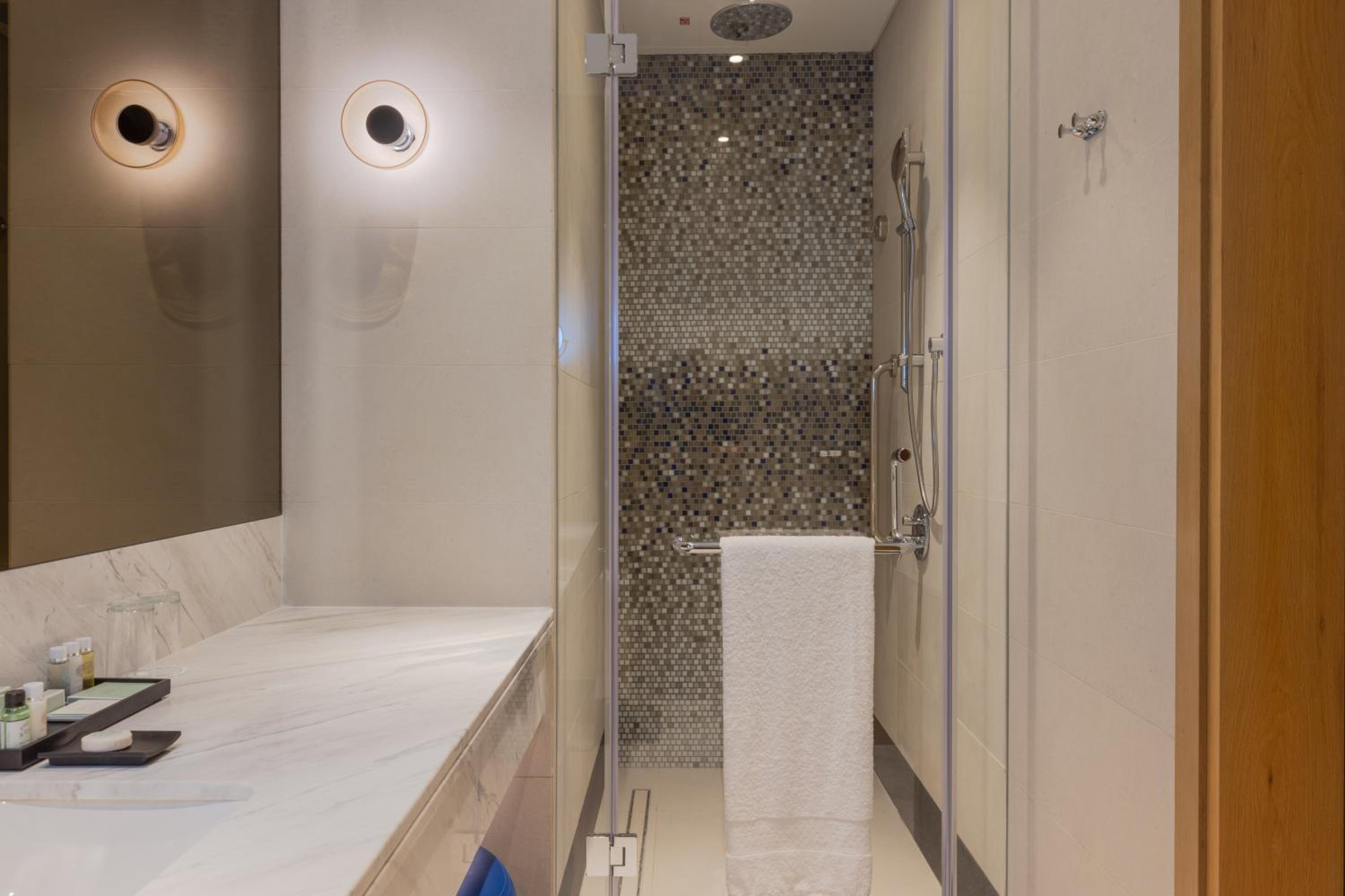 Embassy Suites By Hilton Doha Old Town offers elegant 4-star rooms with air conditioning and private bathrooms. Some rooms even boast stunning sea views, ensuring a comfortable and scenic stay for guests.