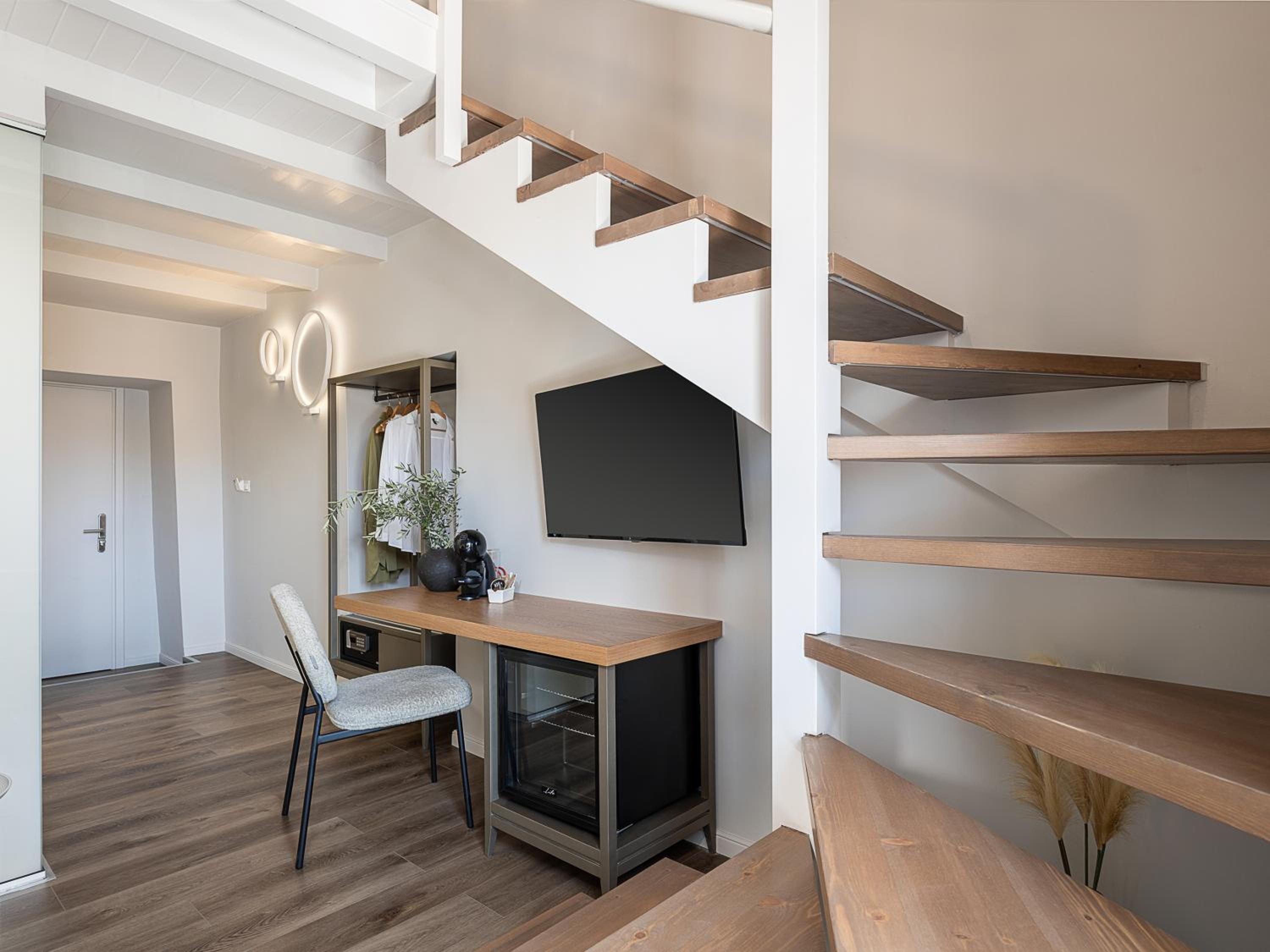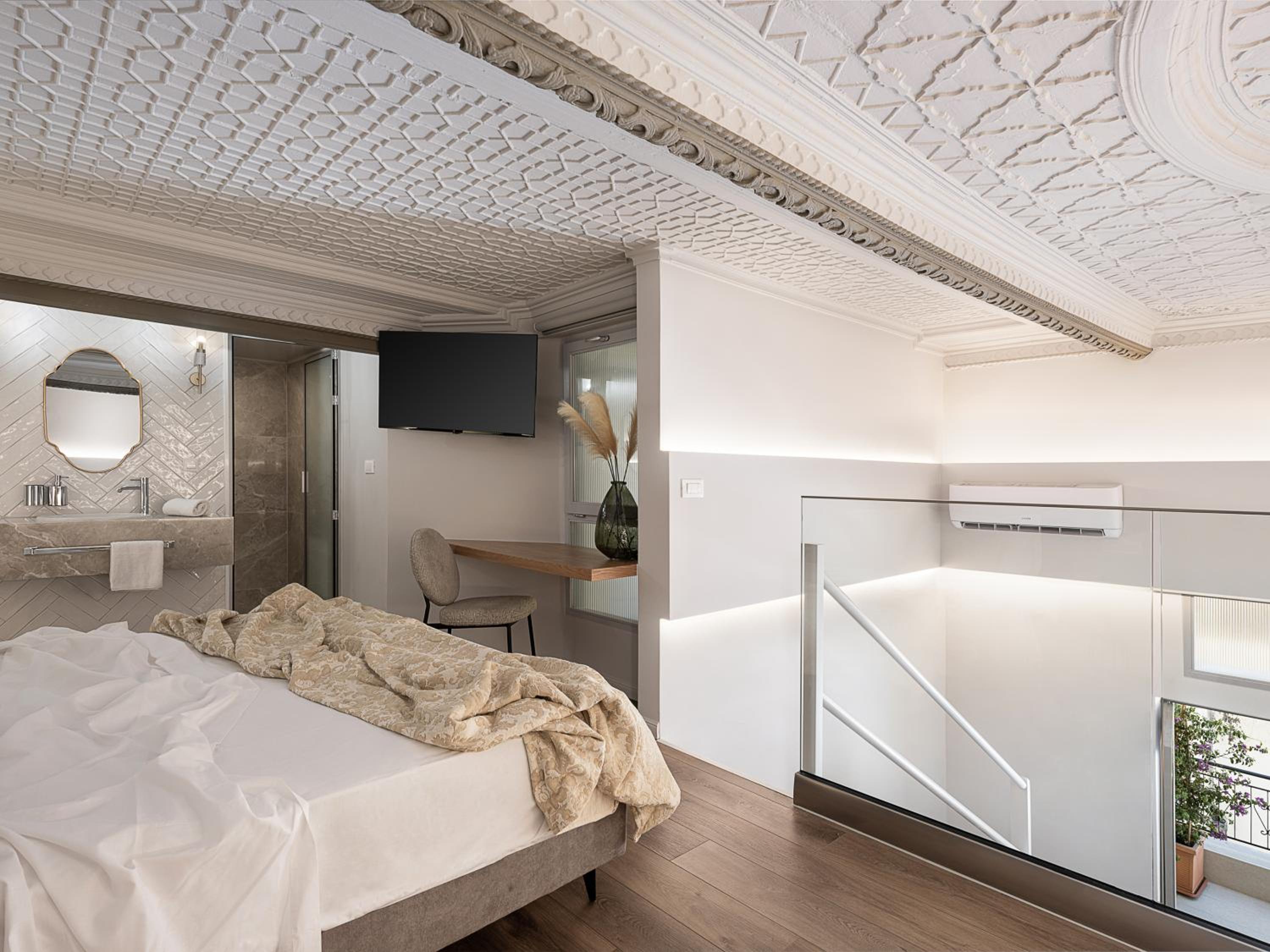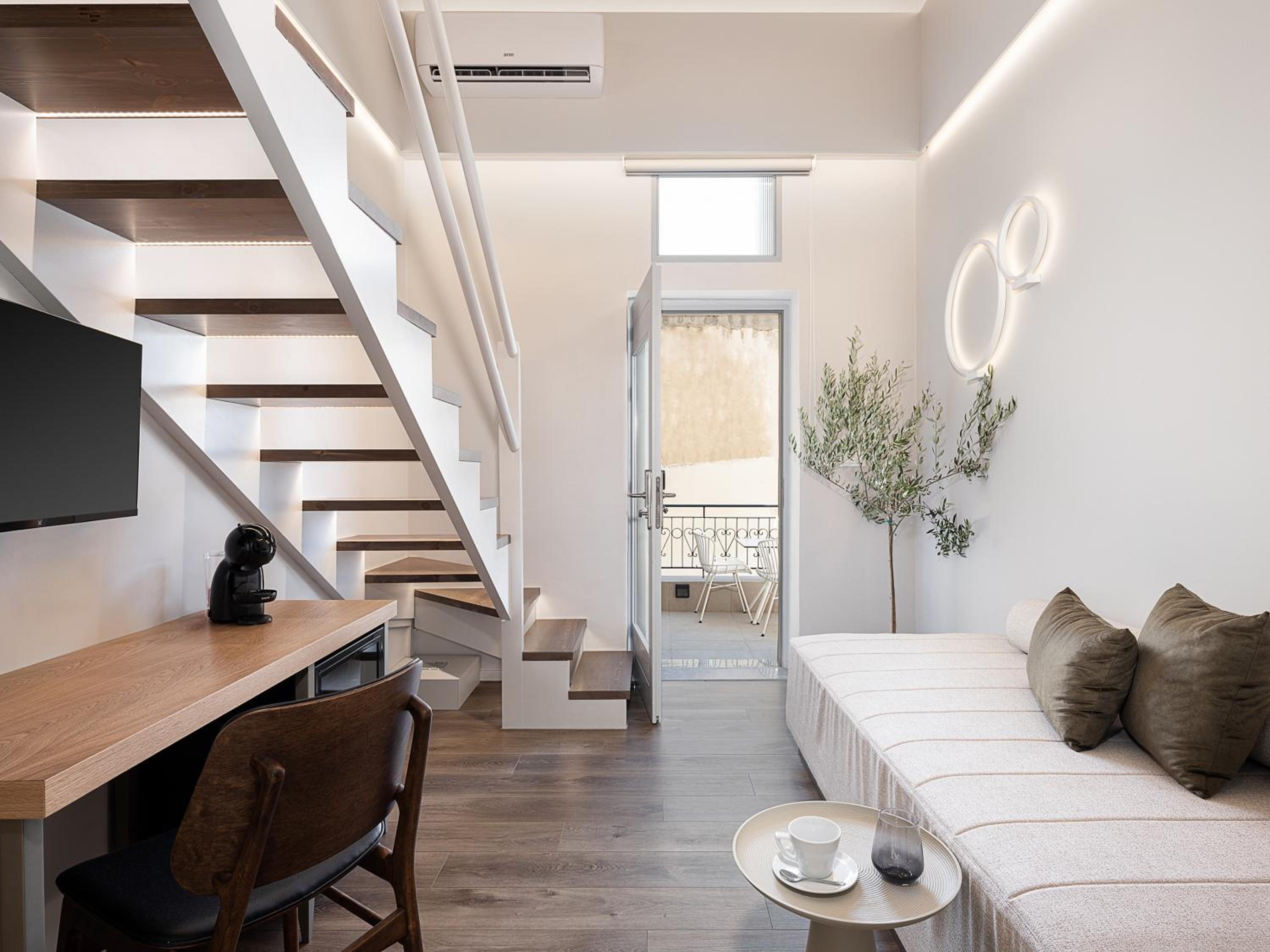 Went with my husband and two adult children… the duplex room 8 was amazing!!! Overlooked the old town with a view of the harbour! Great seating outside the room in the balcony to take in all the huddle and bussel below. The suite offered a bedroom downstairs with two beds a bassin , washroom and shower all separate so ur able to brush your teeth or blow dry your hair if someone is in the shower or using toilet also sitting area and a vanity in bedroom same as upstairs with a sitting area also upstairs …lighting was great overall the feel of the room was spacious and modern!! The breakfast was also very good! I would definitely stay here again!