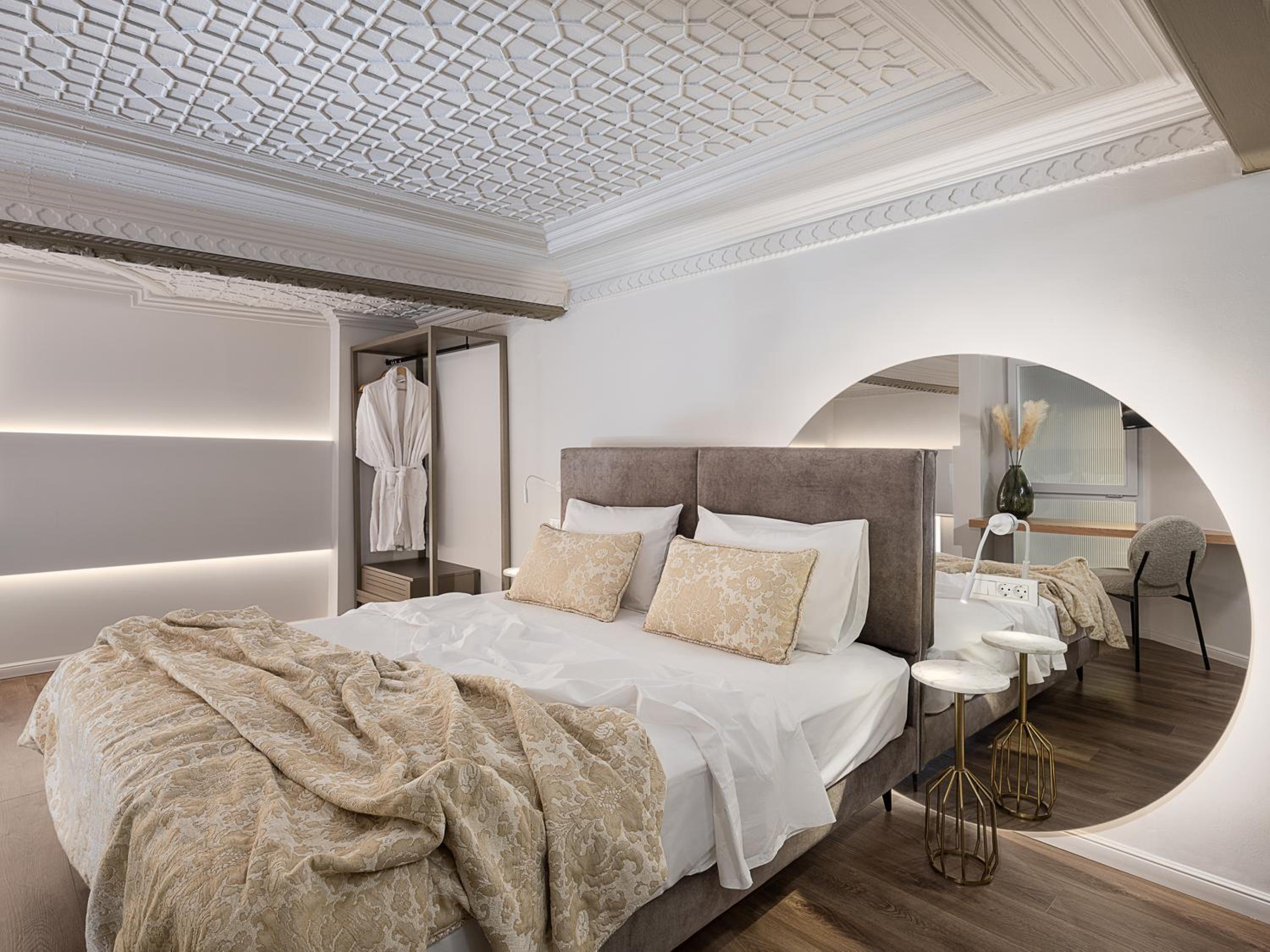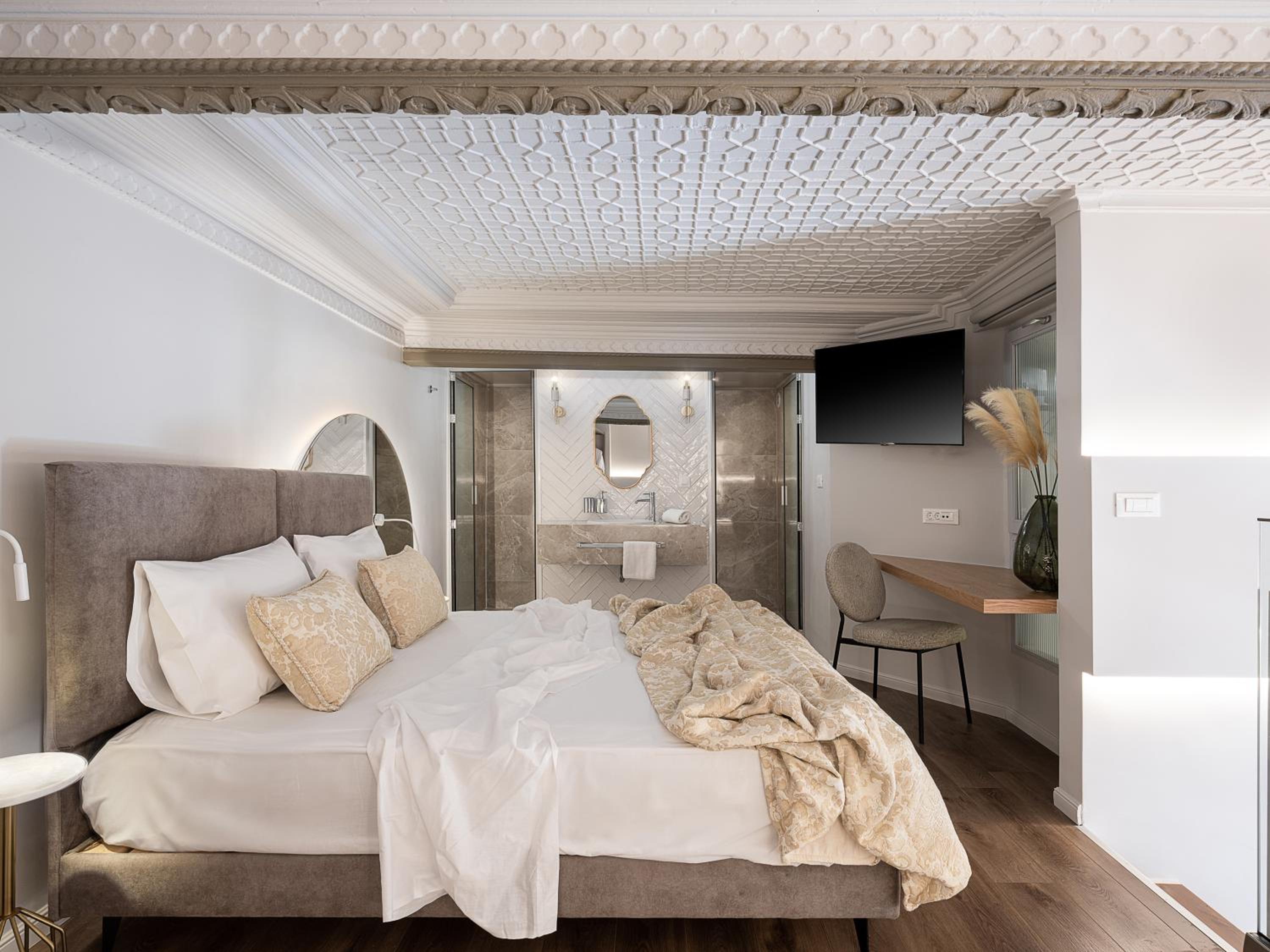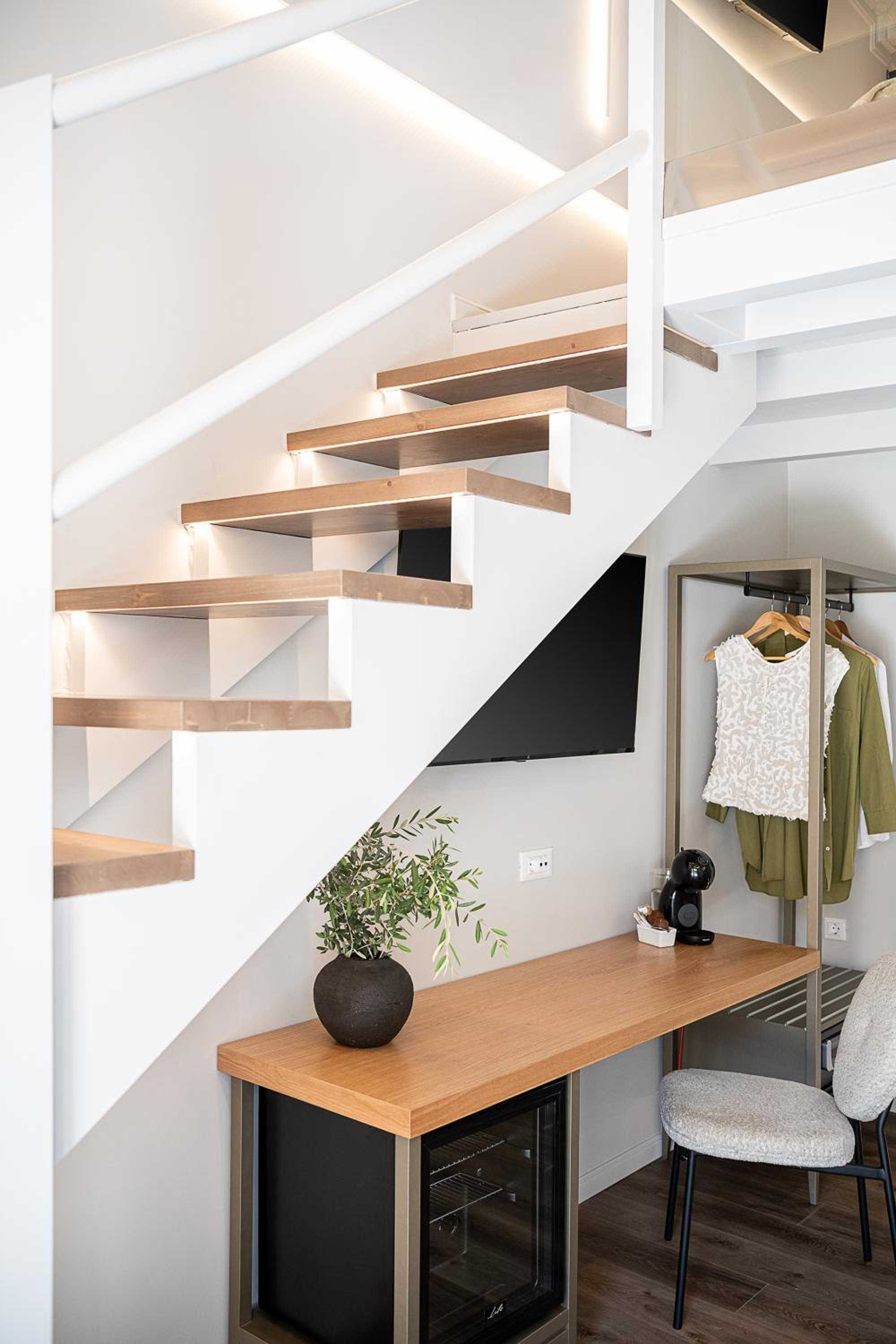 Went with my husband and two adult children… the duplex room 8 was amazing!!! Overlooked the old town with a view of the harbour! Great seating outside the room in the balcony to take in all the huddle and bussel below. The suite offered a bedroom downstairs with two beds a bassin , washroom and shower all separate so ur able to brush your teeth or blow dry your hair if someone is in the shower or using toilet also sitting area and a vanity in bedroom same as upstairs with a sitting area also upstairs …lighting was great overall the feel of the room was spacious and modern!! The breakfast was also very good! I would definitely stay here again!