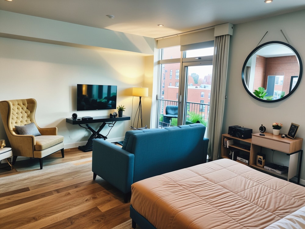 Relax in one of the 12 stylish guestrooms, each uniquely decorated and equipped with modern comforts like full kitchens and Smart TVs for your entertainment.