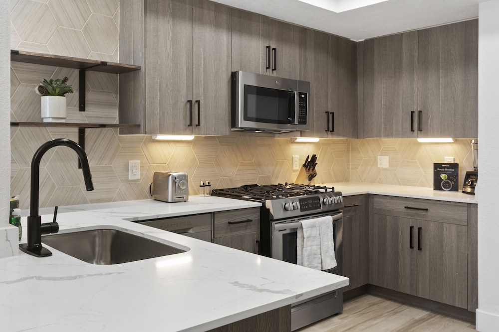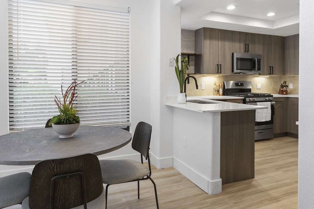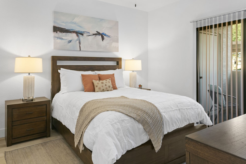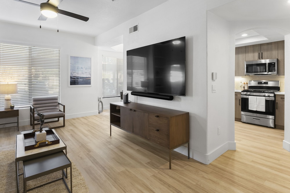 I would definitely choose this property again. Clean, modern furnishings, nicely decorated and ease of the entire transaction. Great location across from outdoor shopping and dining