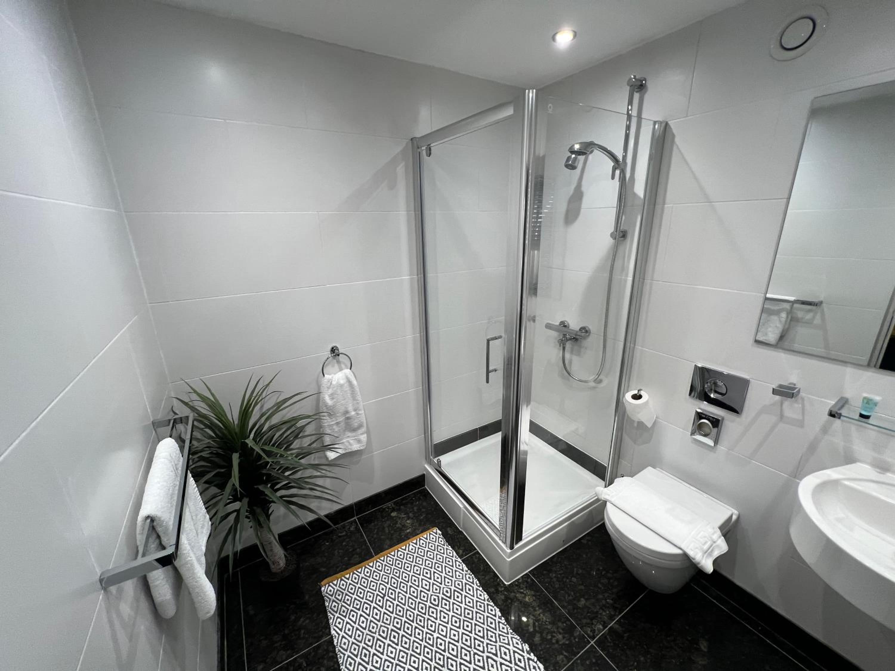 Shower over the bath was poor and difficult to use. Living space was really small. One small towel per person was not sufficient. Car park was expensive.