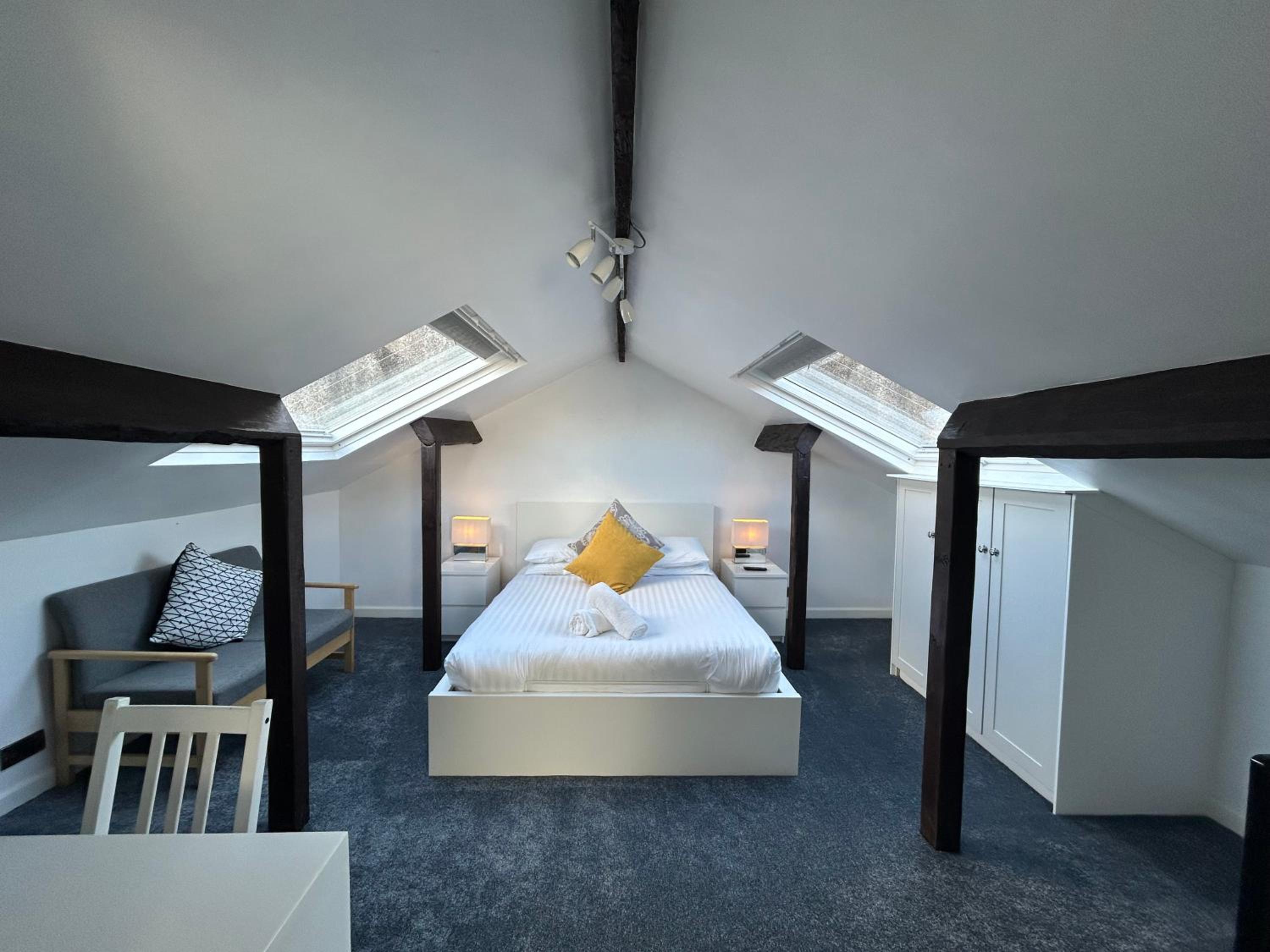 Location perfect. Communications brilliant, parking option excellent. Facilities in kitchen way better than expected. Views fab from loft room.