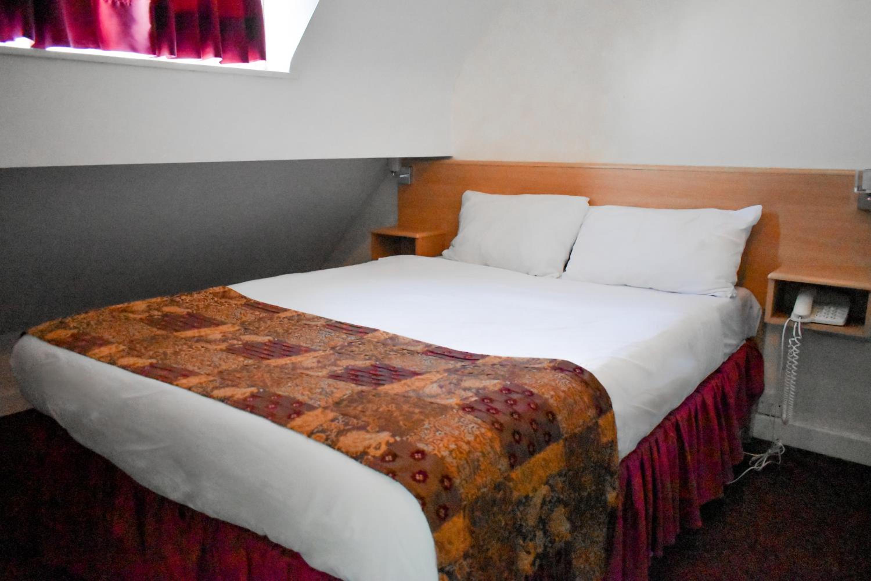 Upon booking, told we couldn't book parking at hotel just first come first served for spaces. Then a few hours before we arrived received an email to say all spaces had been booked? Thankfully there was a spot when we arrived but a bit confusing. The room was clean but very small. We booked a double but it was on the top floor with a slanted ceiling and so one person couldn't sit up in bed. It was really better suited for a single room. Also, unfortunately we were woken in the middle of the night by other guests running around knocking on doors and shouting in the corridors. Opted for the continental breakfast in the morning which was ok but quite basic.