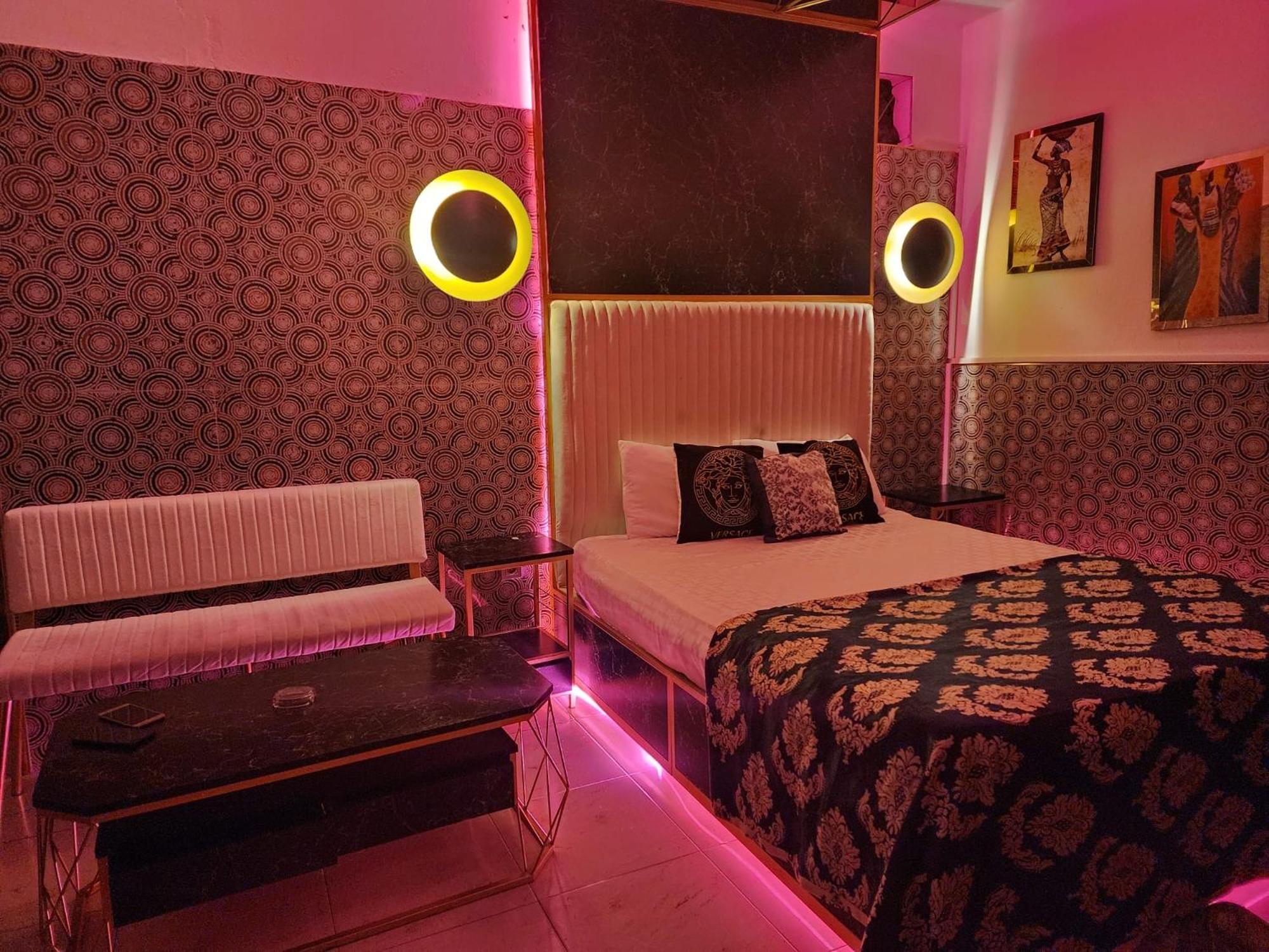 The picture was very deceiving. The room we ordered was not available so for 1 night we had to stay in a different room (Without the Jacuzzy that we bwanted) because a woman had missed her flight and kept our room,with a water leak in the bathroom. Then as we tried to close the curtain, it fell on us. Then we were given our room (the one in the picture). The Jaccuzi was patched up and came with no hot water. Barely warm. The room was dirty, the bed very uncomfortable. The staff was nice but the facilities were disgusting.